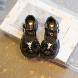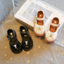 2022秋季新款女童卡通小熊软底单鞋韩版蝴蝶结女孩公主皮鞋现货