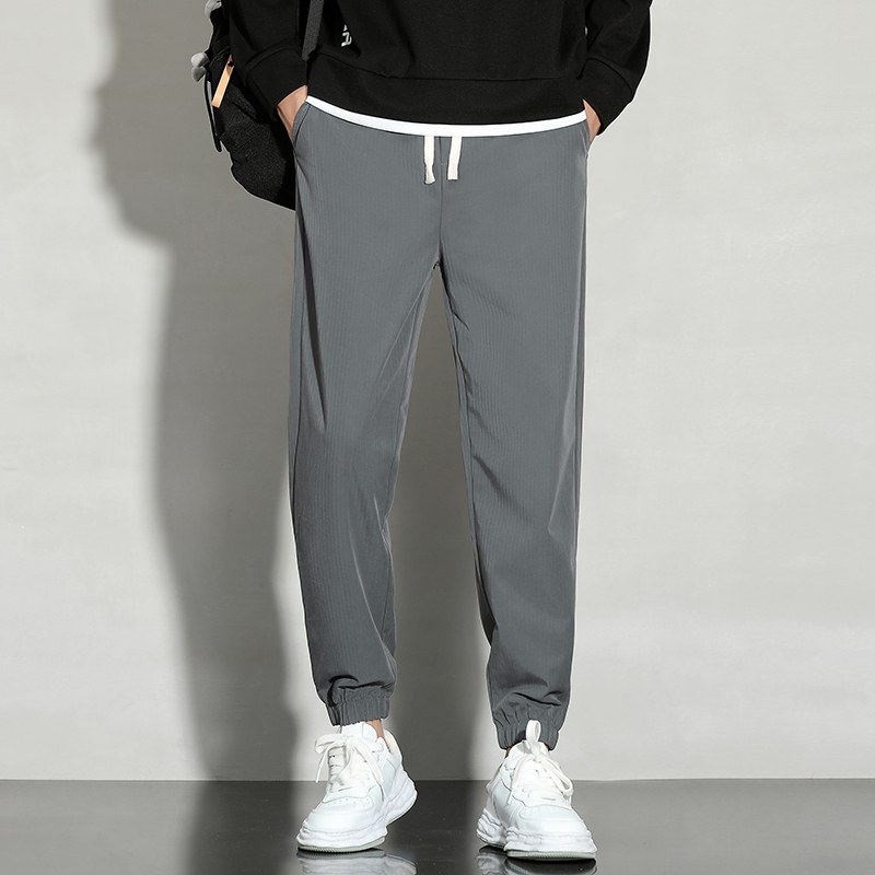 秋季休闲裤纯色百搭款卫裤男款春秋松紧腰长裤直筒裤日系工装裤