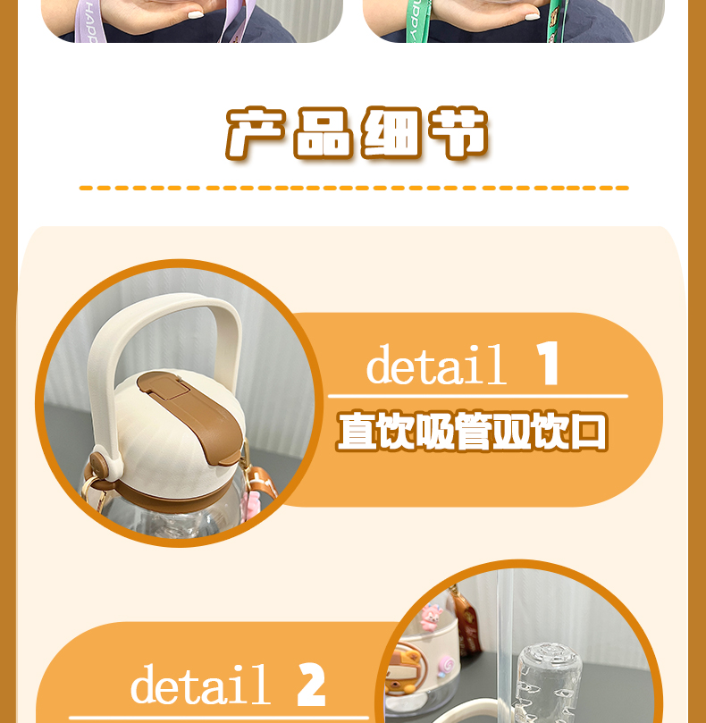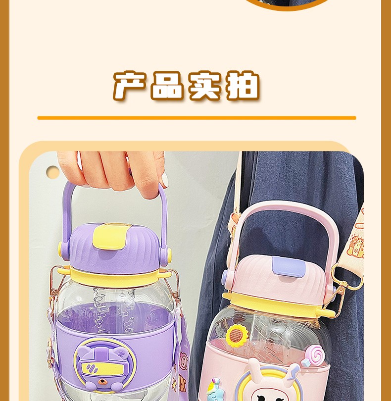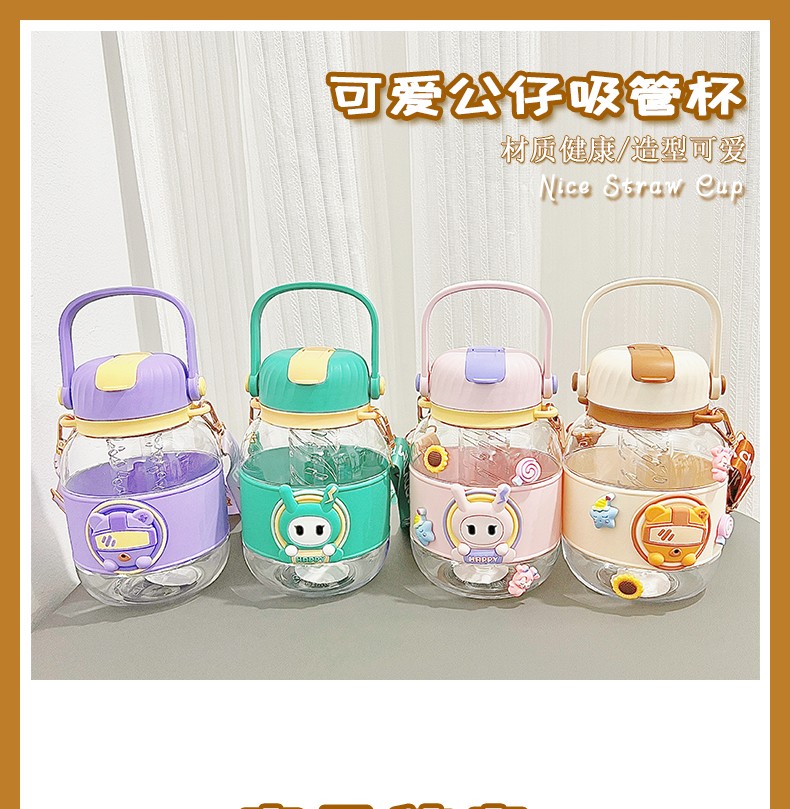 大肚杯儿童水杯夏季高颜值吸管杯大容量塑料杯学生运动水壶吨吨桶