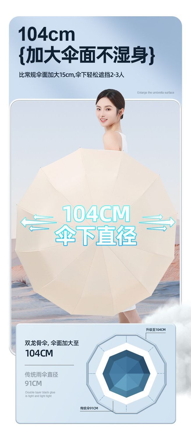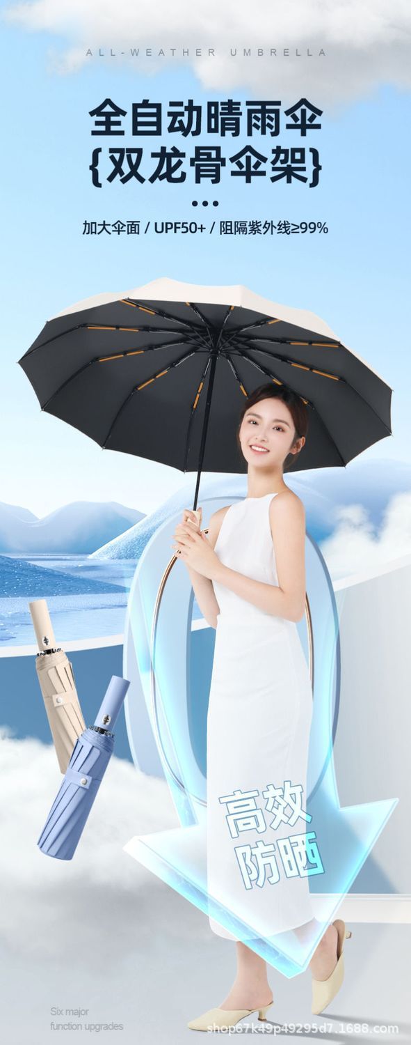 双龙骨全自动雨伞晴雨两用遮阳防晒防紫外线加固加厚太阳伞