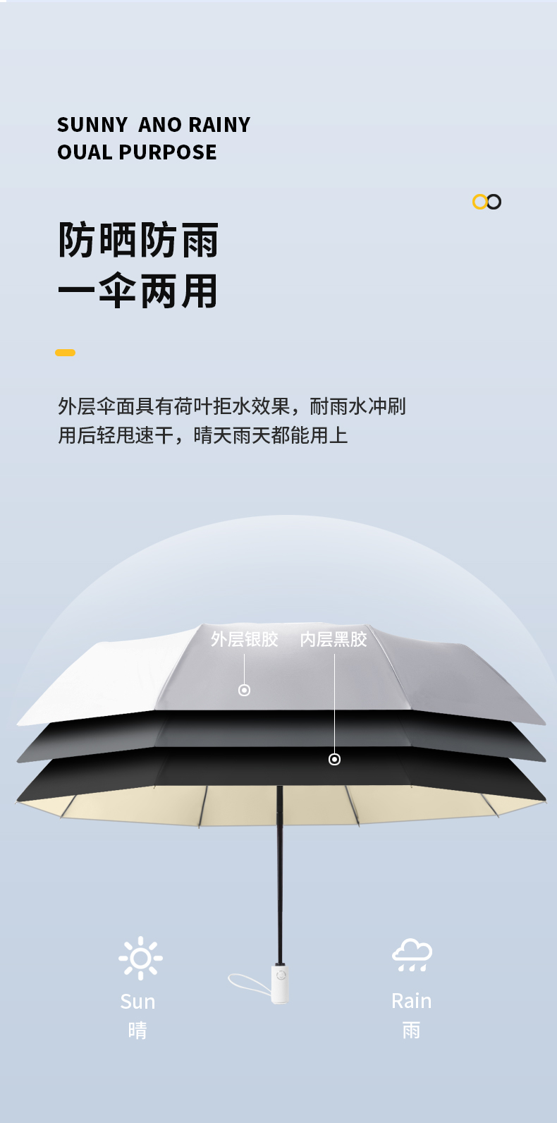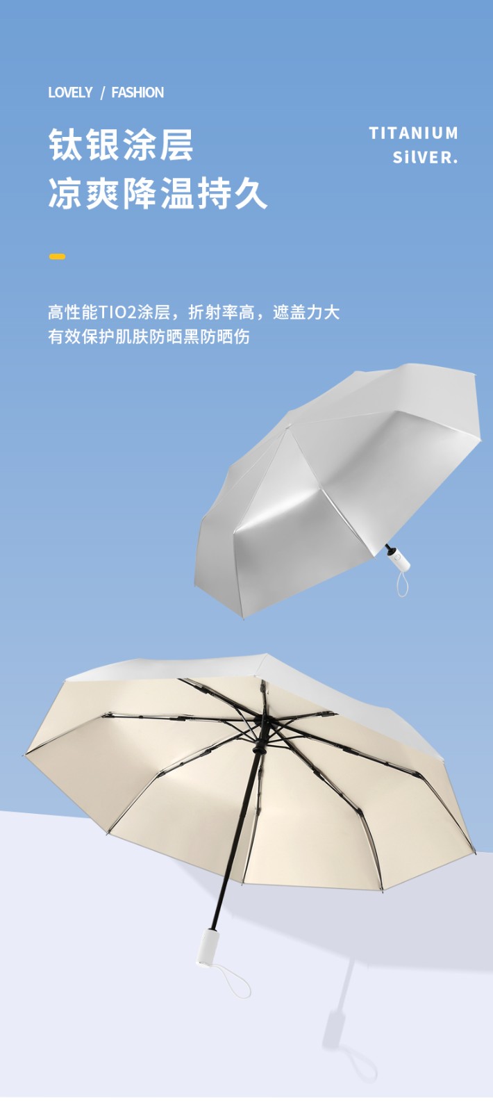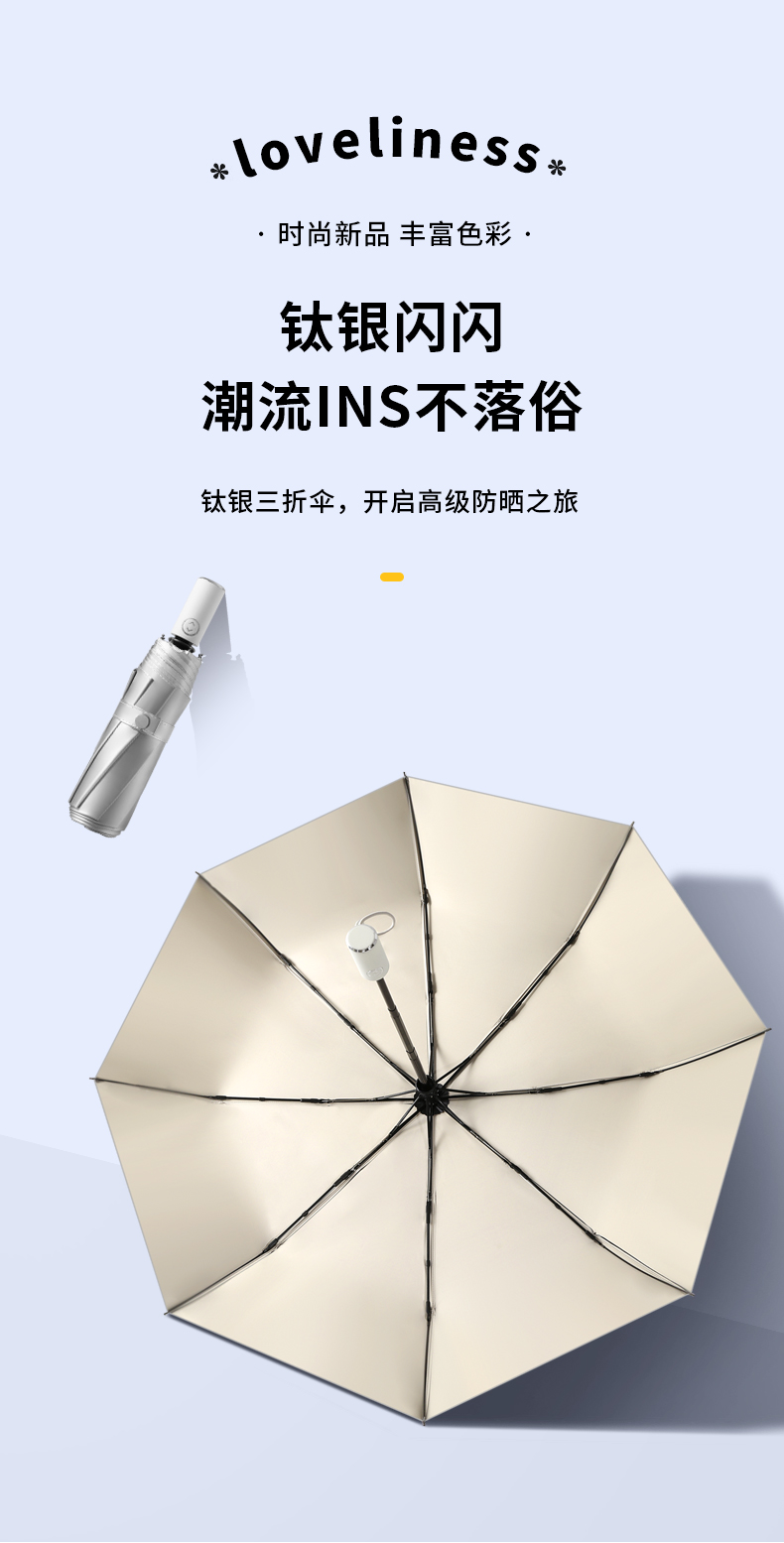 复古钛银双层太阳伞防晒防紫外线折叠晴雨两用女男upf50+遮阳伞