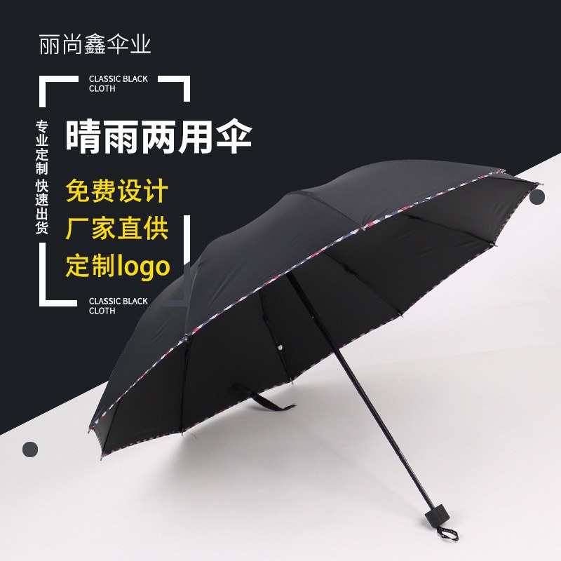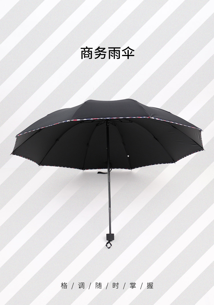 手动10骨包边黑胶伞商务防晒遮阳雨伞晴雨两用防风伞