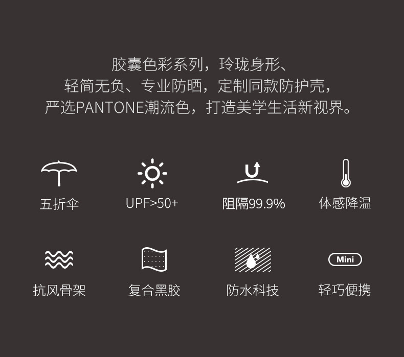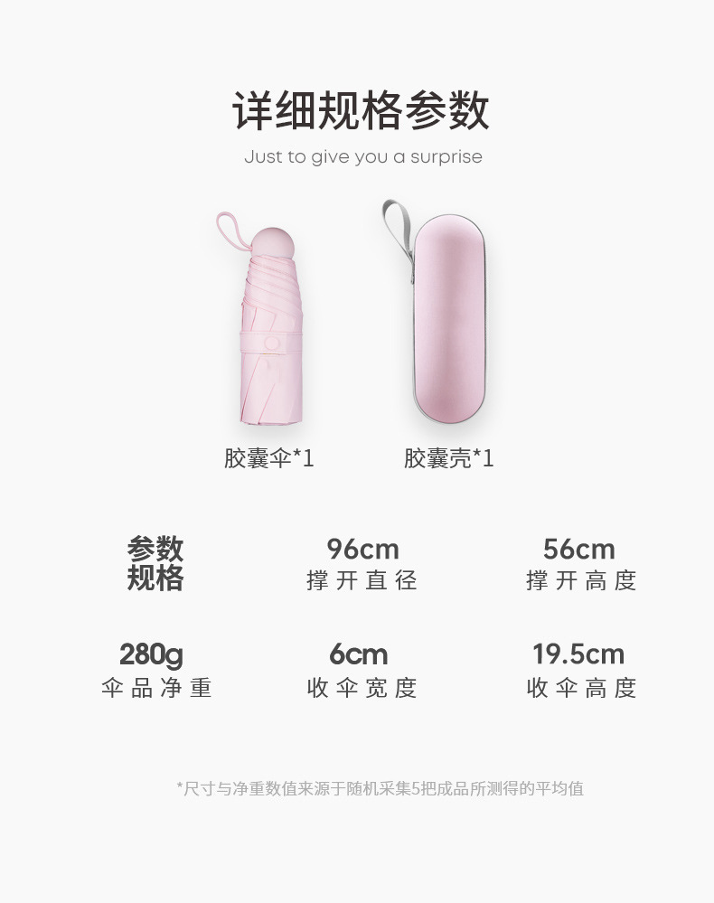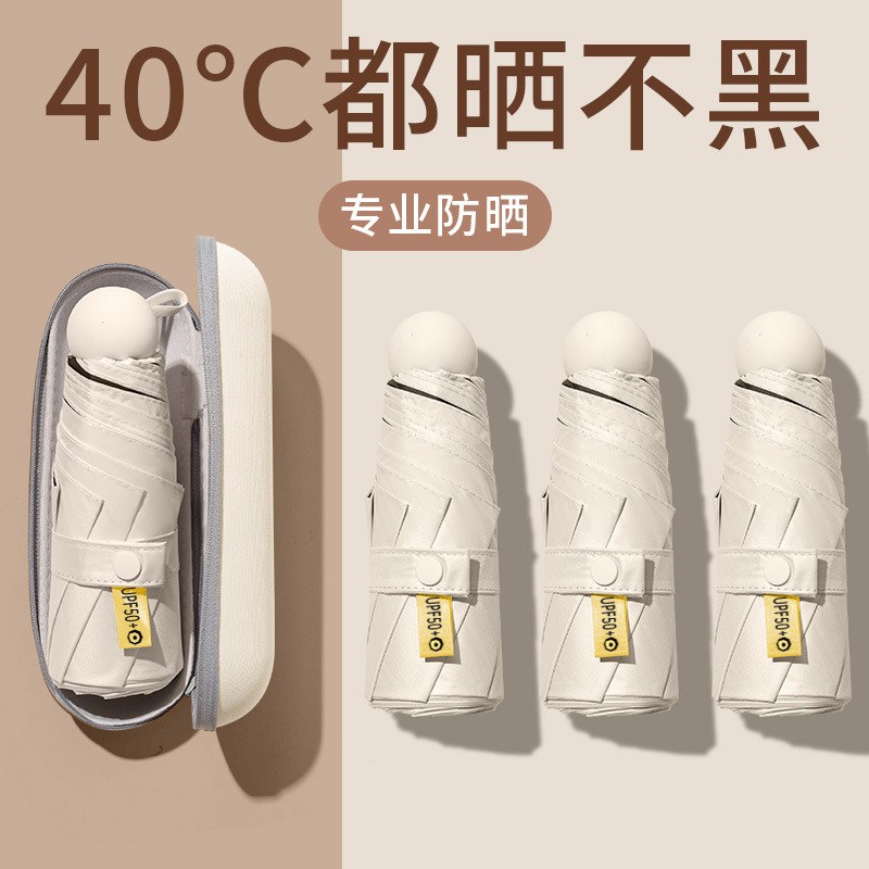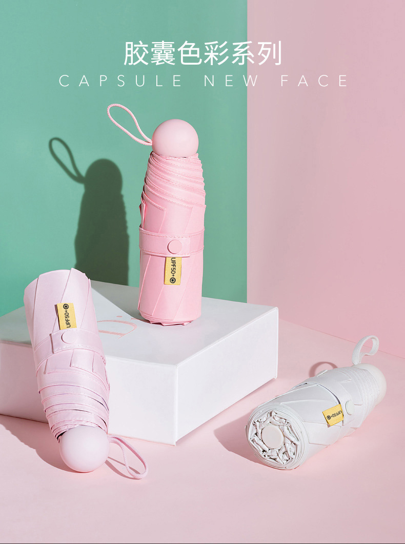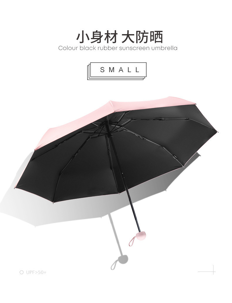 胶囊太阳伞防晒防紫外线遮阳黑胶伞两用女迷你五折叠小巧便携口袋