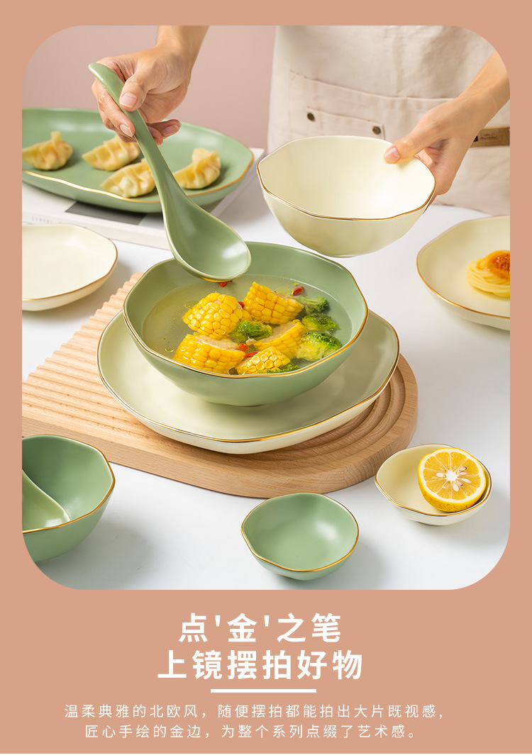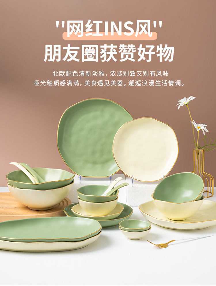 2023北欧风格家用陶瓷盘碗碟组合餐具餐厅创意曲巢高档碗盘礼盒