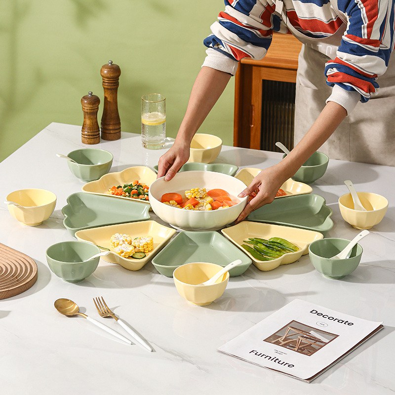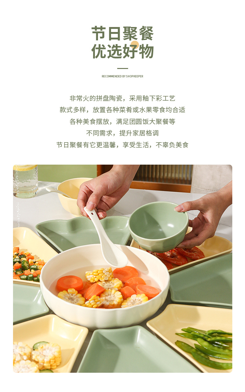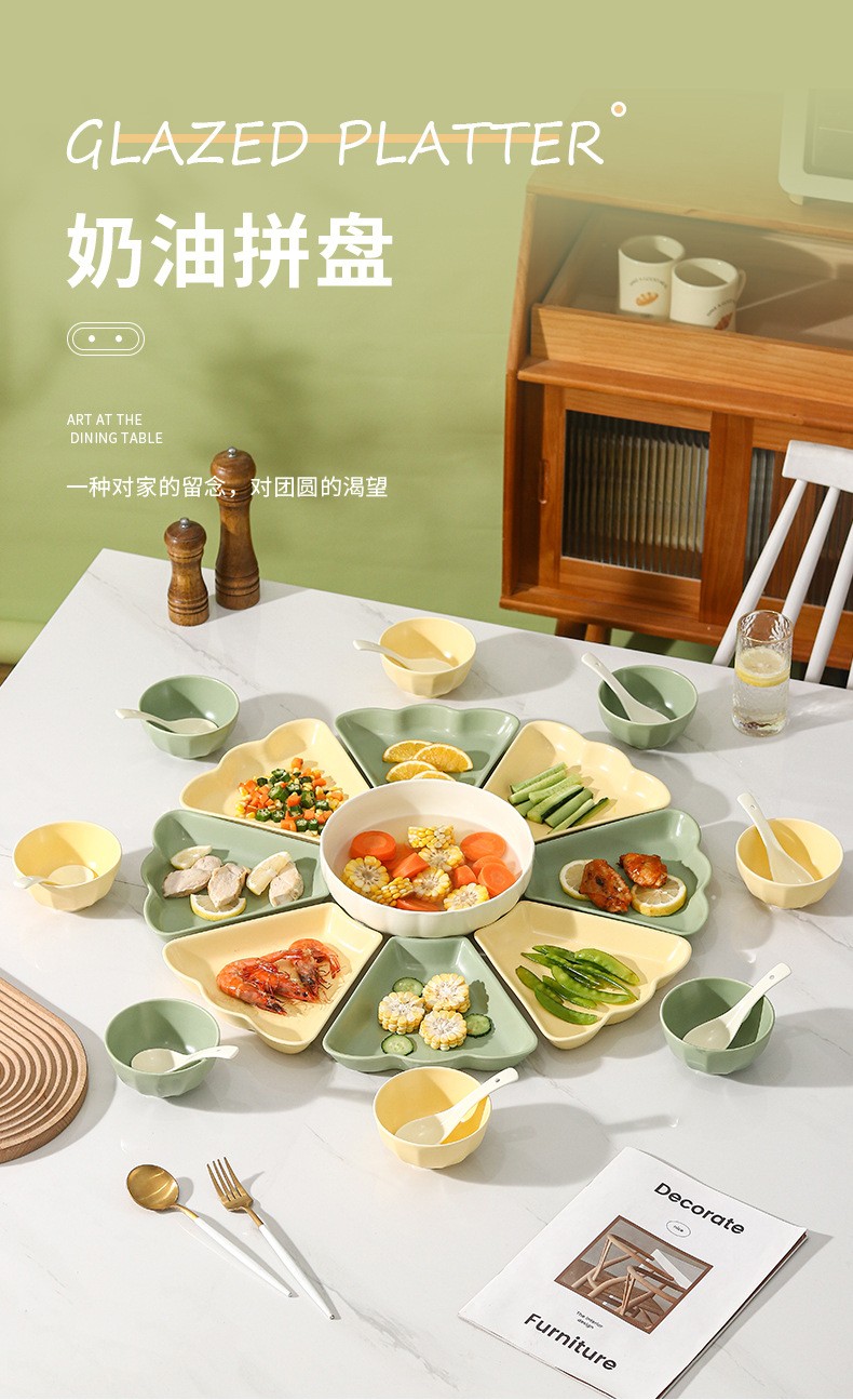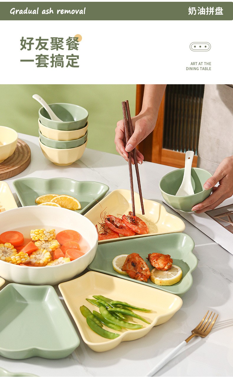 2023奶油风陶瓷碗碟碗盘套装团圆拼盘餐具网红创意陶瓷家用