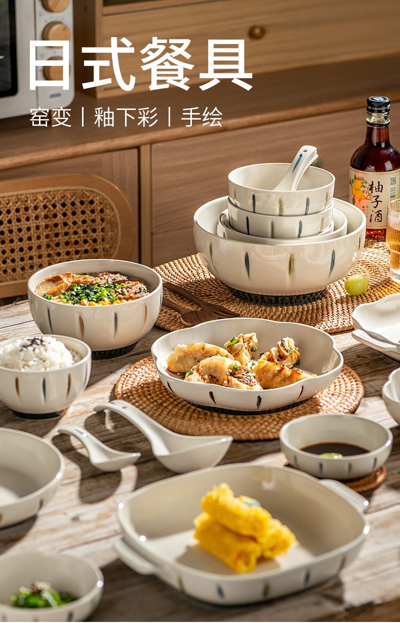 2023新款日式餐具碗碟套装陶瓷碗盘复古简约家用高档乔迁碗筷套装