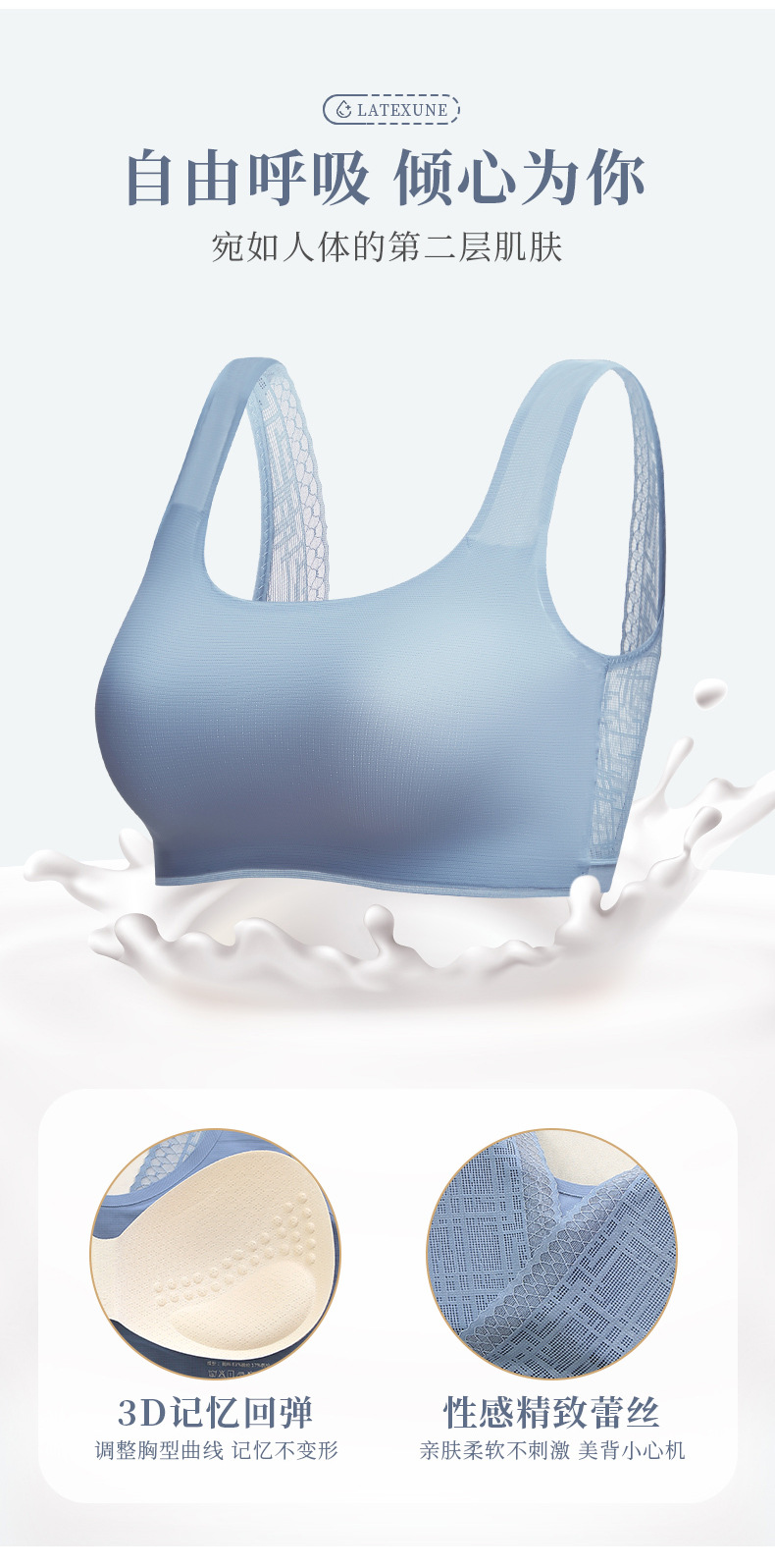2023乳胶美背内衣 u型蕾丝无痕背心款冰丝透气裹胸