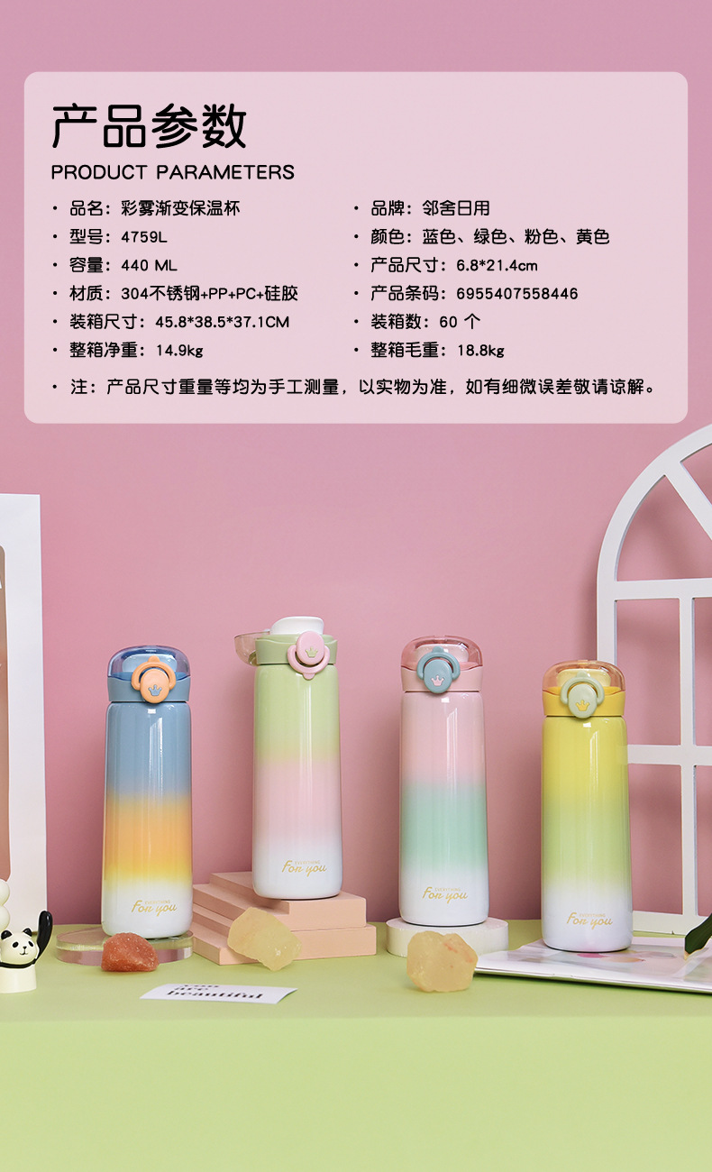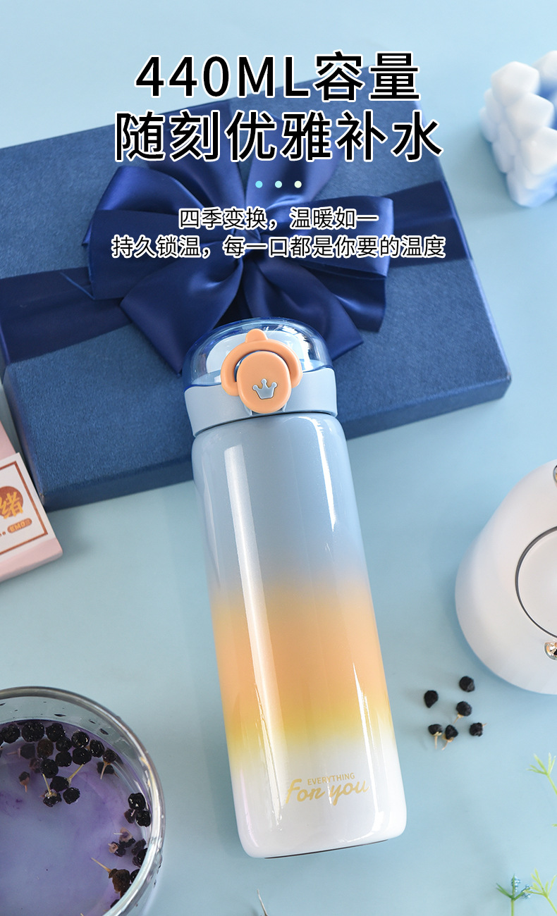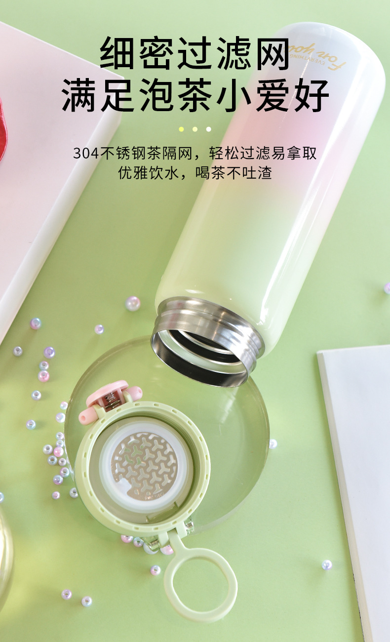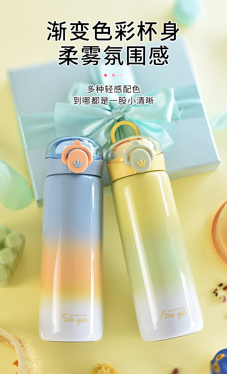 不锈钢304高颜值保温杯男女士学生杯子便携儿童直饮渐变水杯