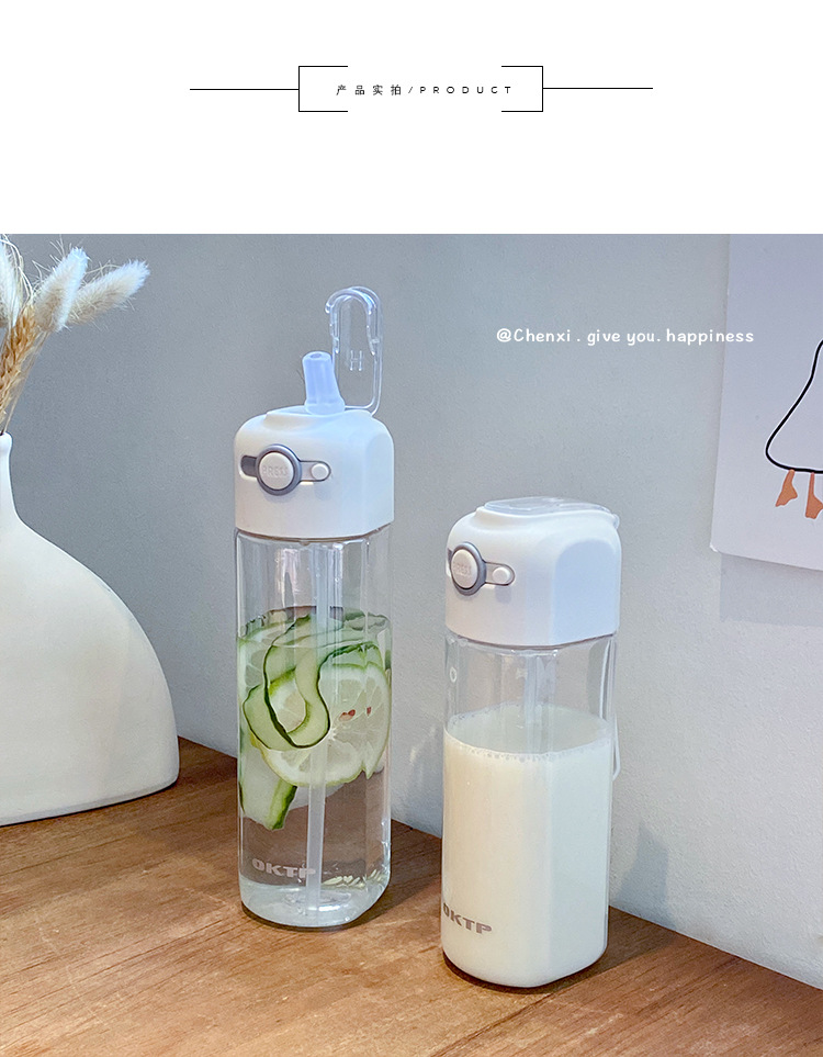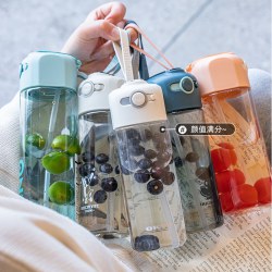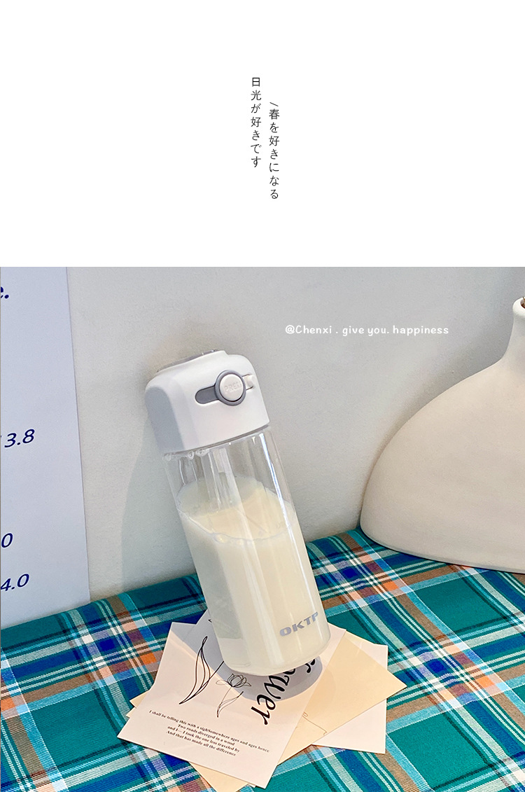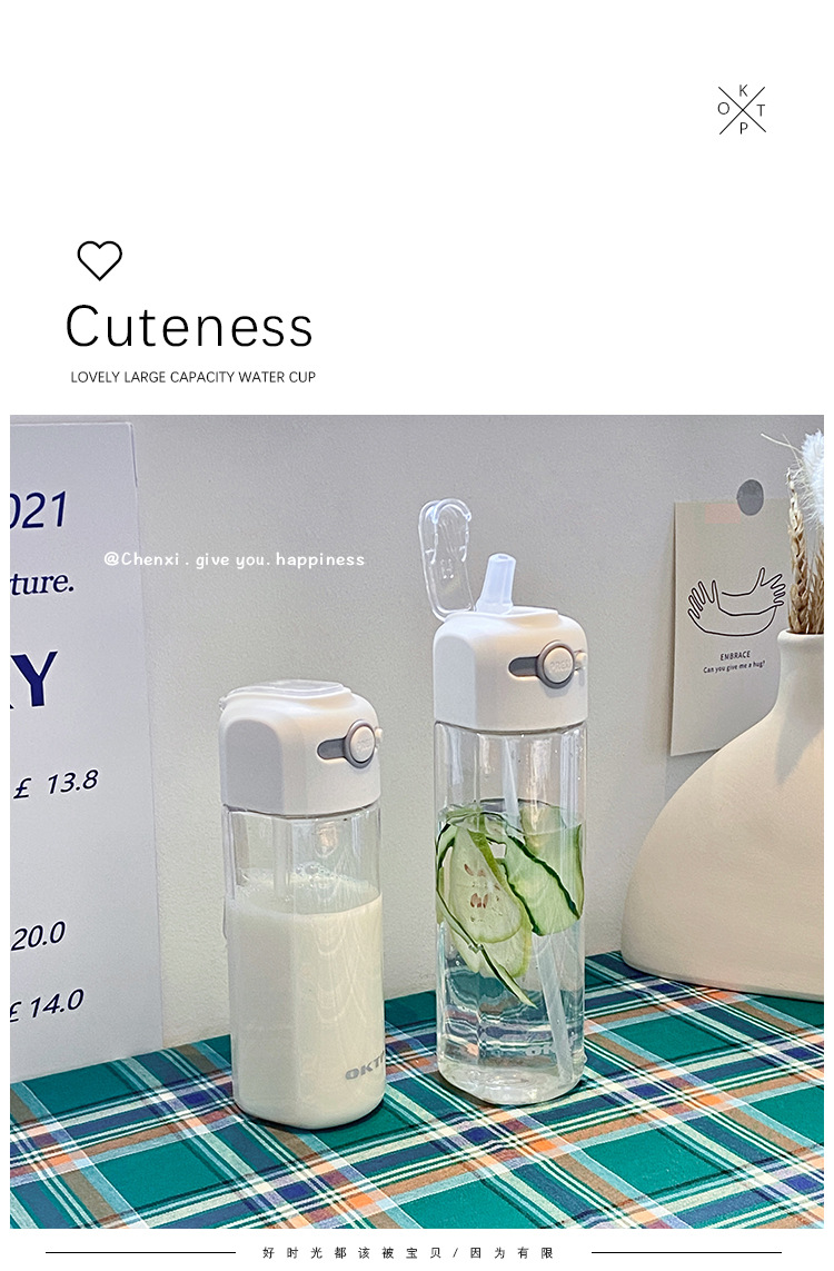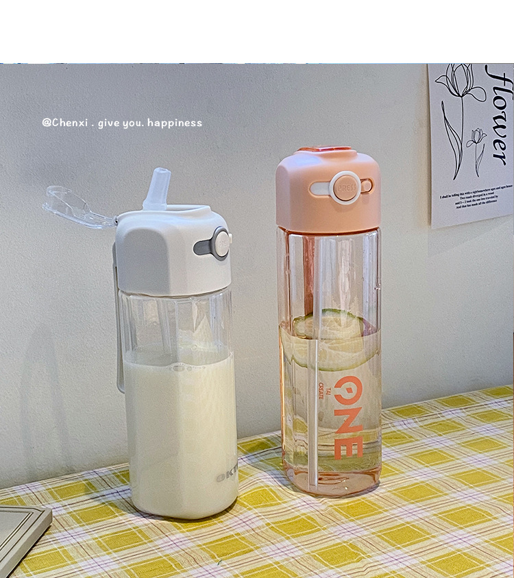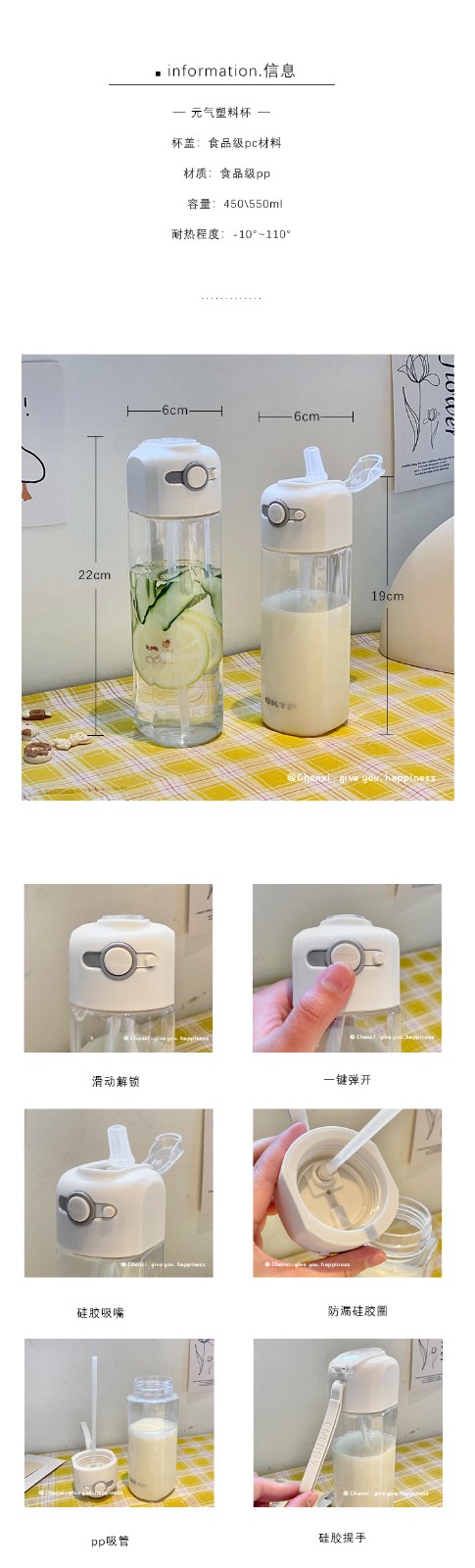 简约日系弹扣塑料杯女士吸管杯学生水杯便携小巧高颜值ins杯子