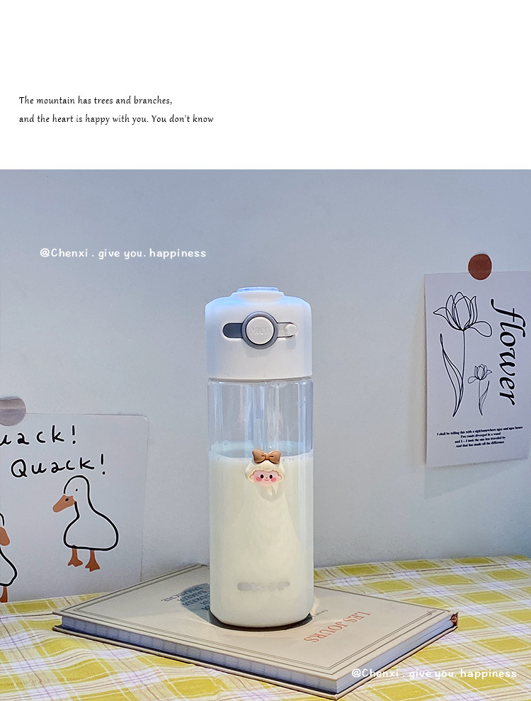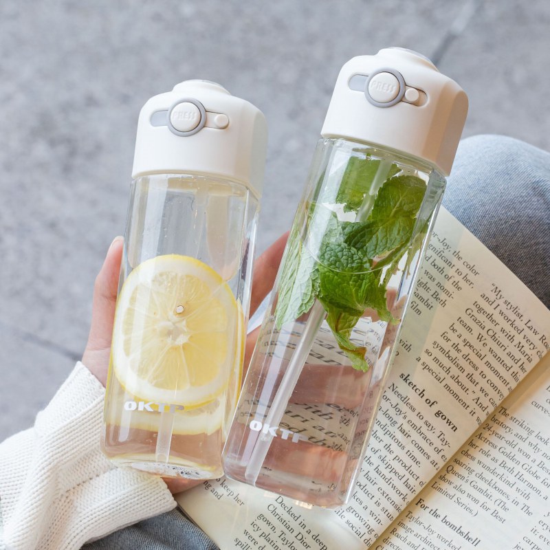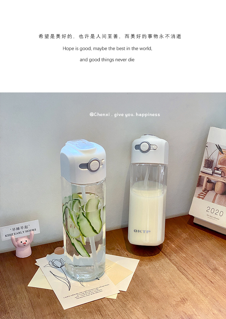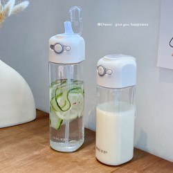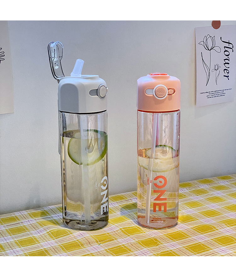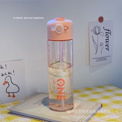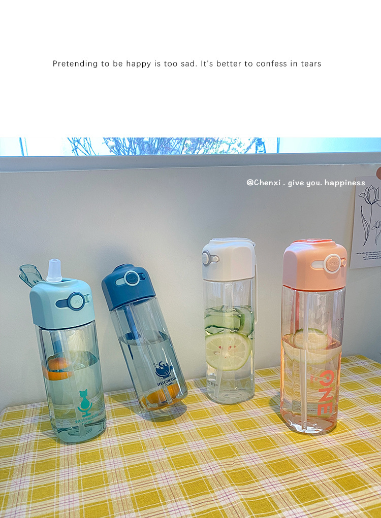 简约日系弹扣塑料杯女士吸管杯学生水杯便携小巧高颜值ins杯子