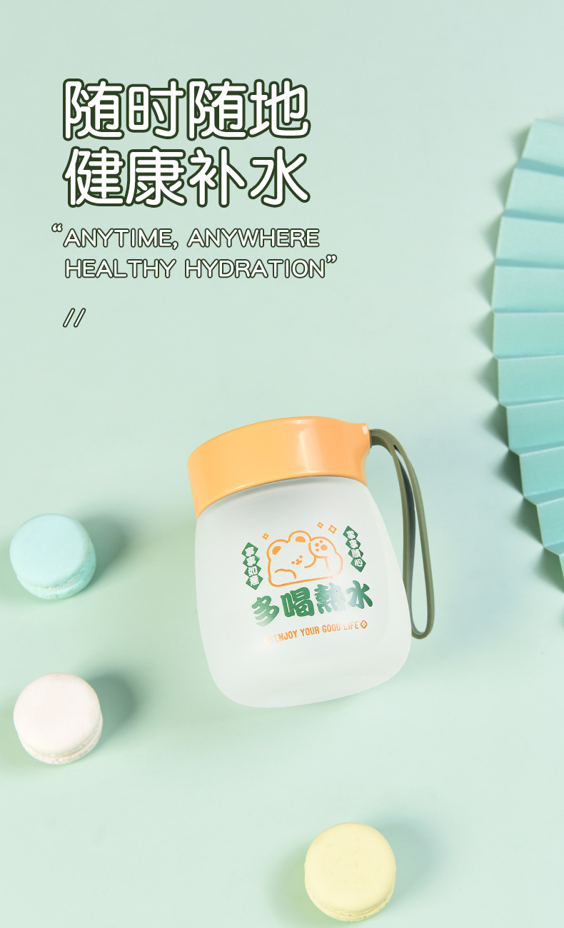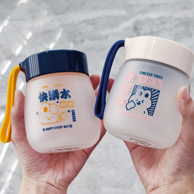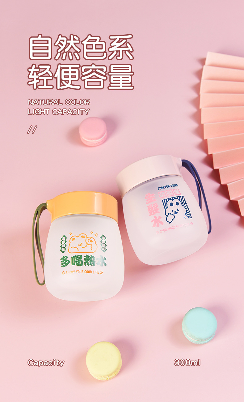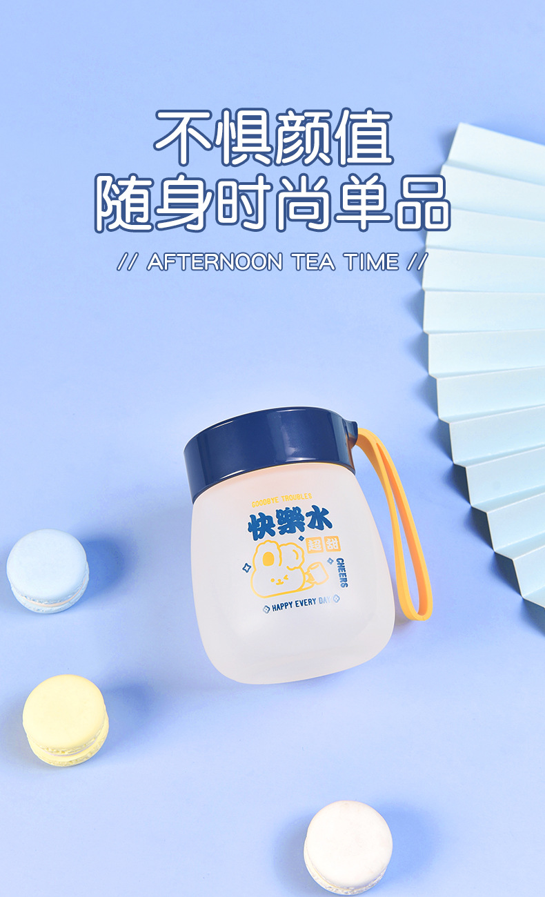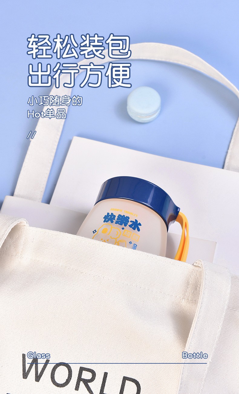 高颜值吸管玻璃杯手提杯女泡茶杯大容量吸管杯提醒喝水杯大肚杯子
