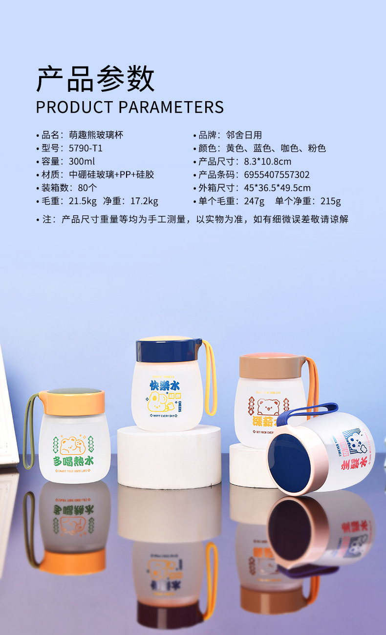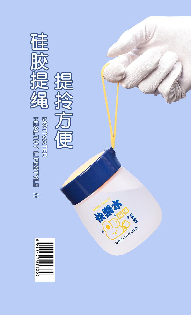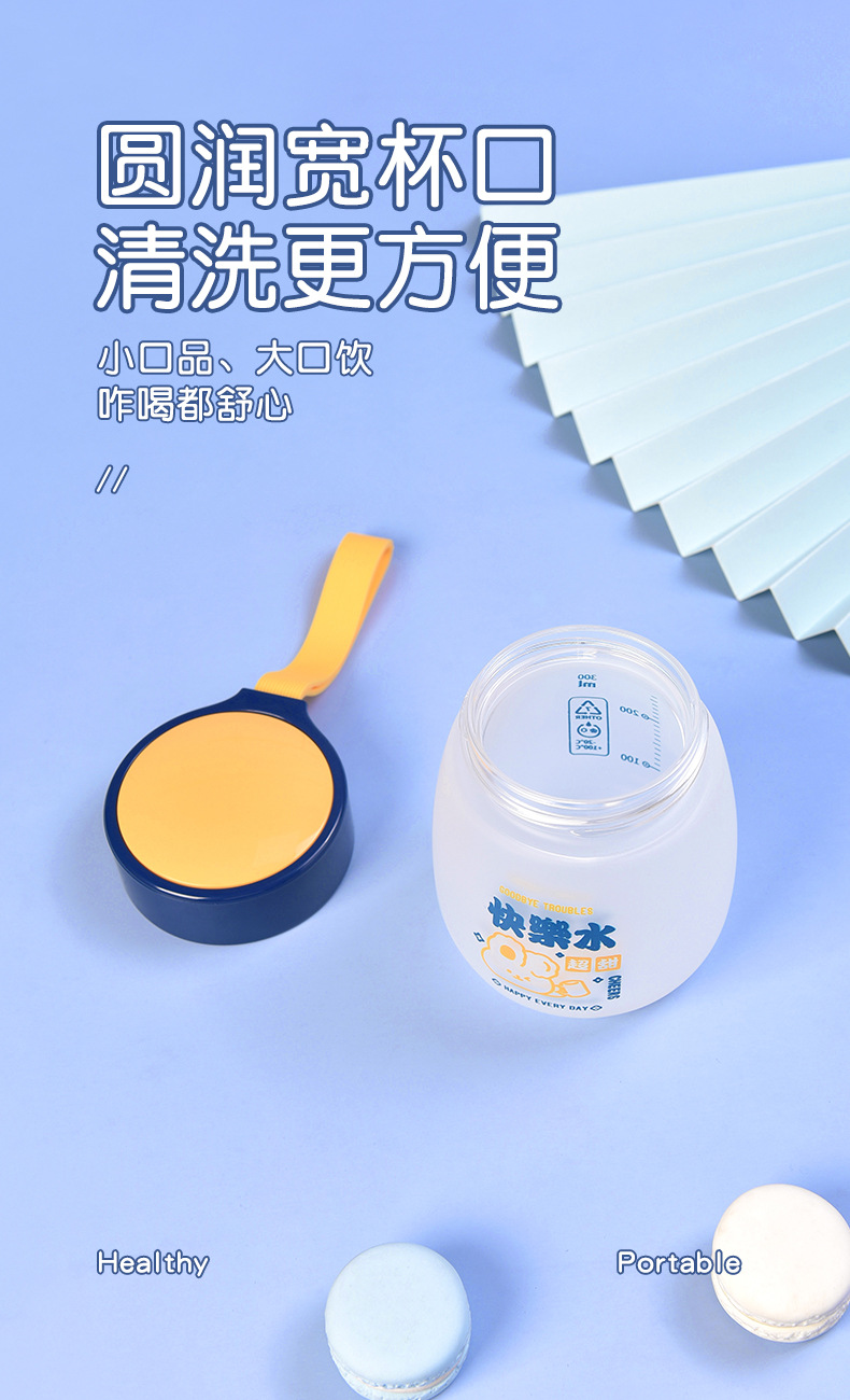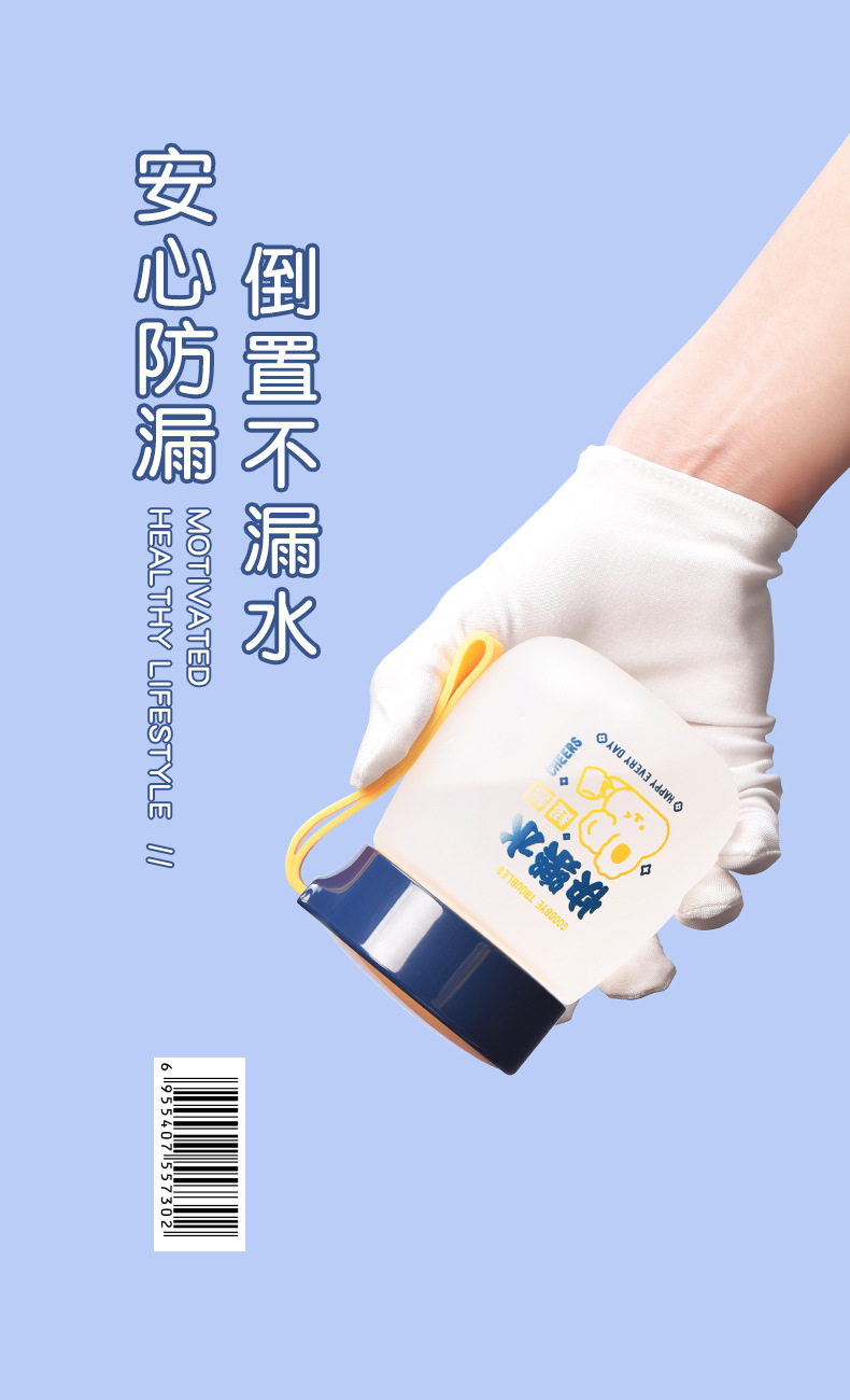 高颜值吸管玻璃杯手提杯女泡茶杯大容量吸管杯提醒喝水杯大肚杯子
