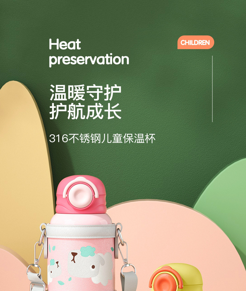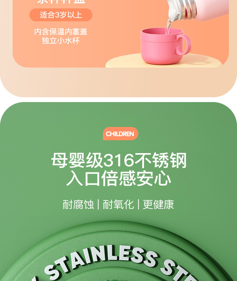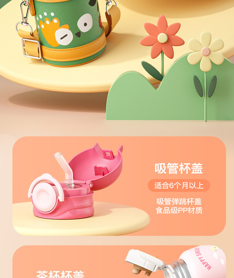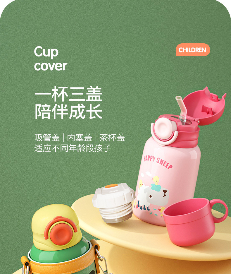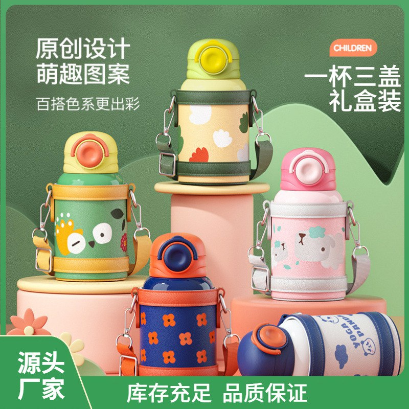 儿童保温杯316食品级便携防摔吸管杯子可爱高颜值礼品水杯三盖装
