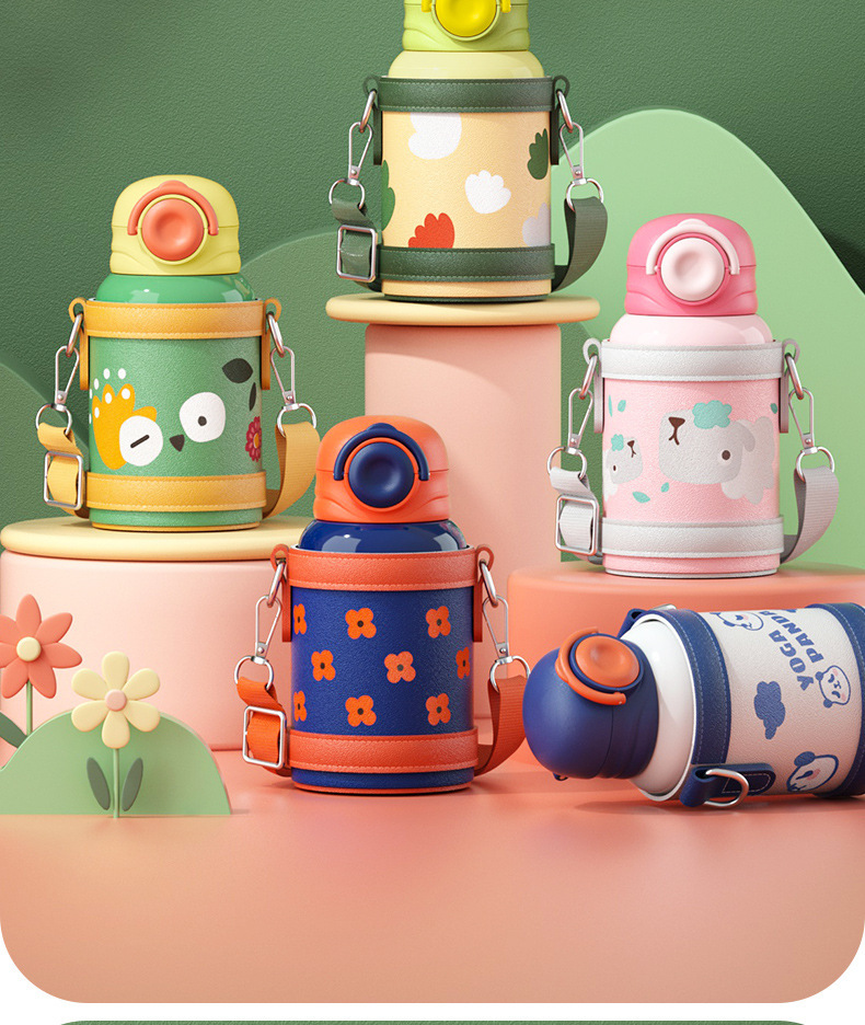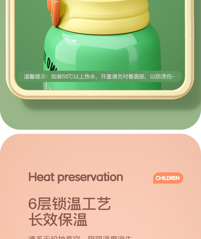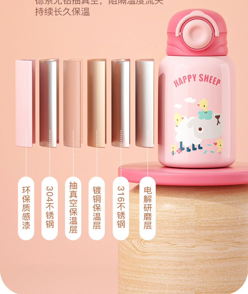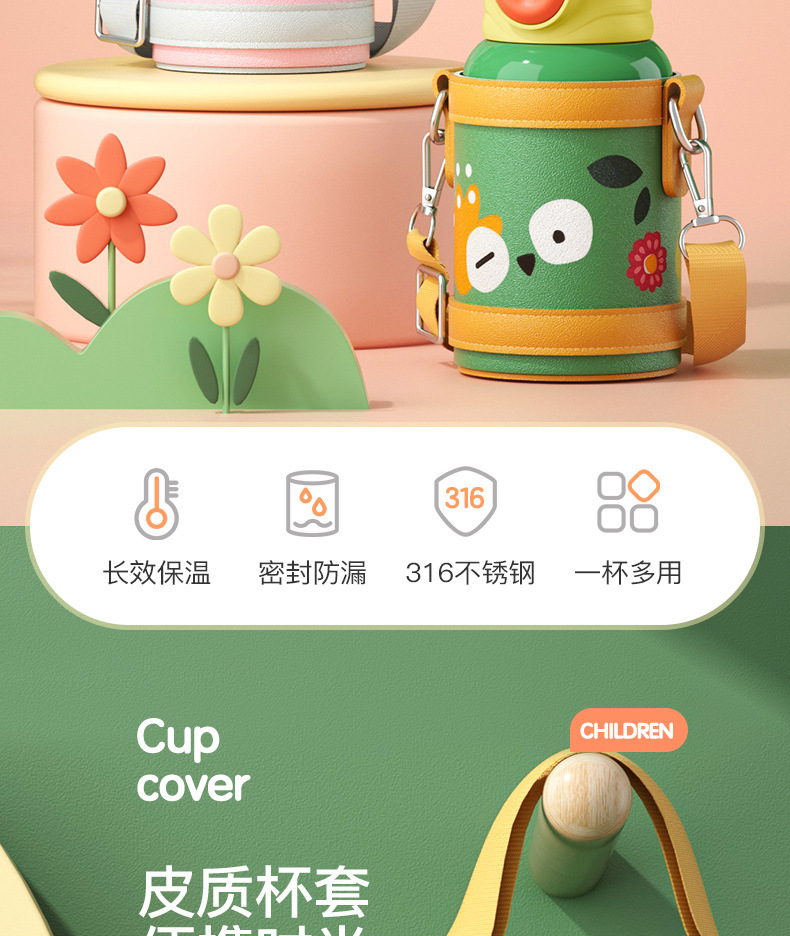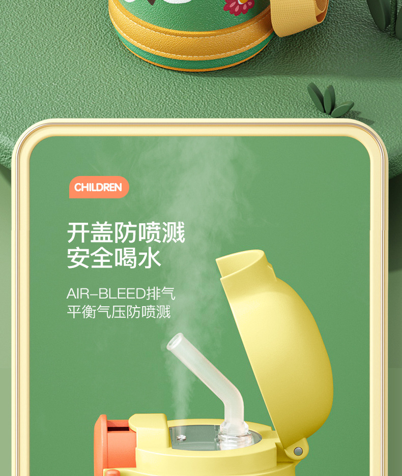 儿童保温杯316食品级便携防摔吸管杯子可爱高颜值礼品水杯三盖装