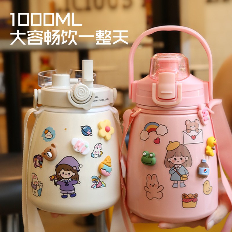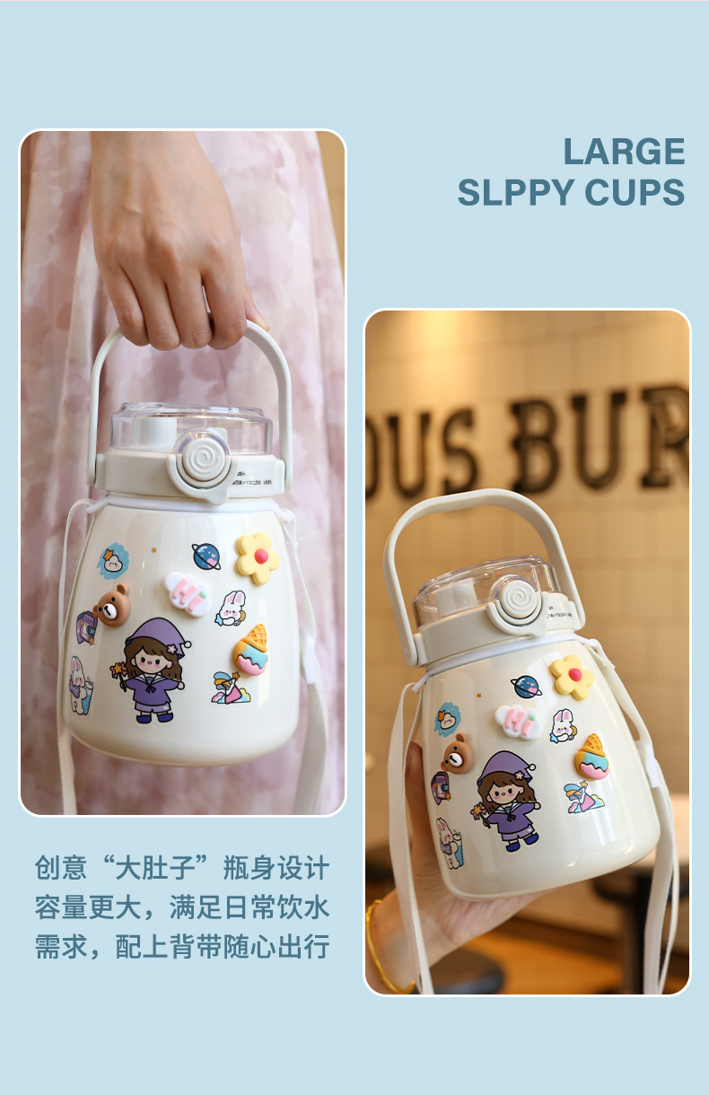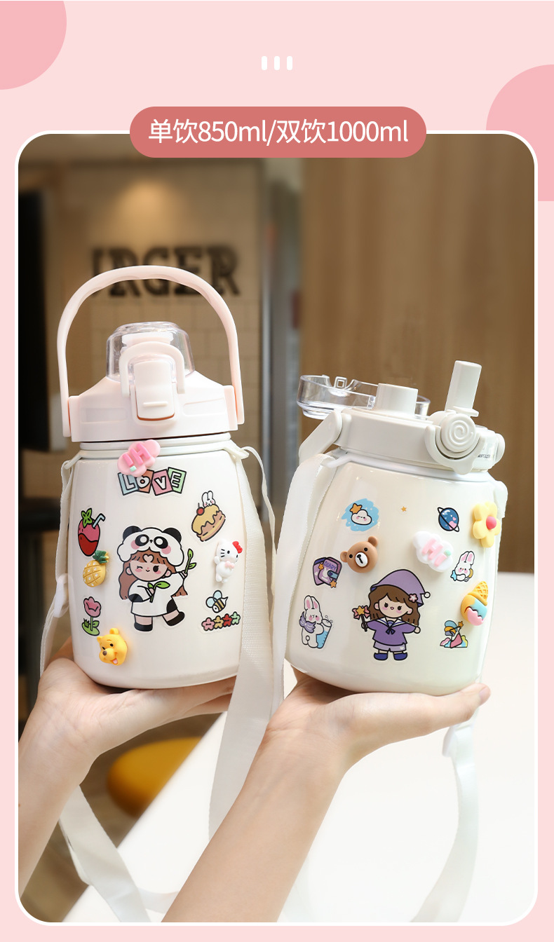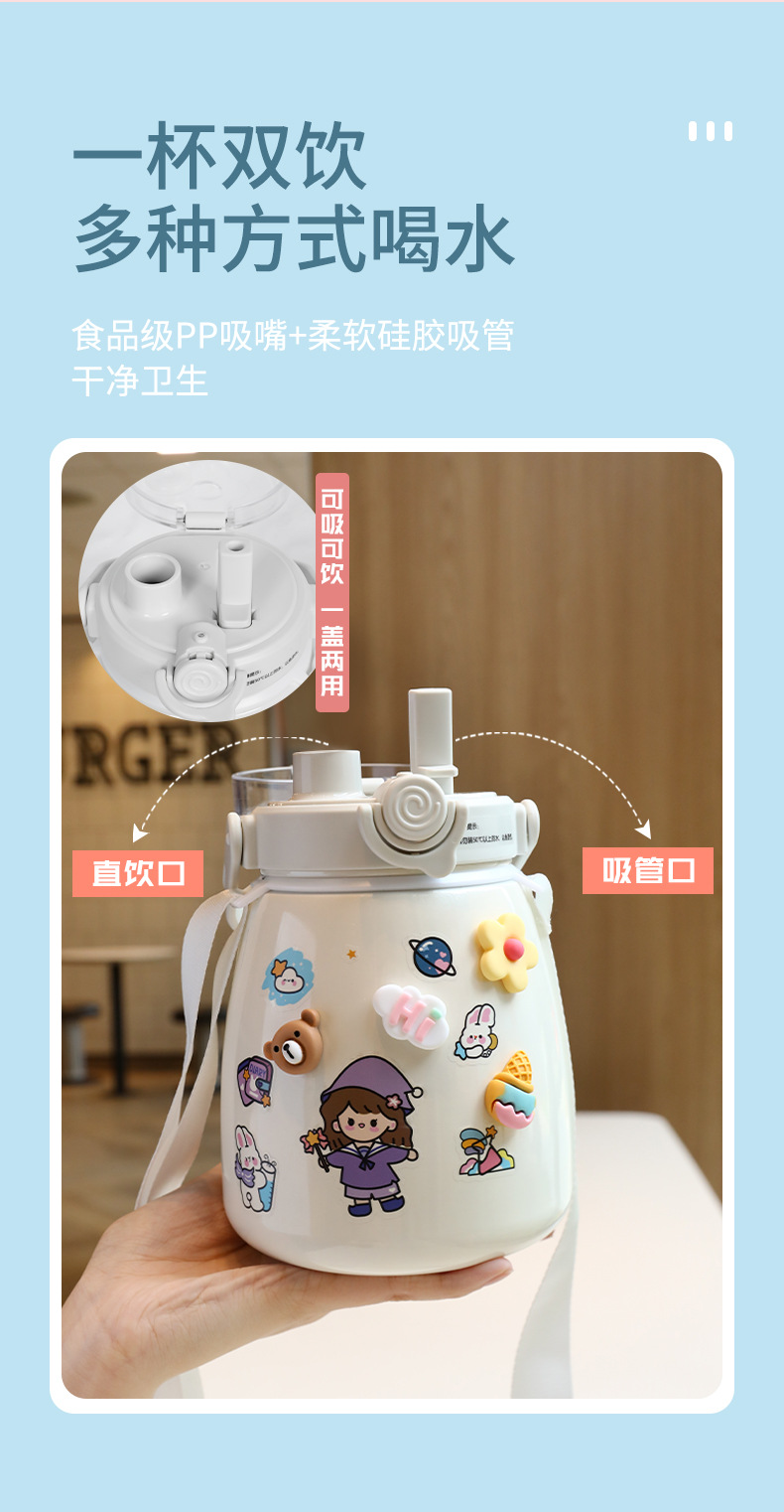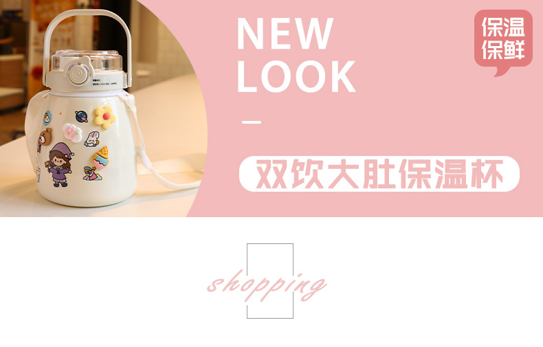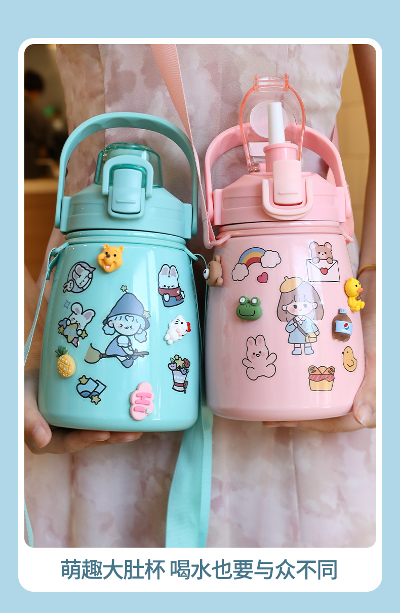 网红女高颜值大肚杯保温水杯 儿童吸管大容量便携304不锈钢礼品杯
