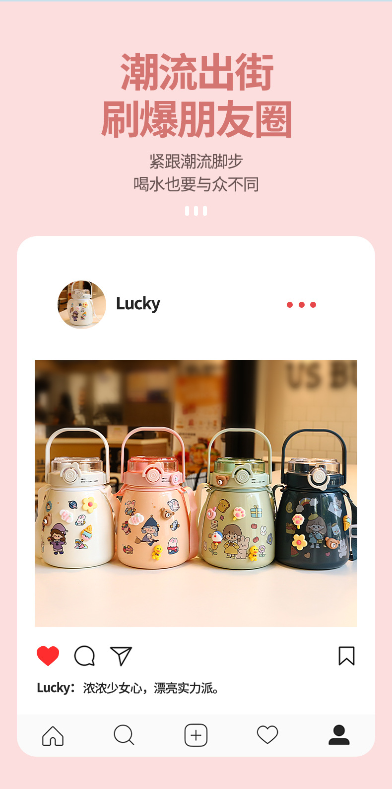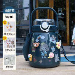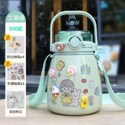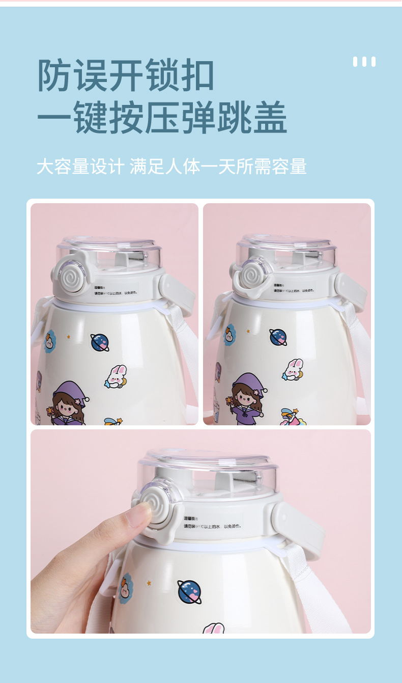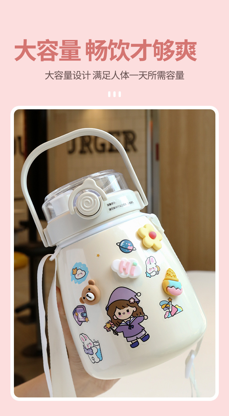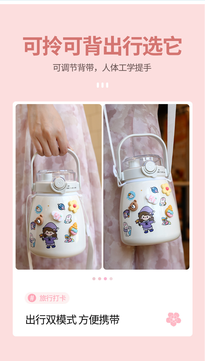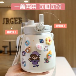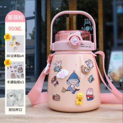 网红女高颜值大肚杯保温水杯 儿童吸管大容量便携304不锈钢礼品杯