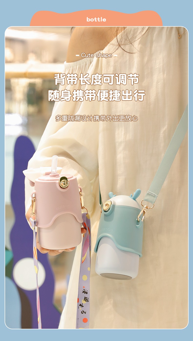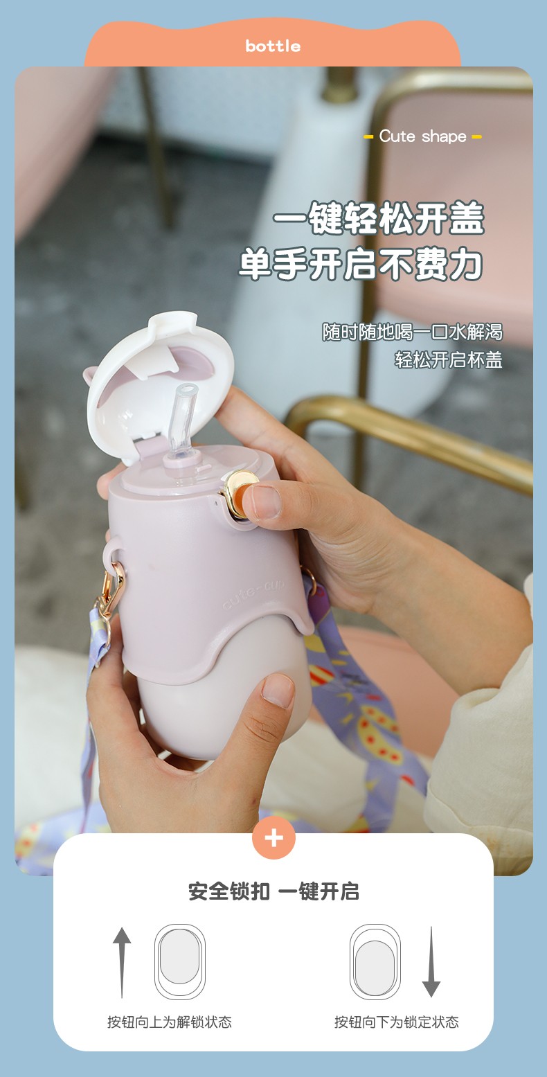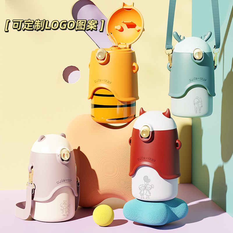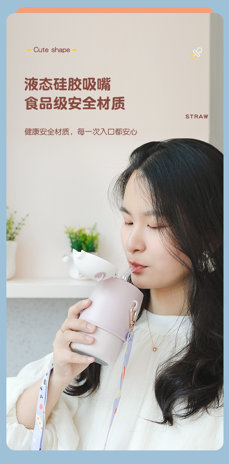 儿童保温杯女食品级316不锈钢学生高颜值吸管水杯便携可爱卡通杯
