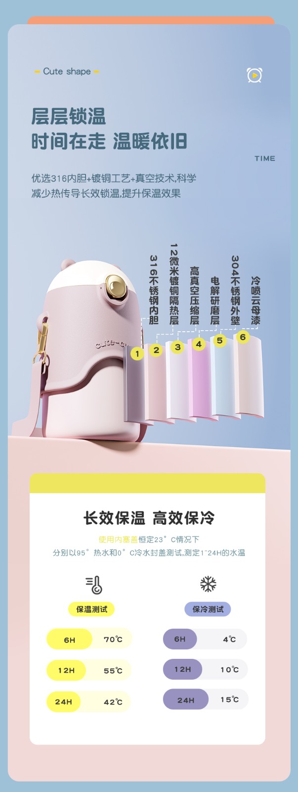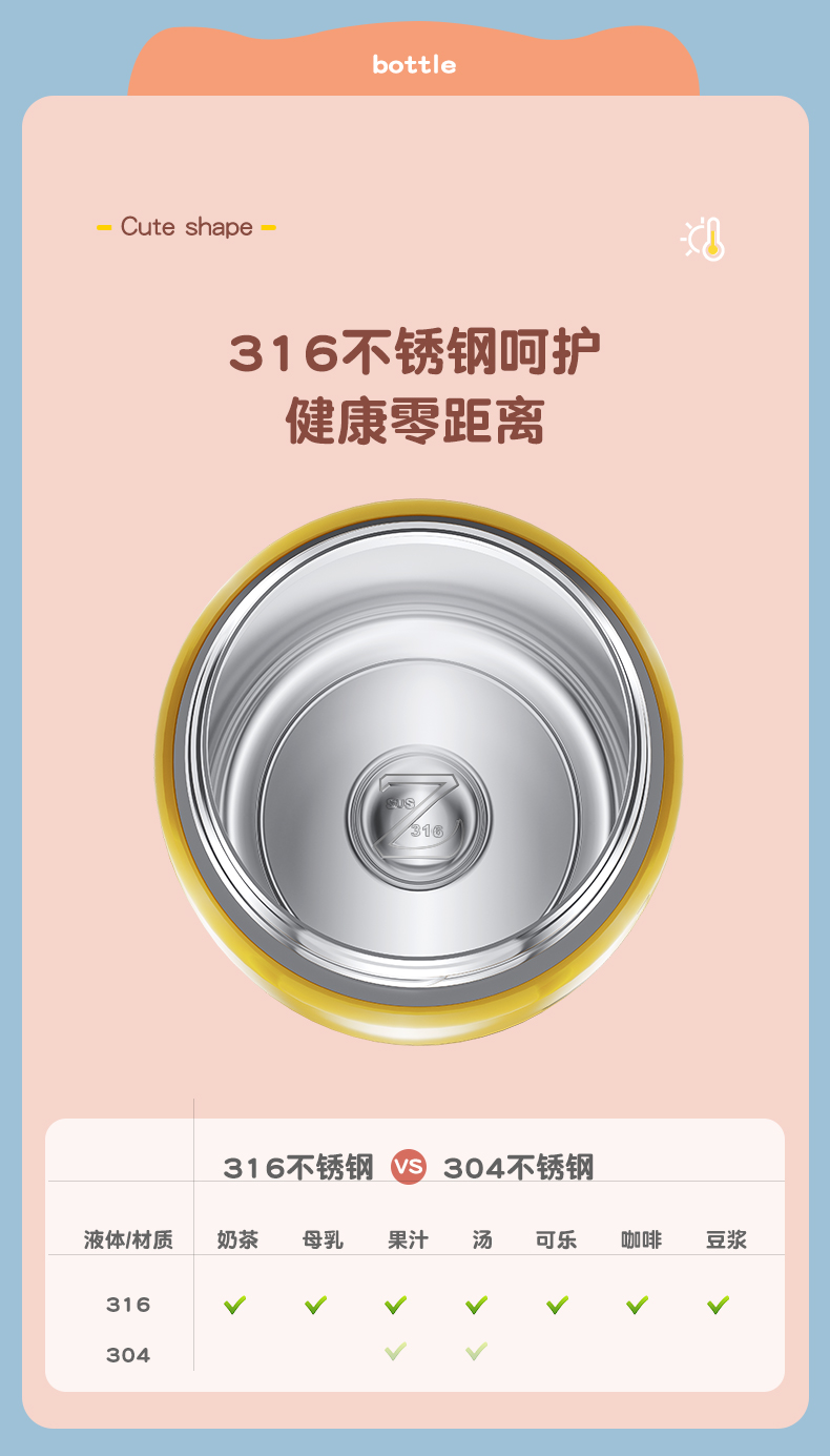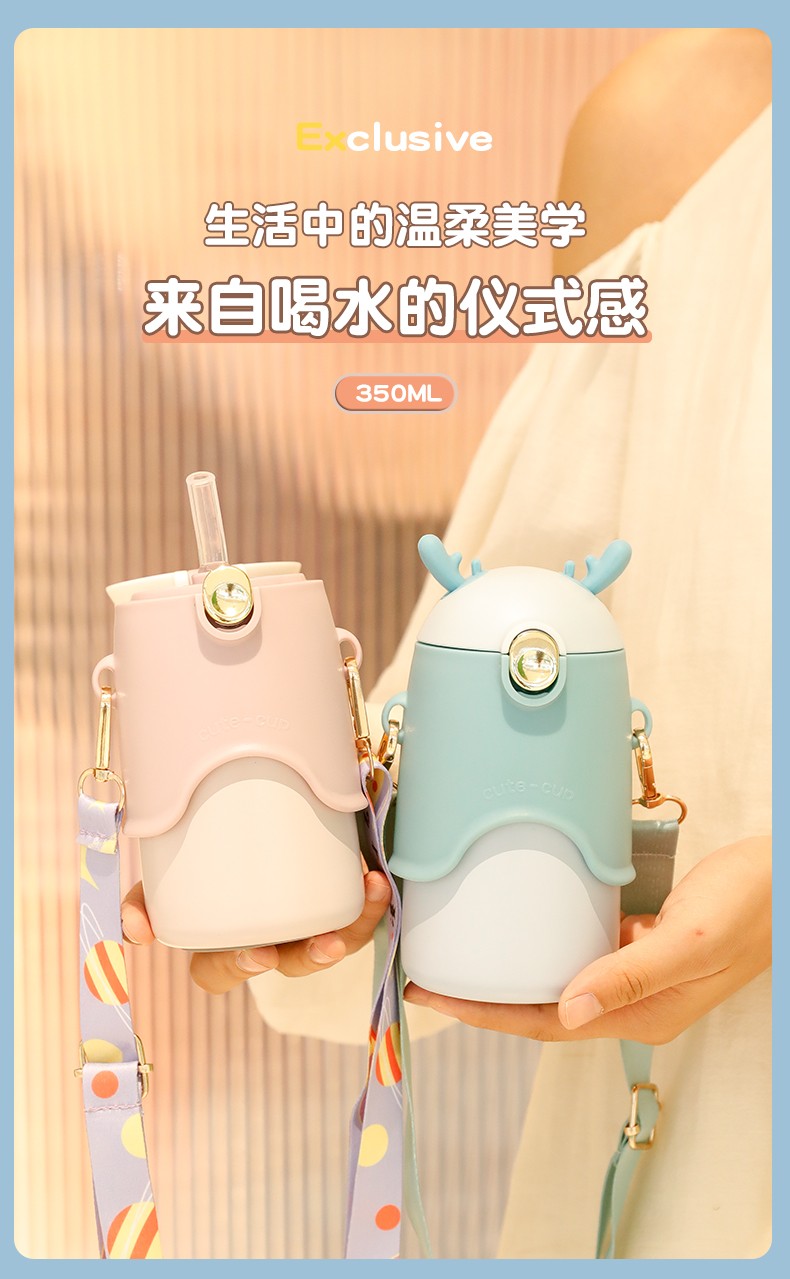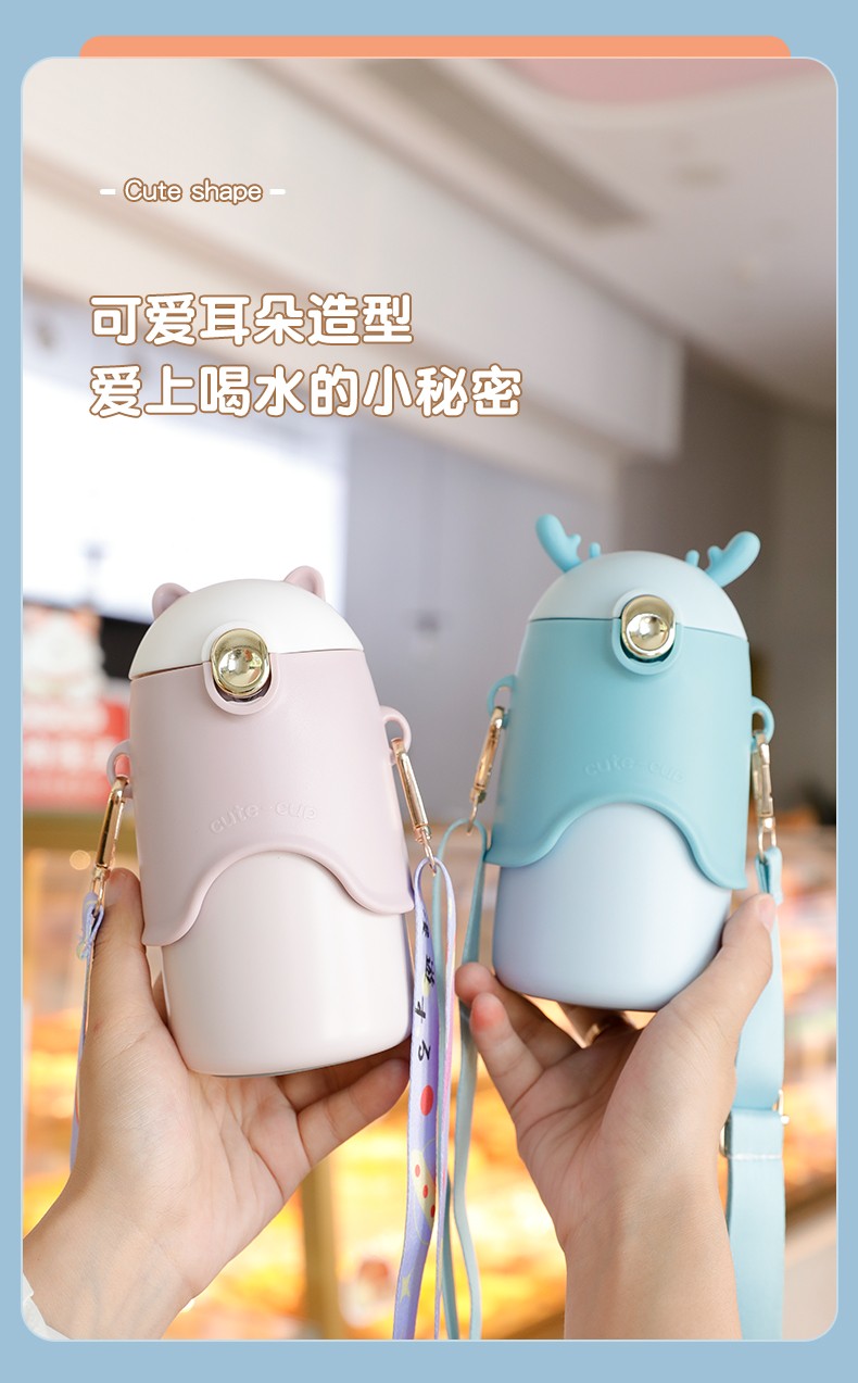 儿童保温杯女食品级316不锈钢学生高颜值吸管水杯便携可爱卡通杯