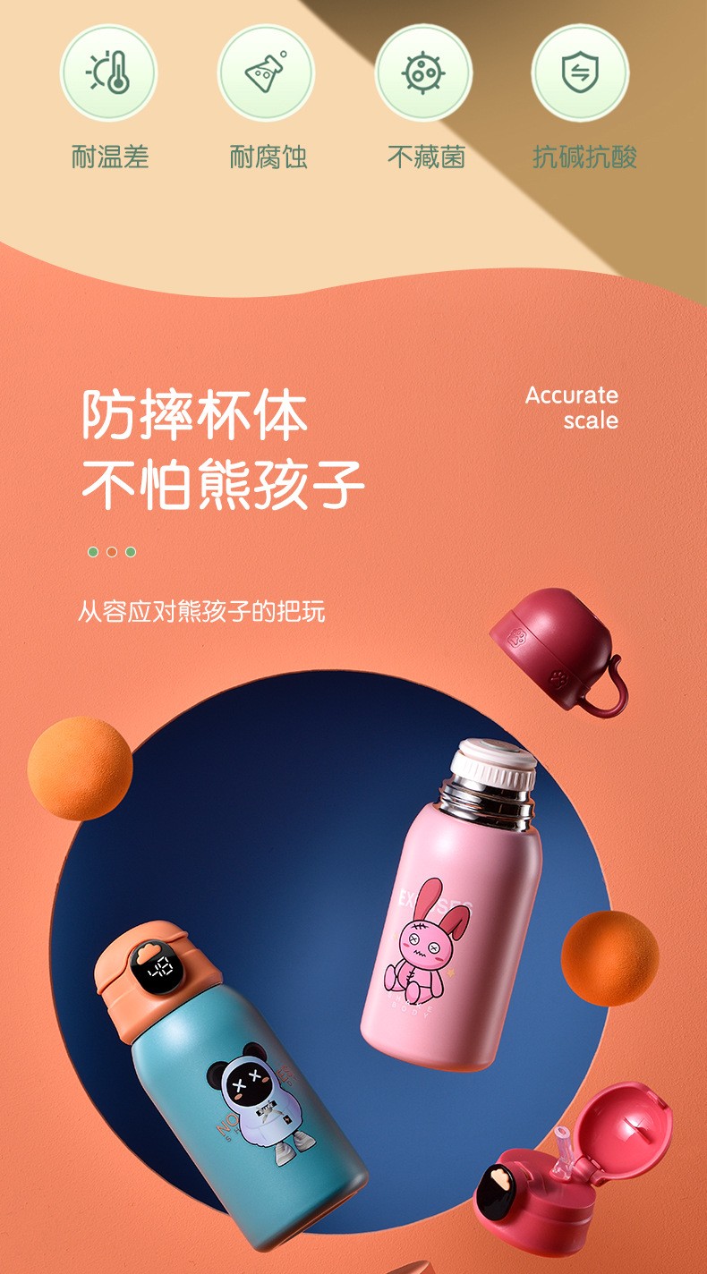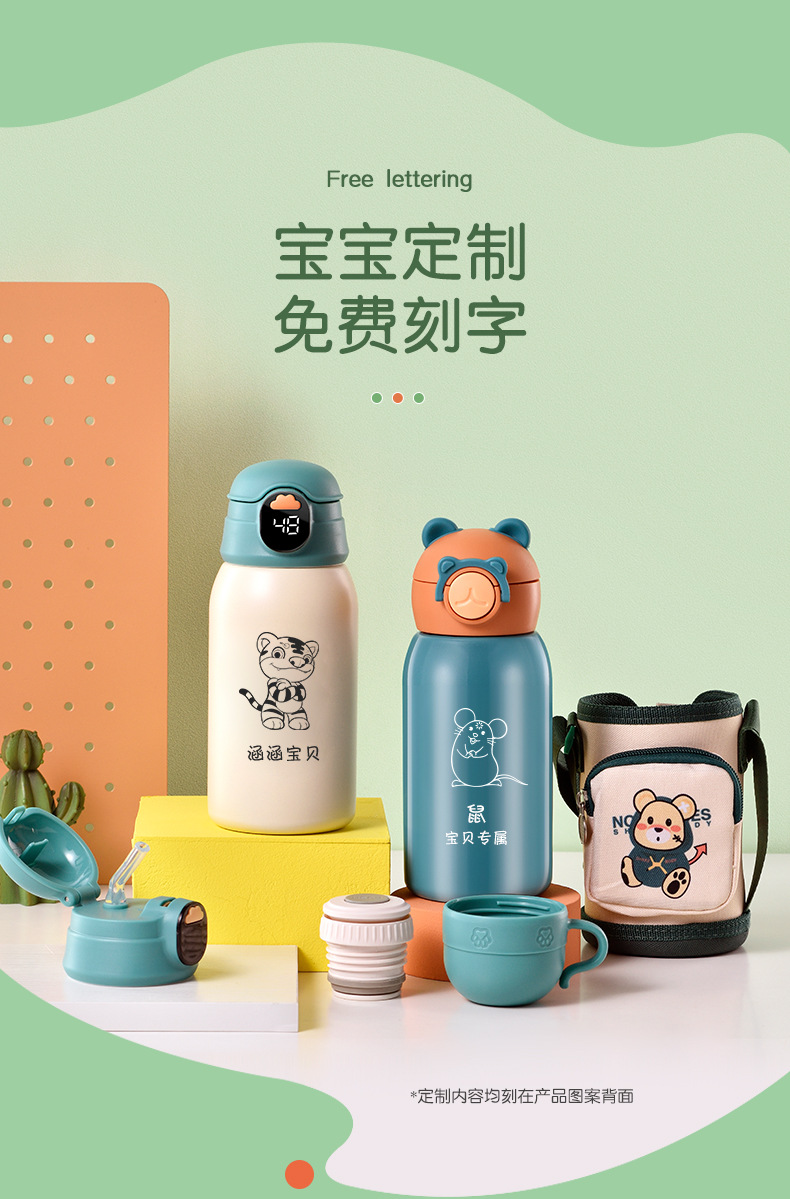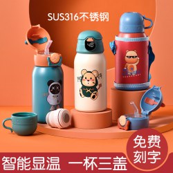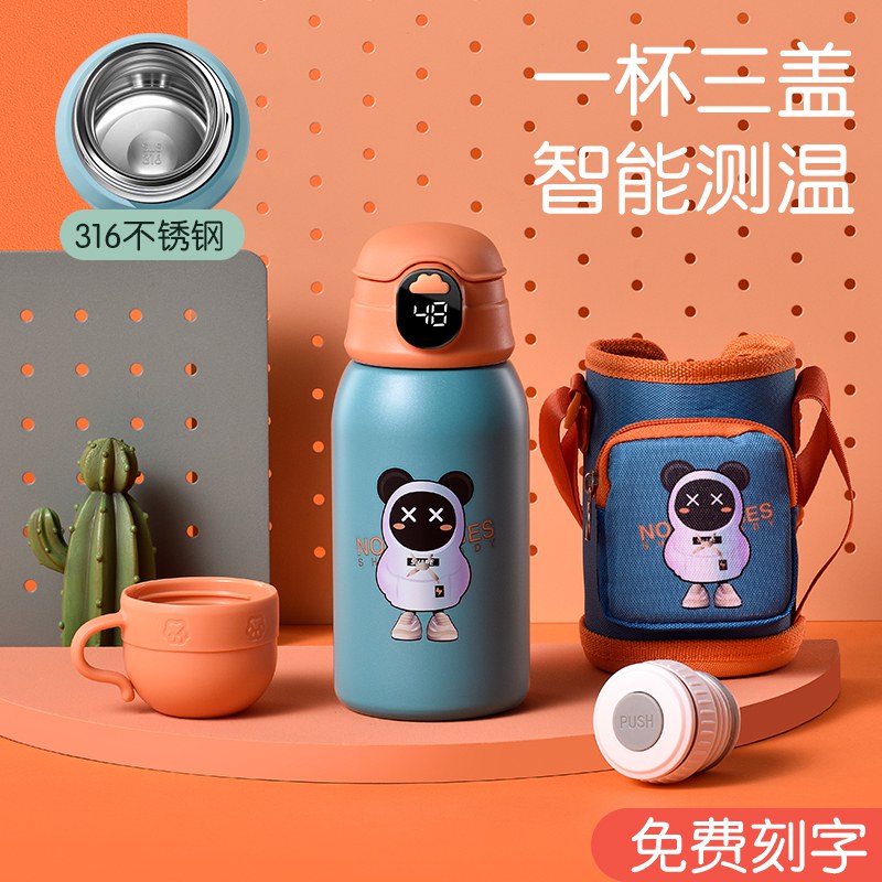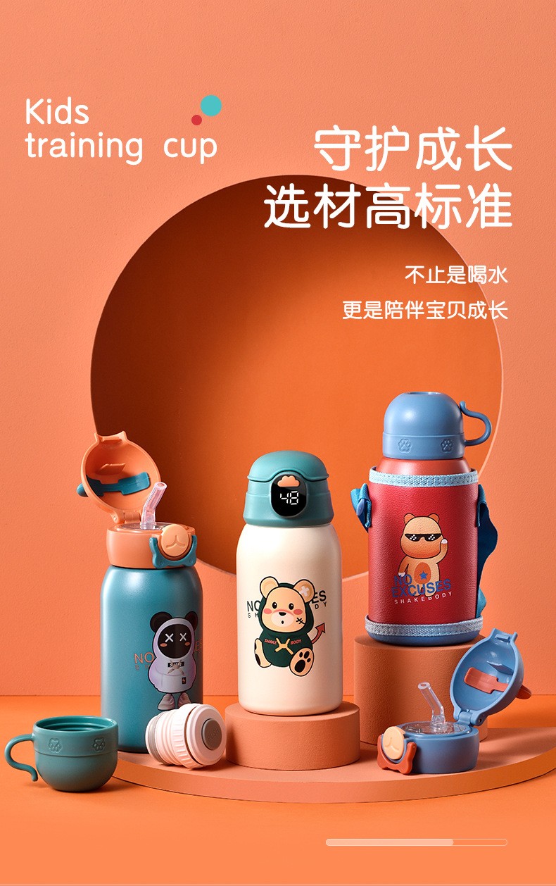 儿童智能保温杯带吸管食品级316小学生男斜挎水杯幼儿园