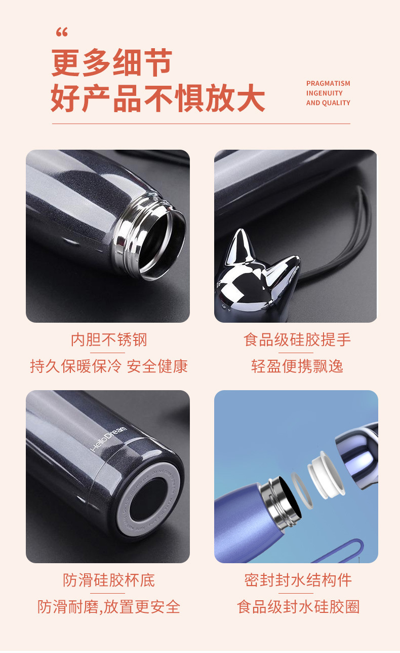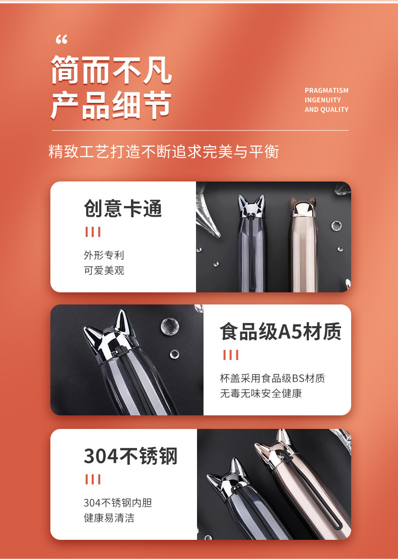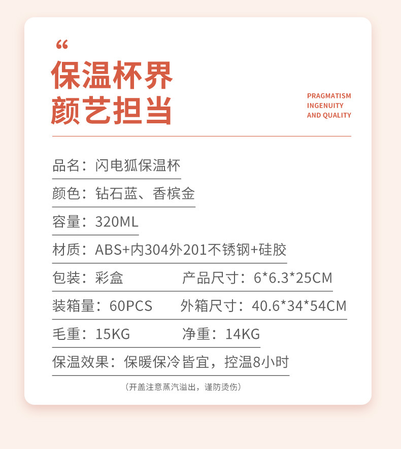 闪电狐304不锈钢真空保温杯320ml迷你时尚男女学生情侣水杯