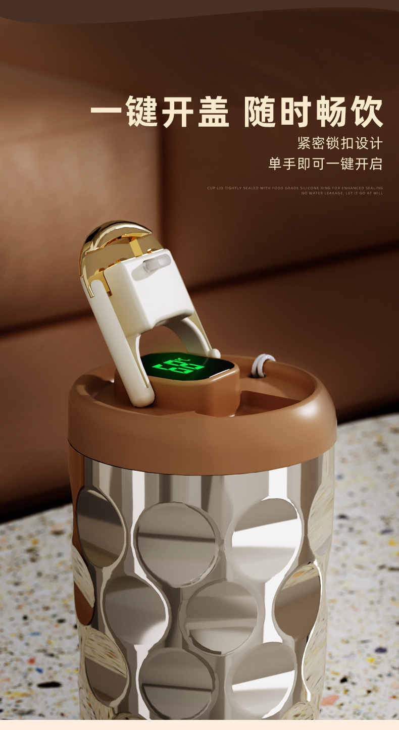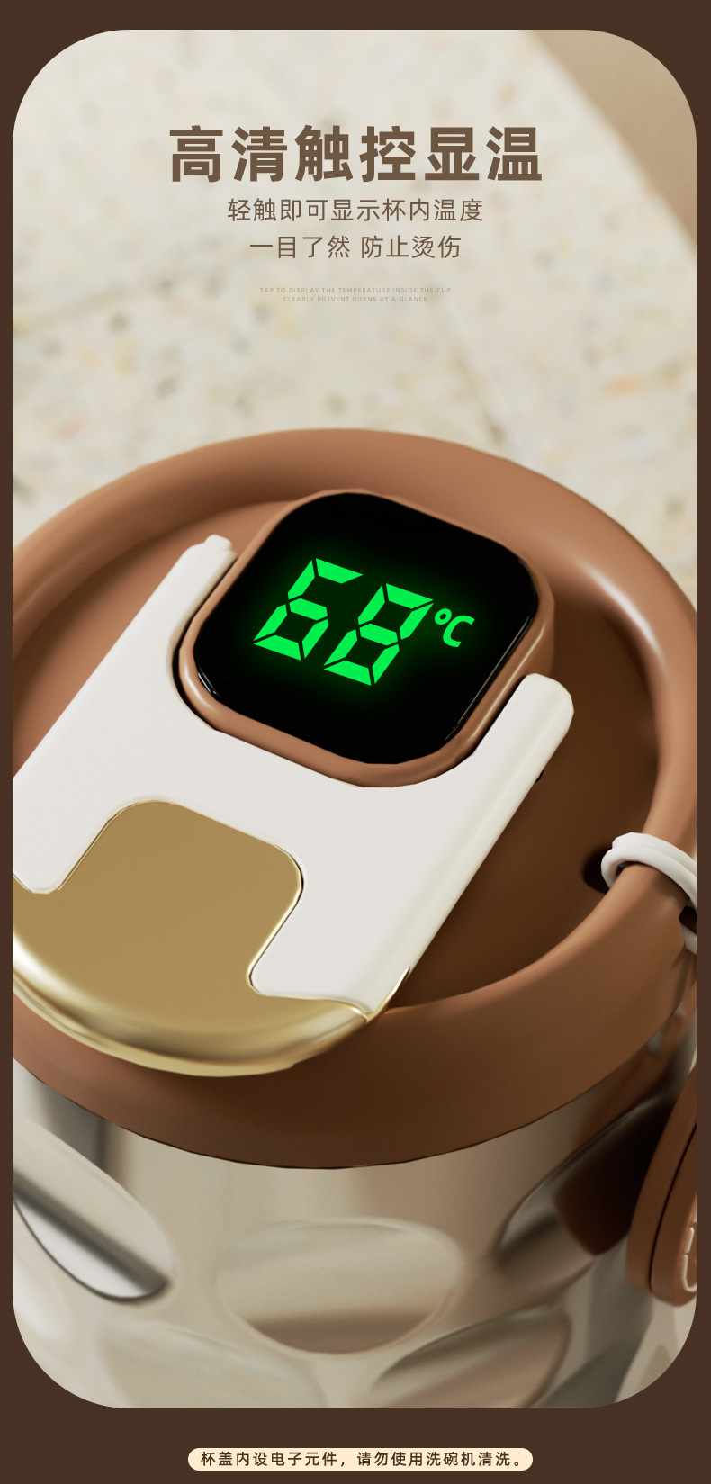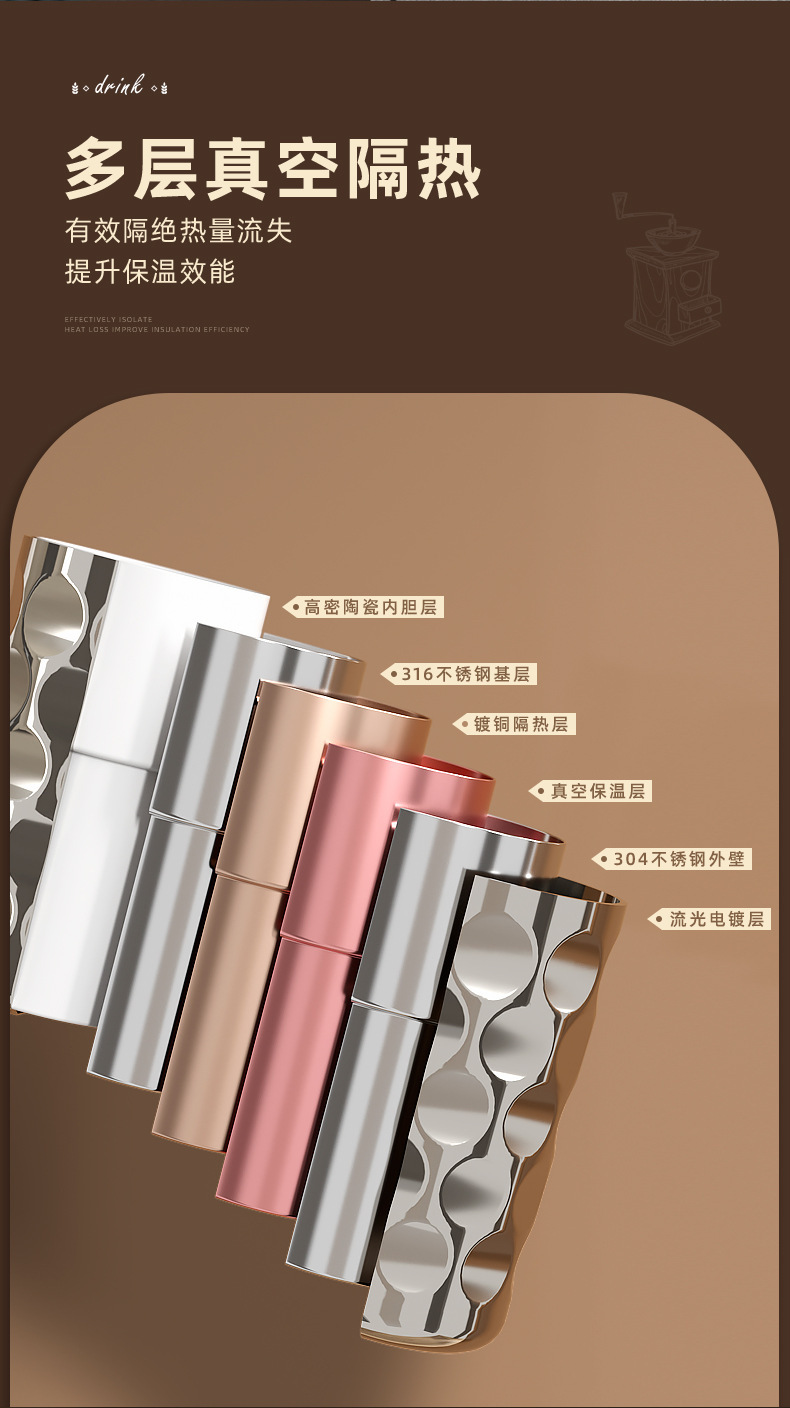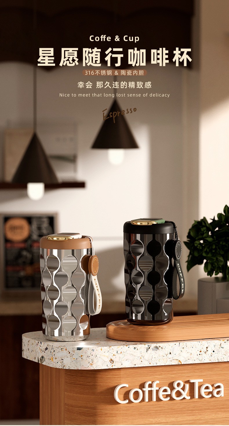 菱形保温咖啡杯陶瓷内胆不锈钢温保温杯随行杯高颜值智能测温