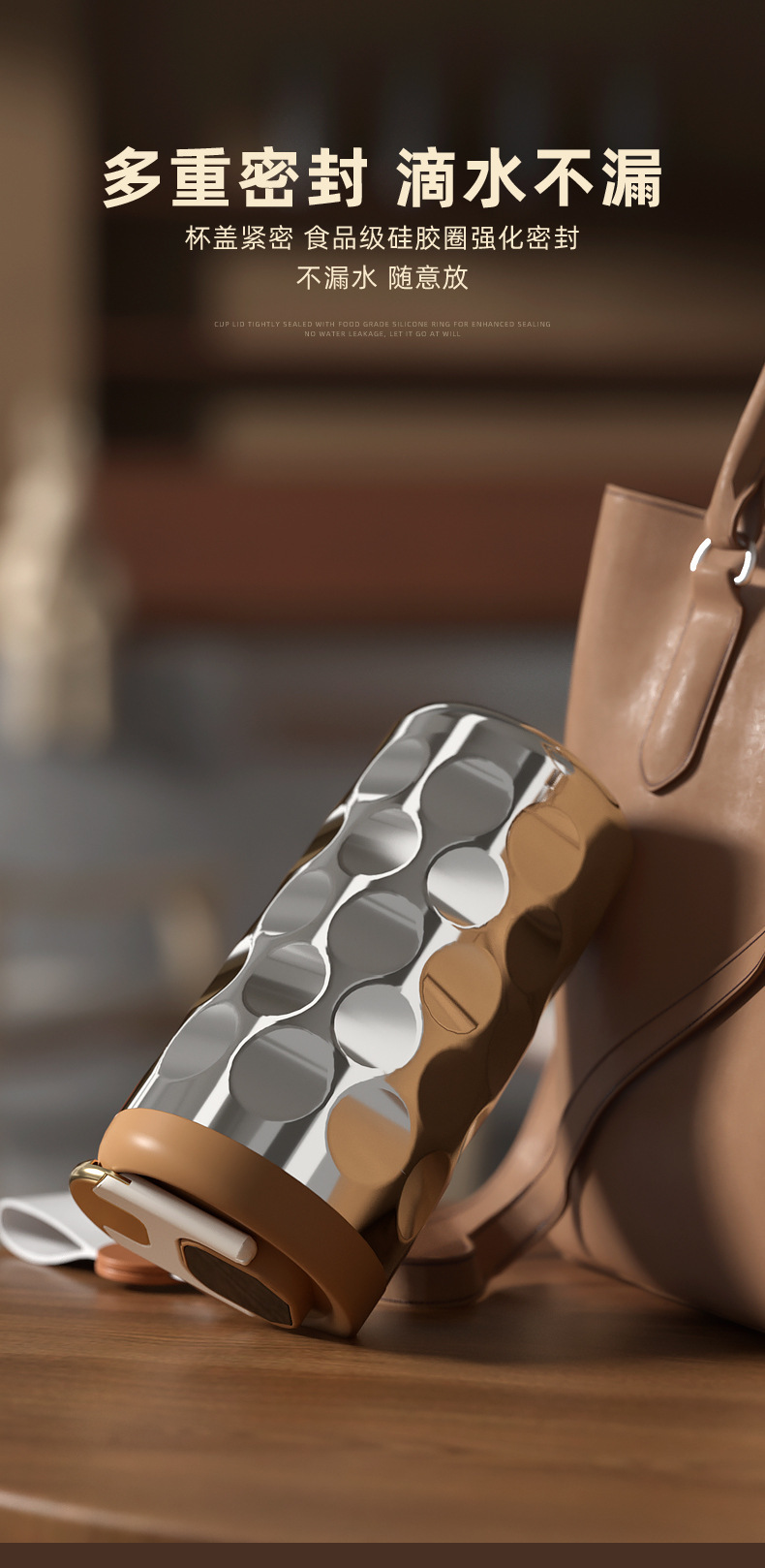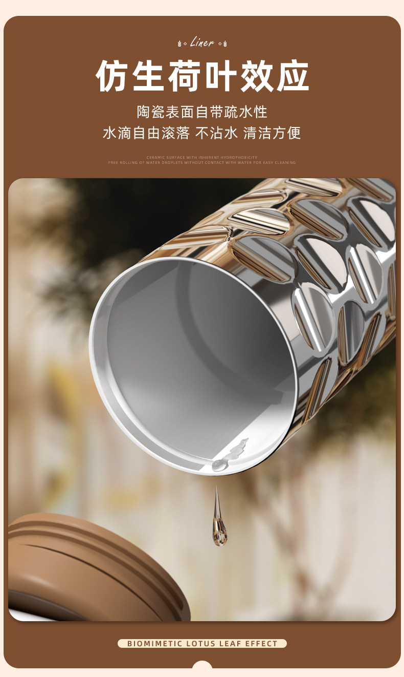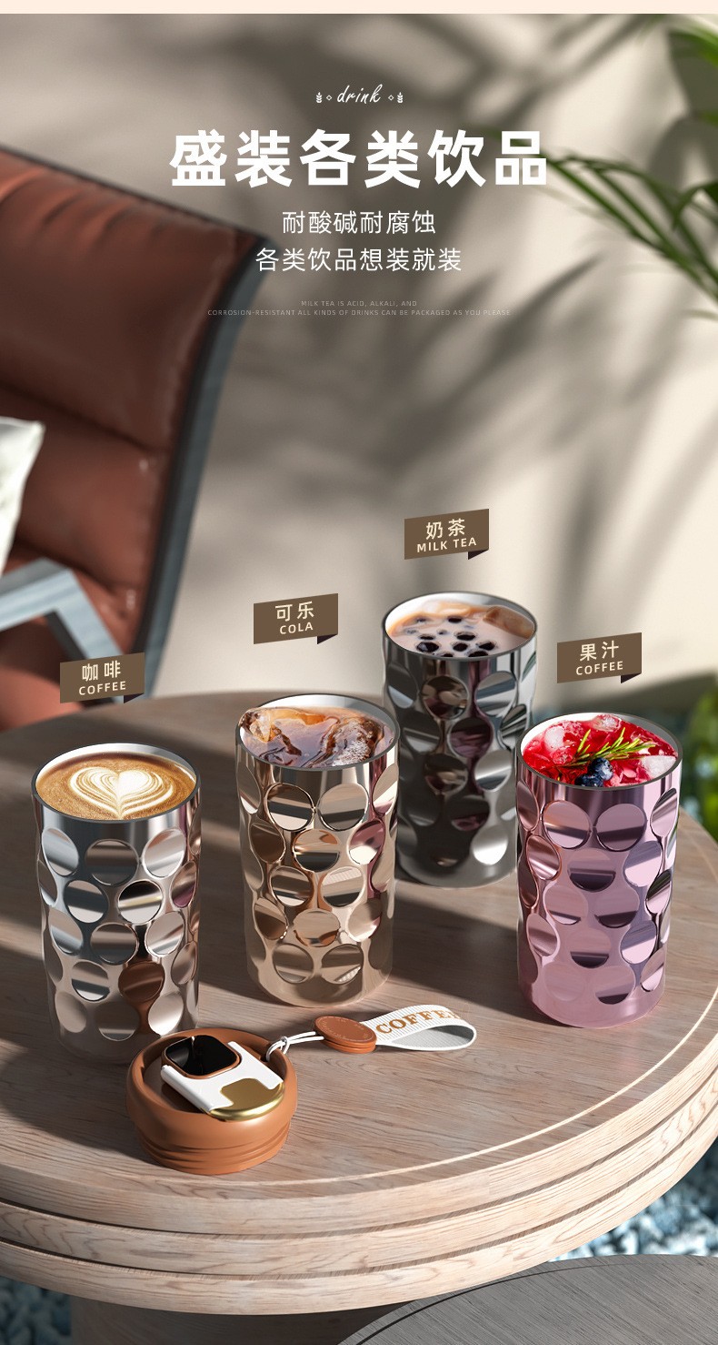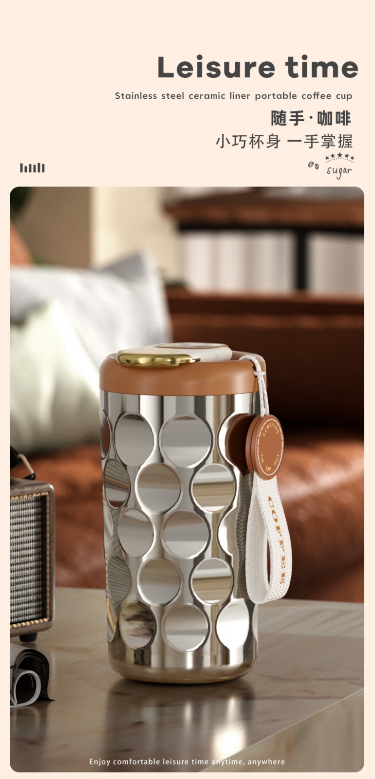 菱形保温咖啡杯陶瓷内胆不锈钢温保温杯随行杯高颜值智能测温