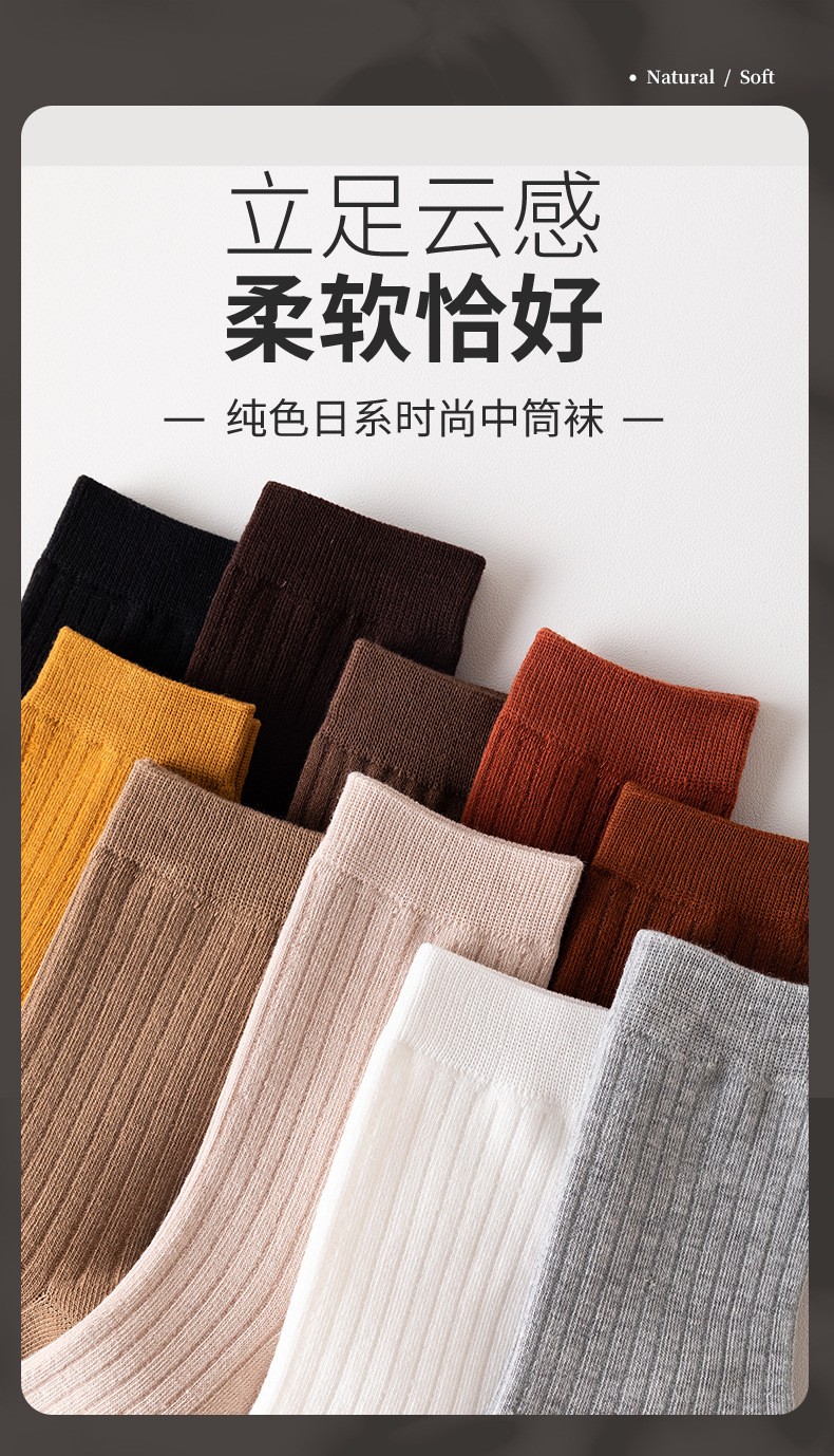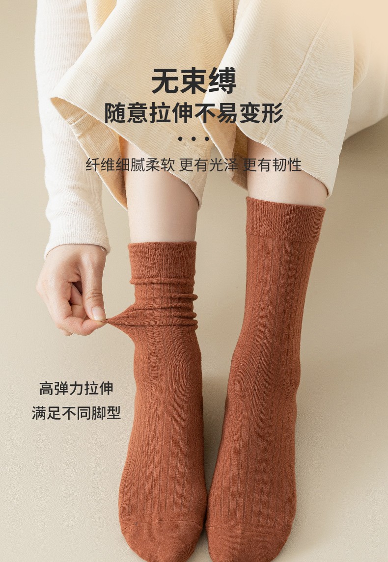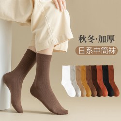 袜子女秋冬纯色堆堆中筒袜 韩版日系女袜棉质透气吸汗ins长袜