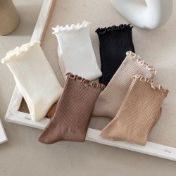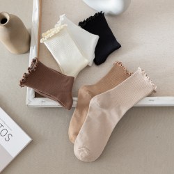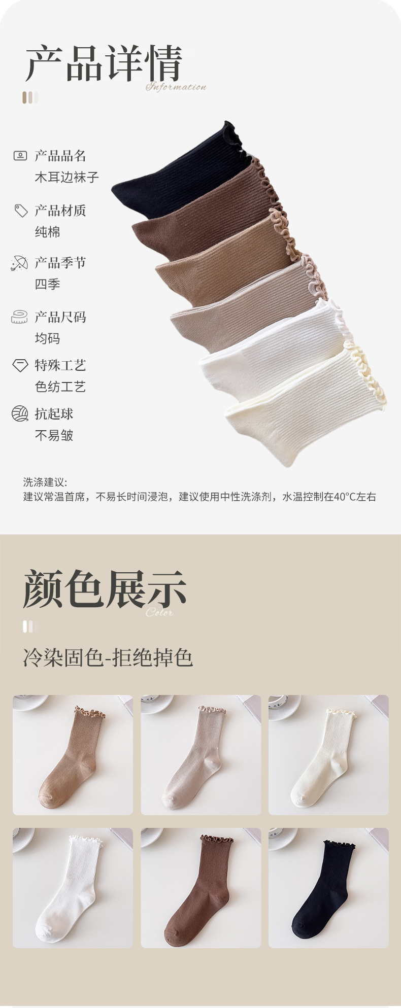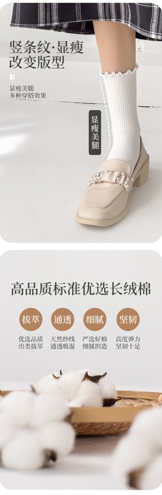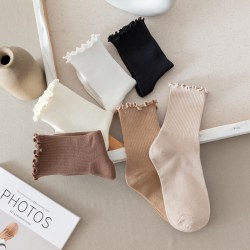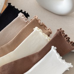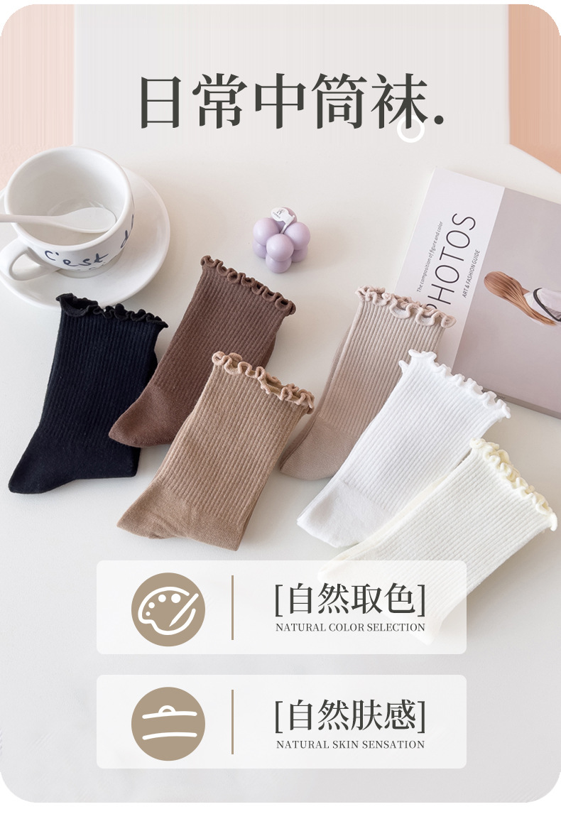 秋冬木耳边袜子女白色纯色中筒袜潮花边百搭棉袜堆堆袜诸暨日系风