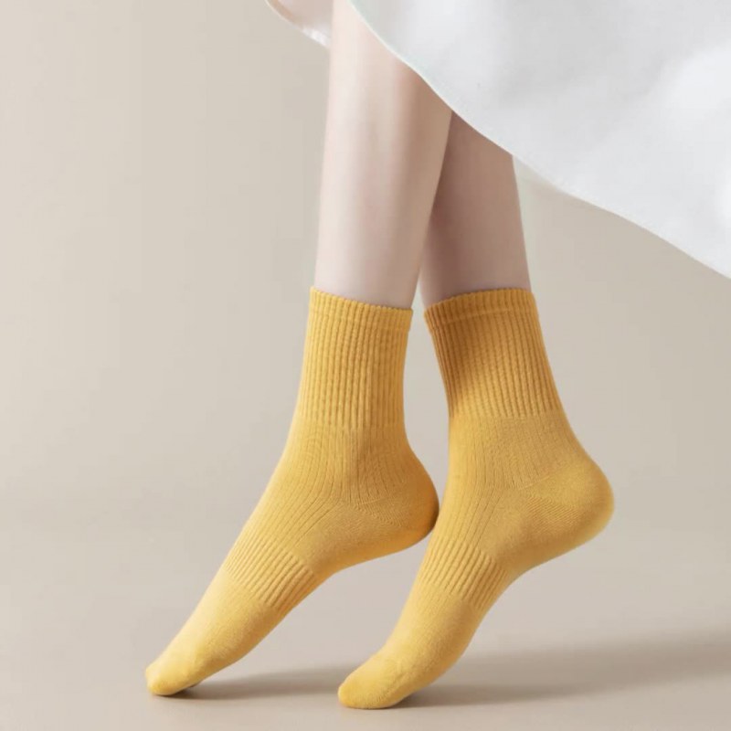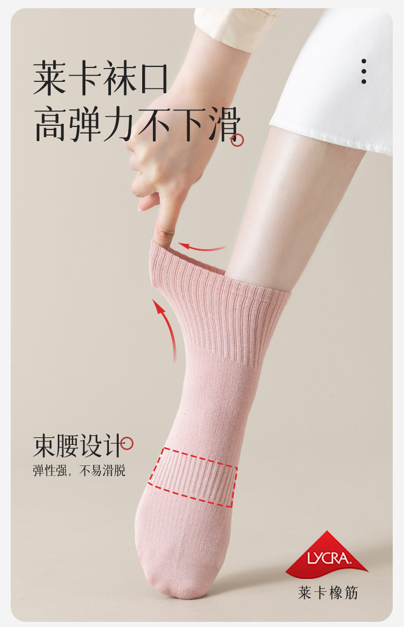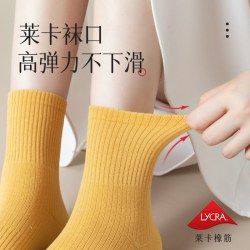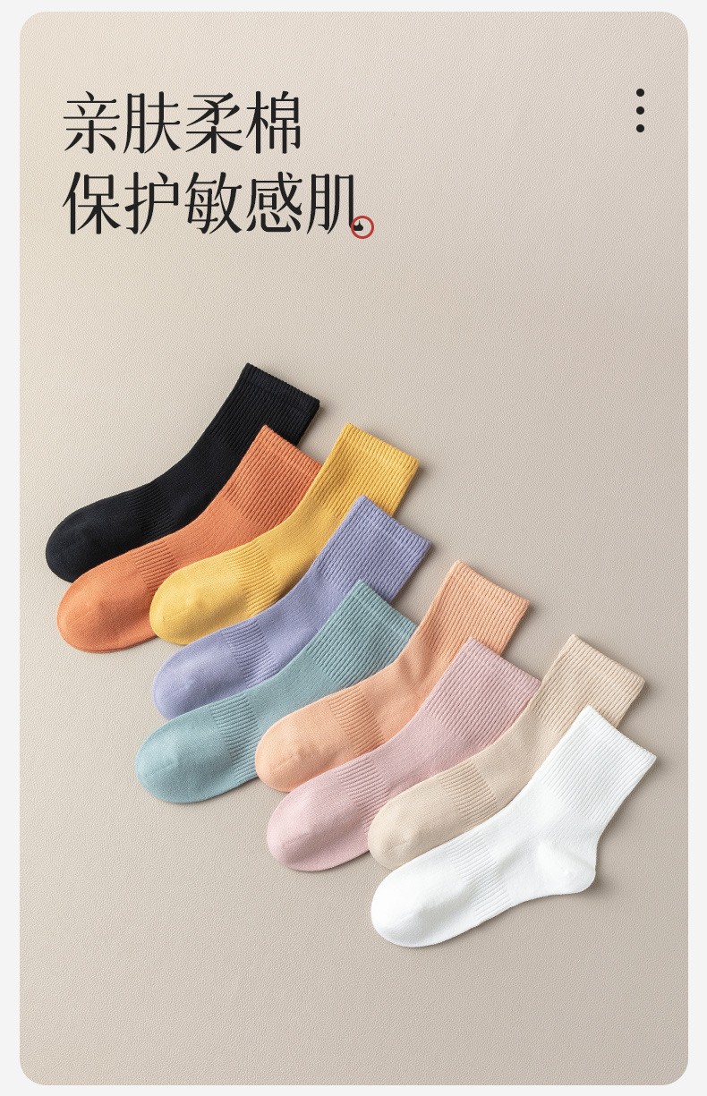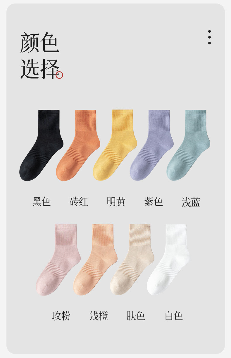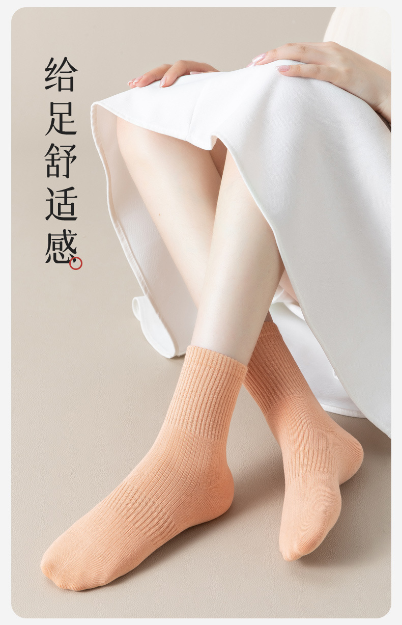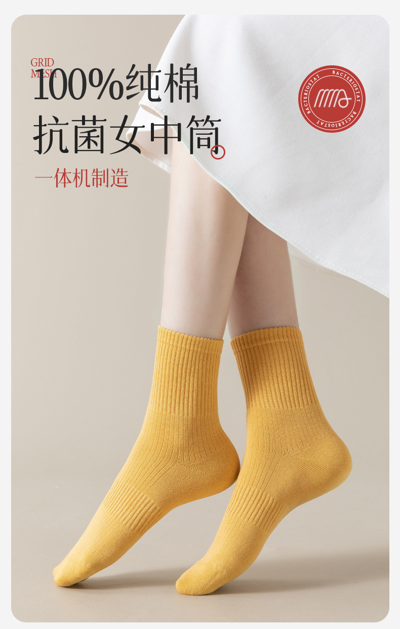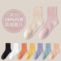 秋冬袜子纯棉女生中筒袜无骨纯色百搭长袜抗菌防臭春秋款全棉女袜