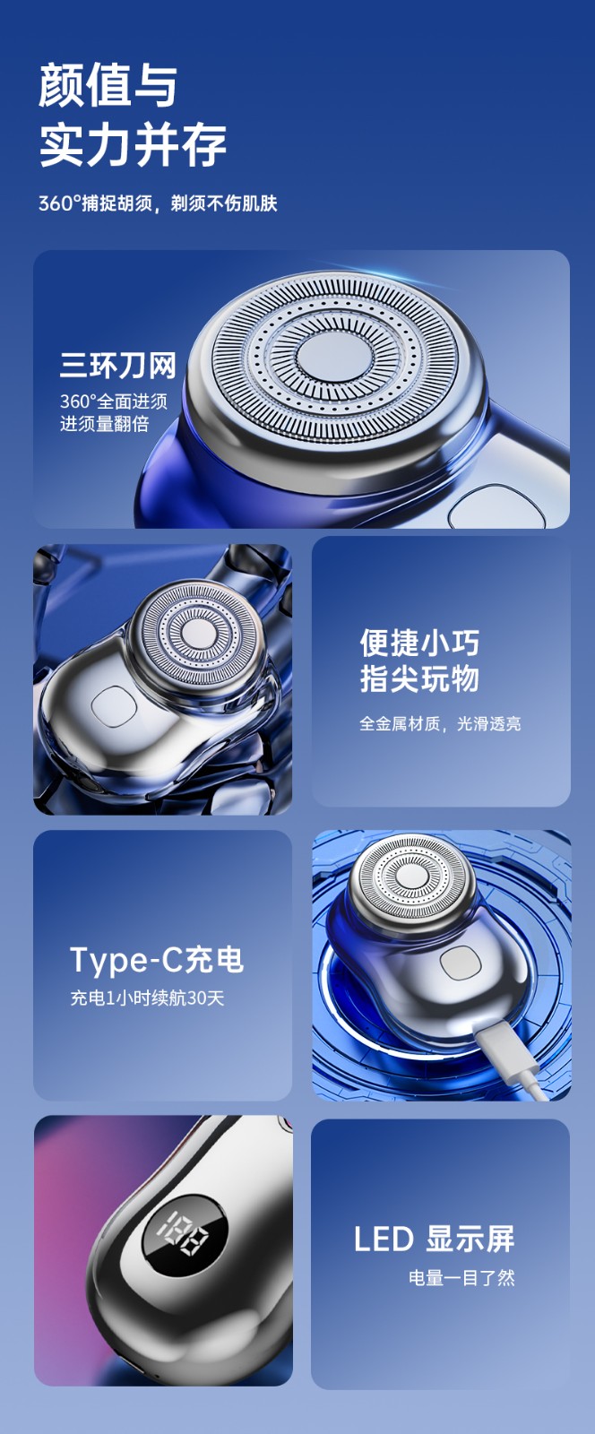 新款剃须刀mini便携剃须刀大刀迷你电动刮胡刀type-c快充30天待机