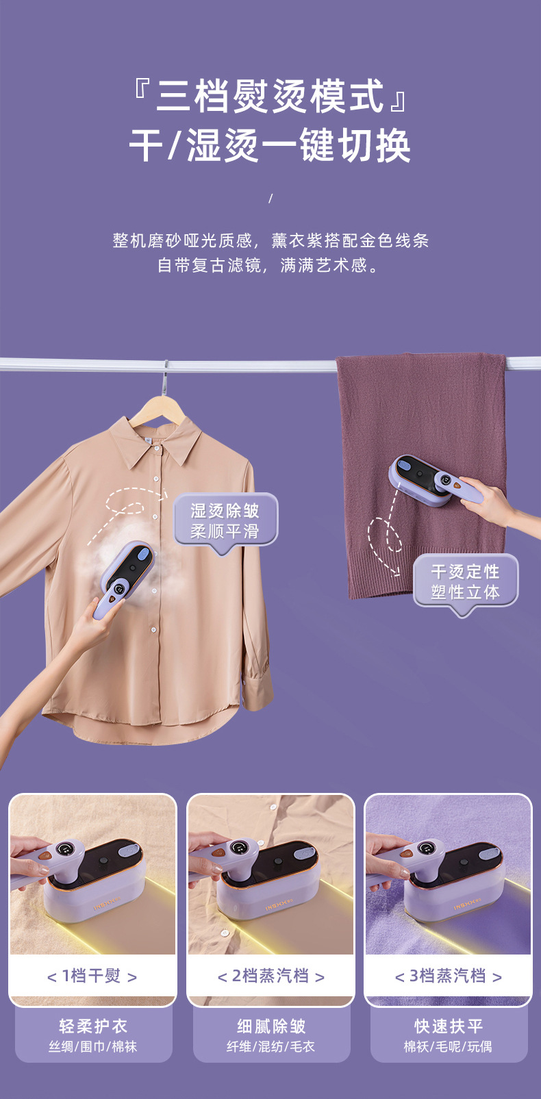 INSXX手持挂烫机家用庭小型宿舍便携式蒸汽电熨斗除皱神器