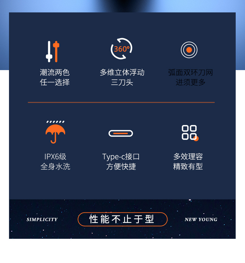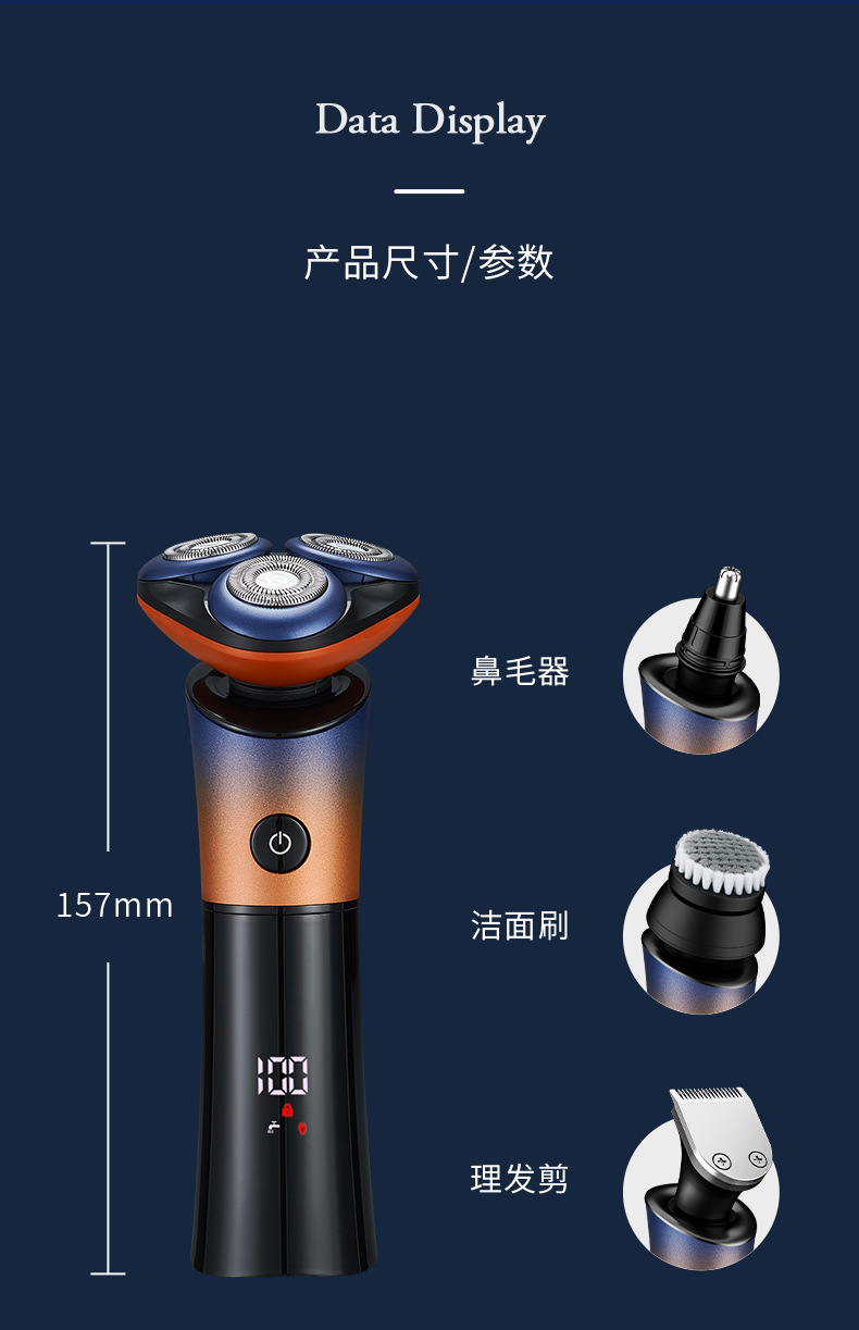 新款三刀头剃须刀男士电动刮胡刀剃胡子刀全身水洗胡须刀