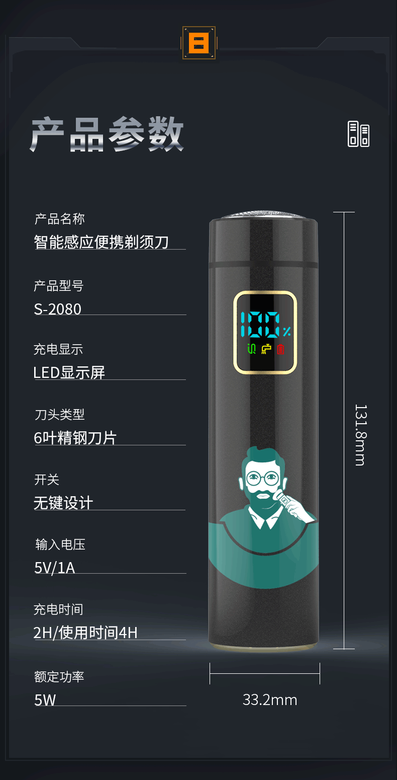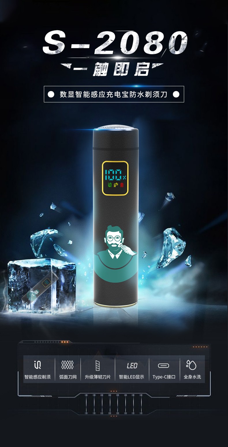 智能感应便携式单头剃须刀电动应急快充多功能防水刮胡刀男士