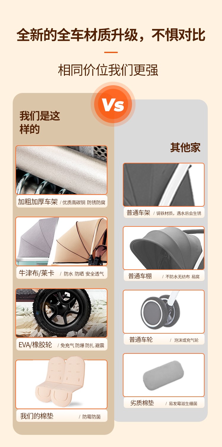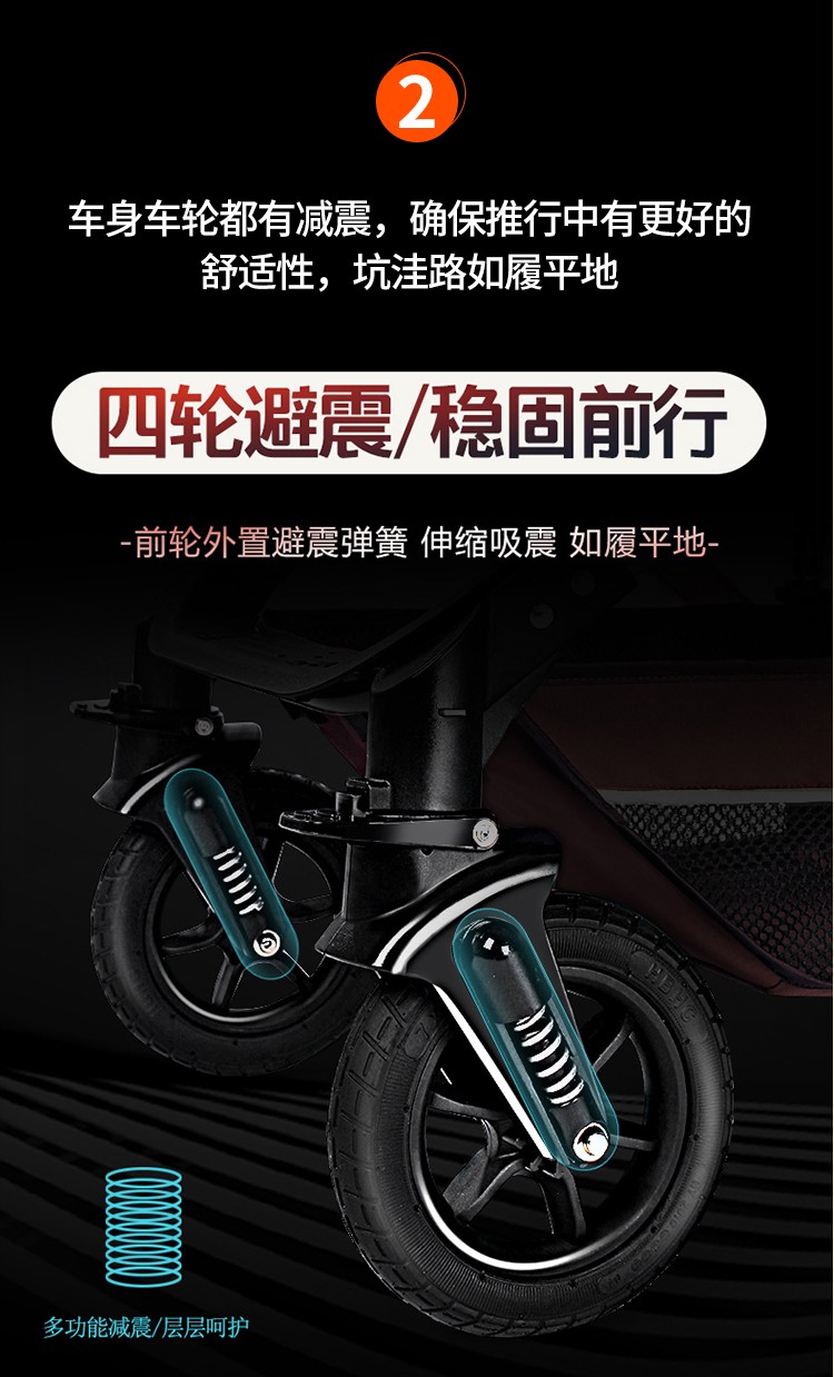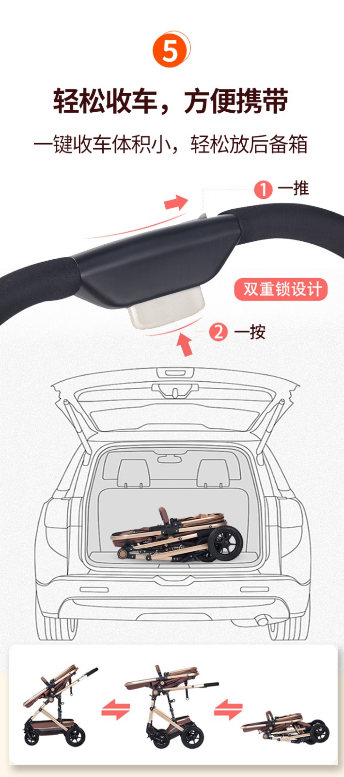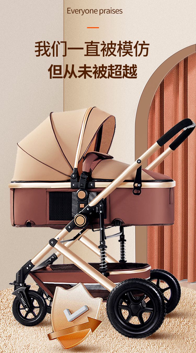 婴儿车可坐躺高景观双向推行婴儿手推车避震轻便多功能遛娃神器