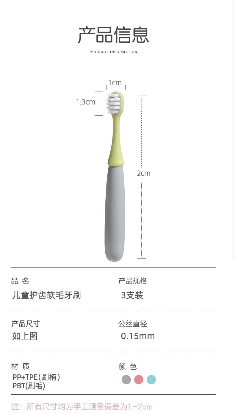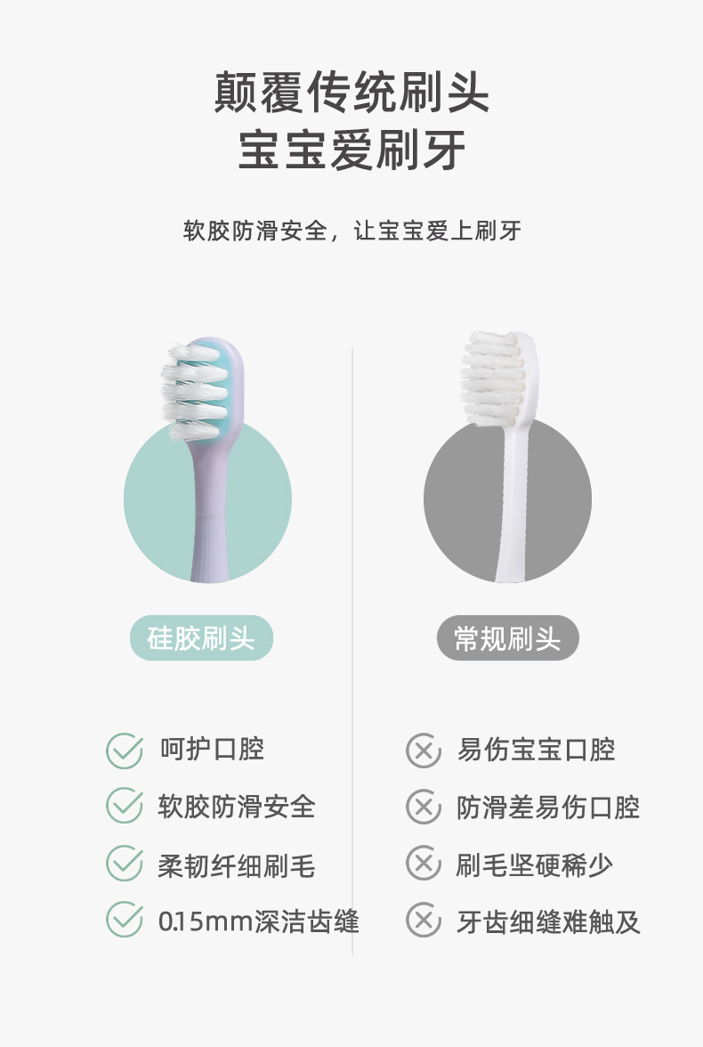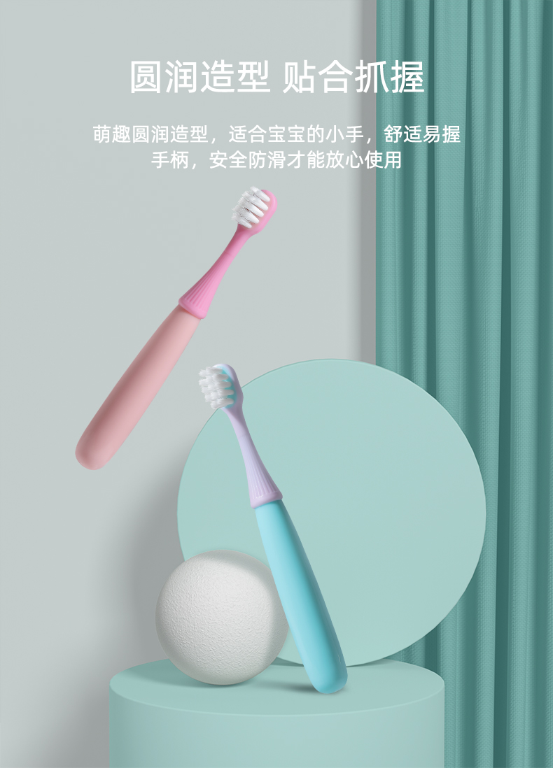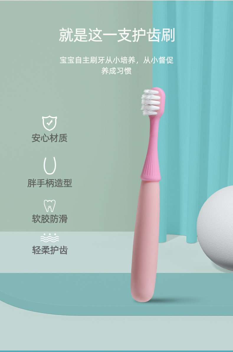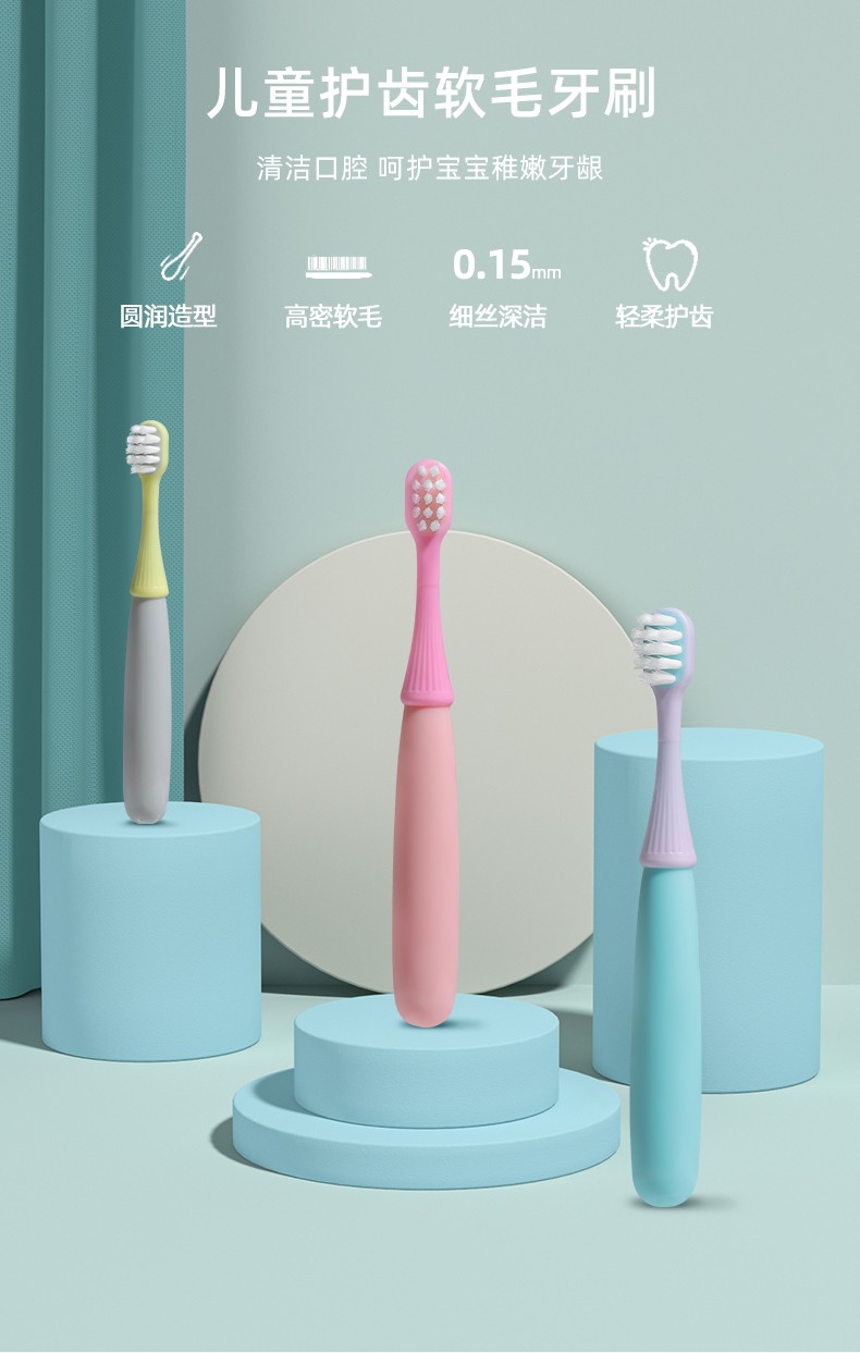 晨医生儿童牙刷2-5岁 卡通小蘑菇硅胶刷头婴幼儿软毛牙刷