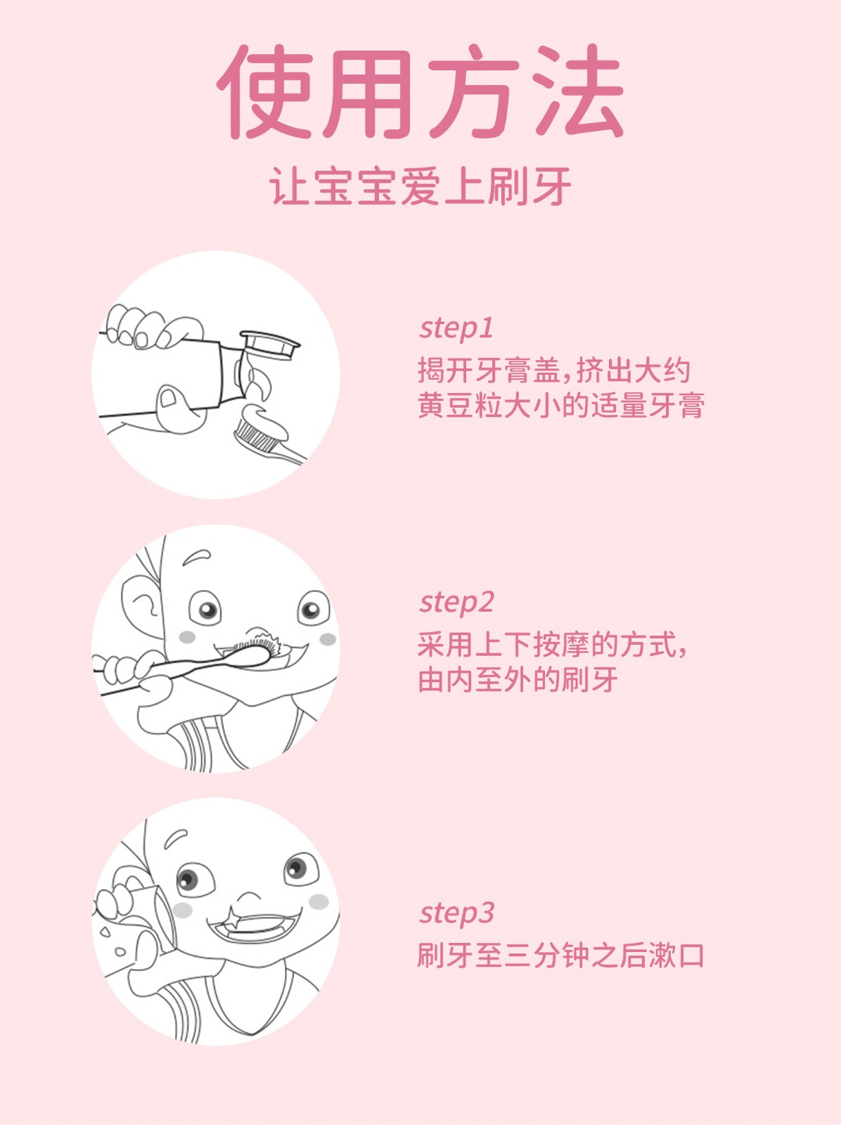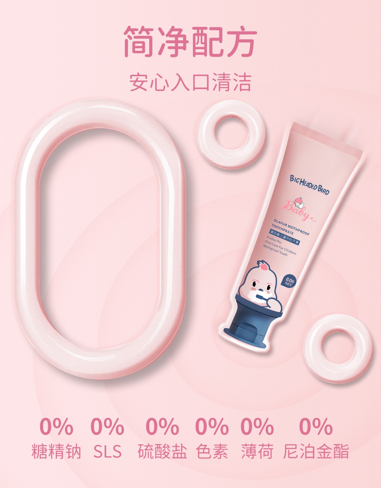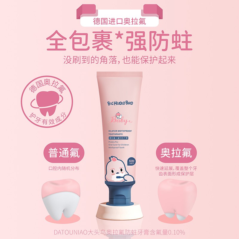 大头鸟婴幼儿奥拉氟儿童牙膏清洁健齿蜜桃味中大童牙膏正品