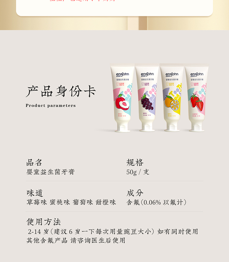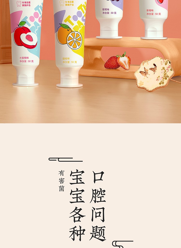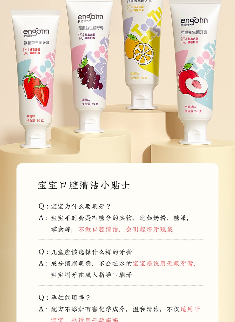 厂家直销工厂批发英格翰儿童益生菌奥拉氟防蛀牙膏50g
