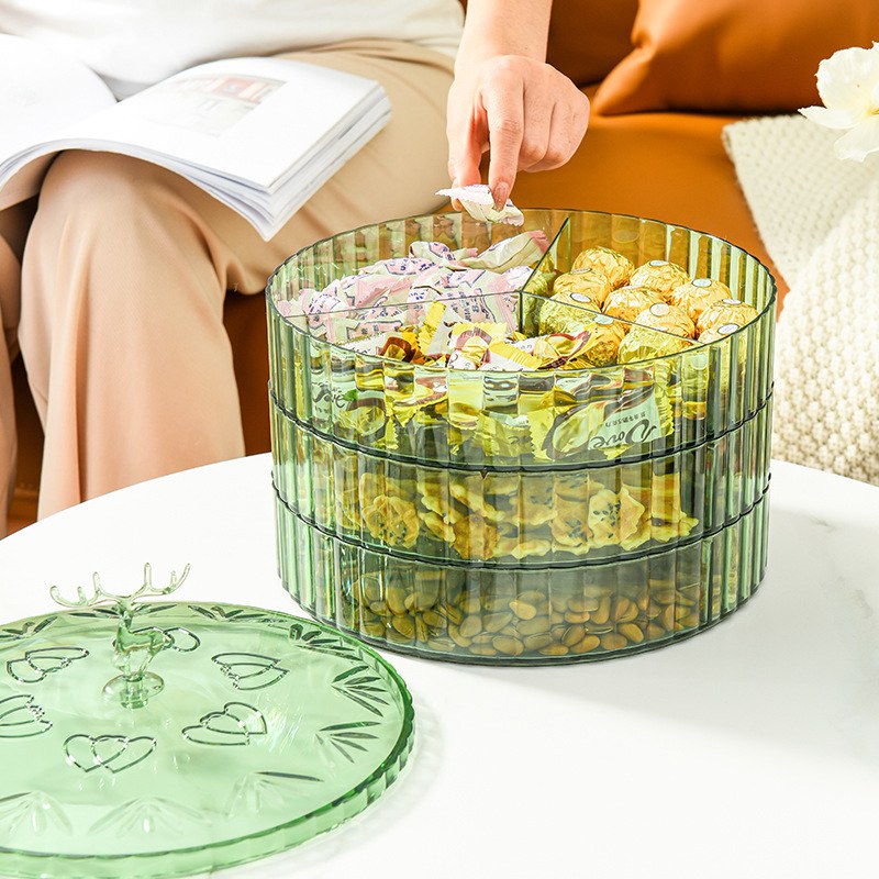 多层分格麋鹿果盘家用客厅茶几糖果盒带盖防尘干果盘客厅零食盒子