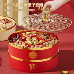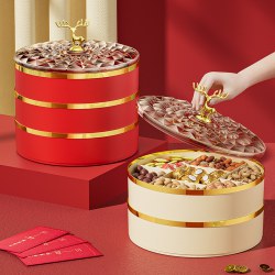 果盘新年糖果盘家用喜庆多层桌面糖果盒透明干果盒大容量干果
