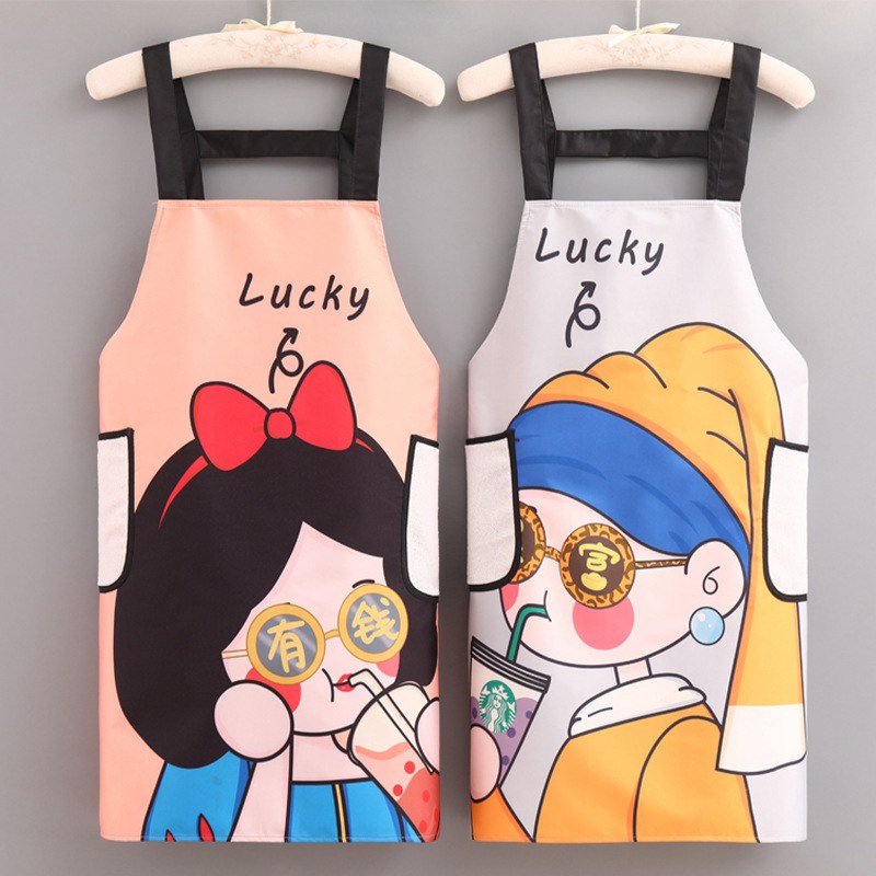 新款双背防水围裙搞笑富婆暴富擦手围裙厨房家用男女工作时尚围腰