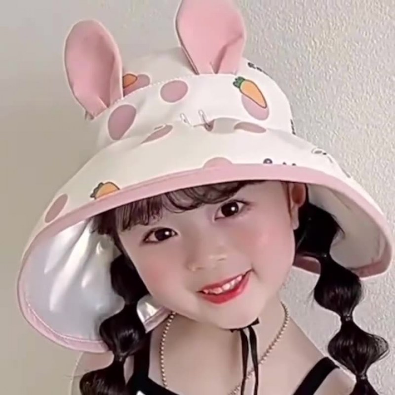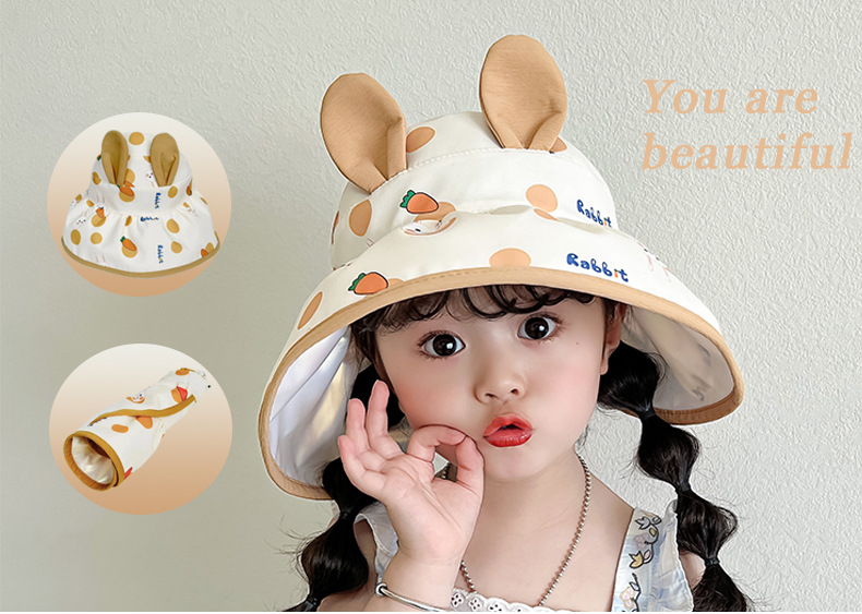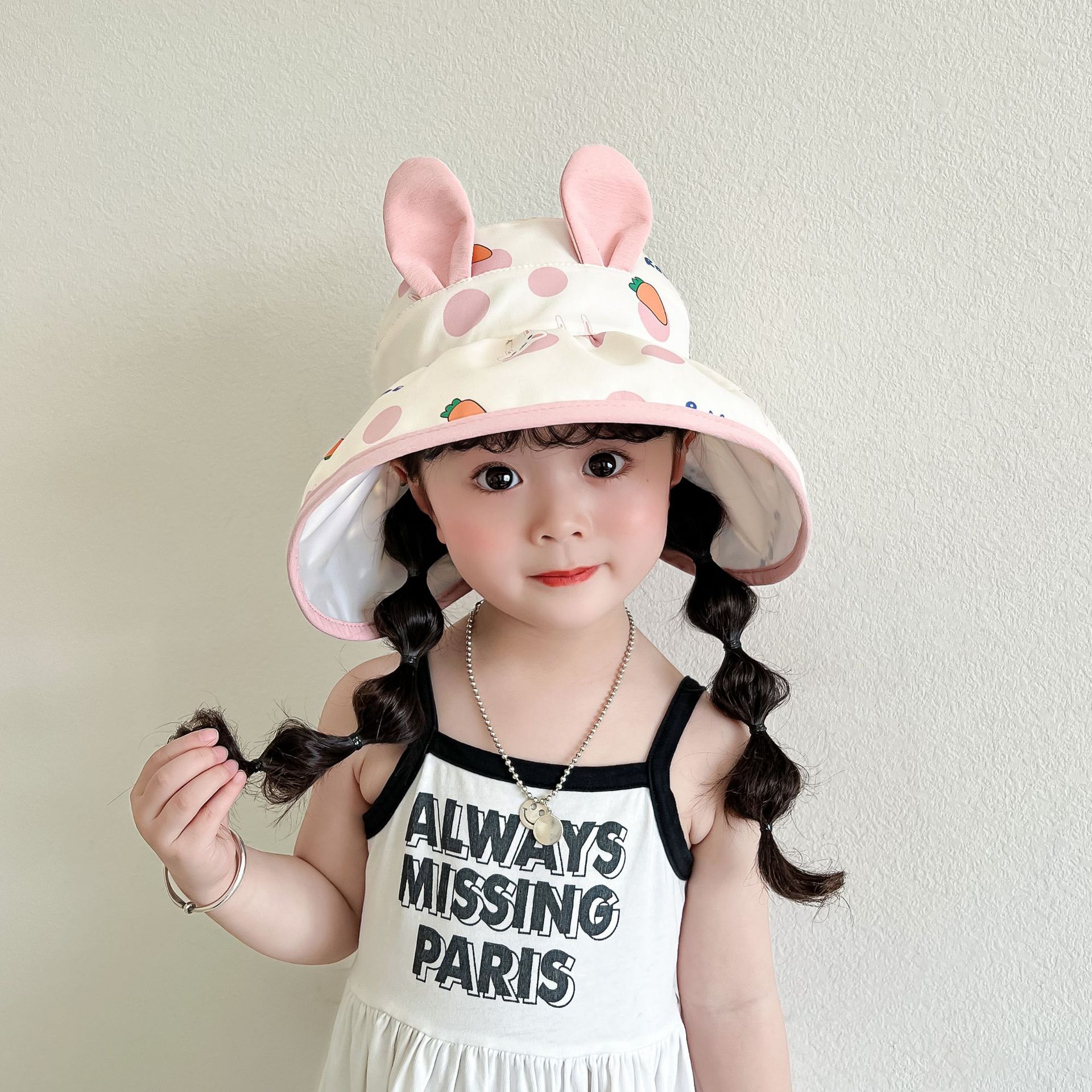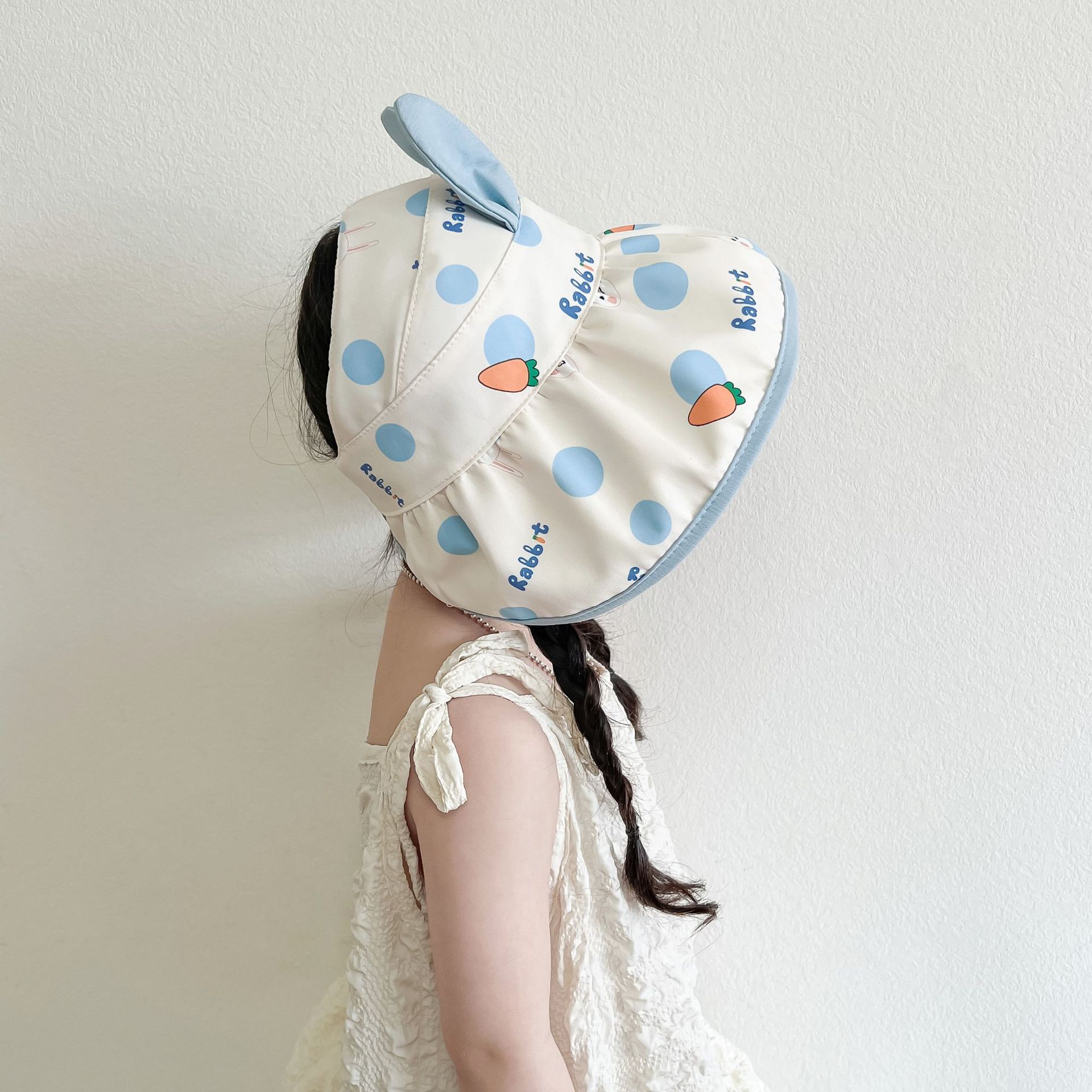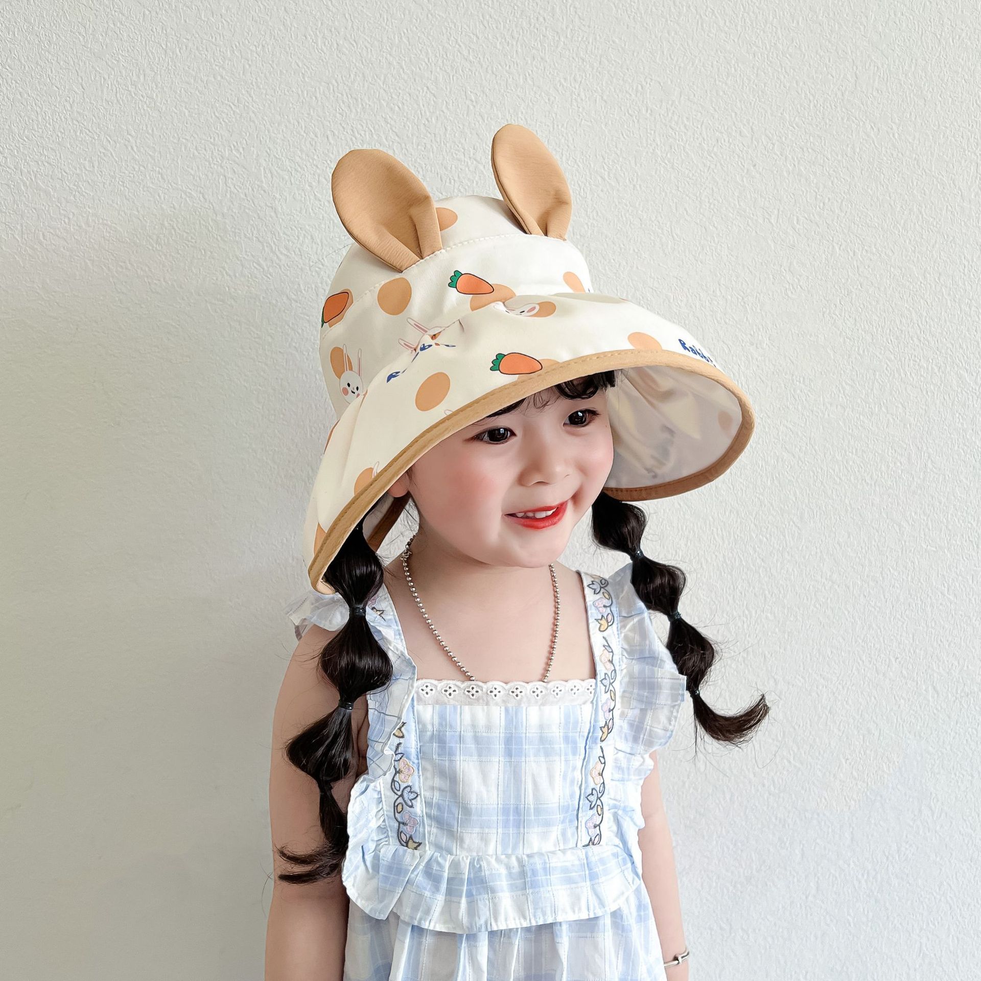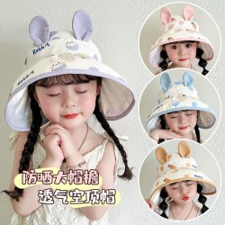夏季超萌可爱户外遮阳卡通空顶透气双层大檐小童便携防晒软渔夫帽