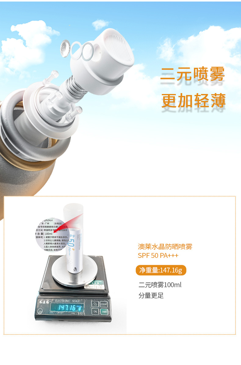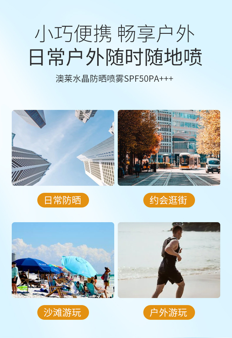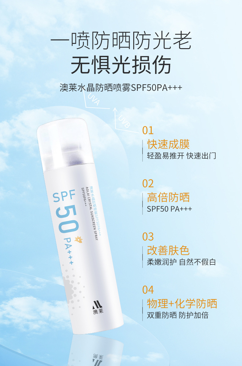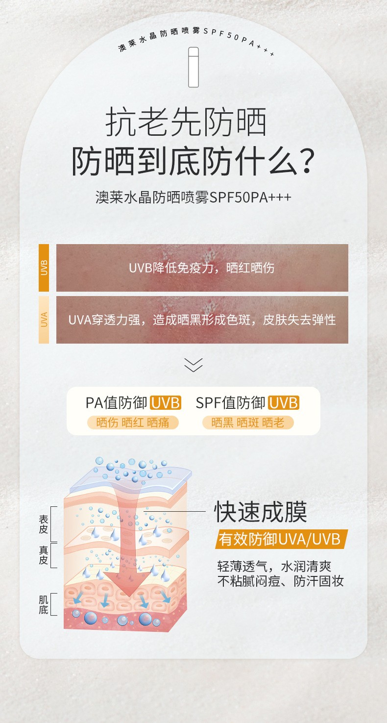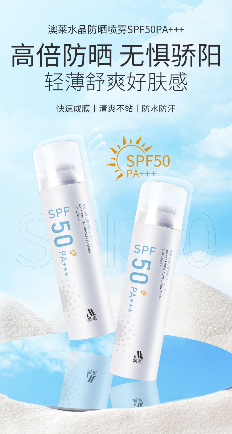 澳莱水晶防晒喷雾SPF50+++隔离高倍户外紫外线面部儿童防晒乳