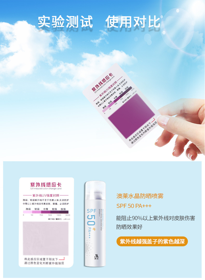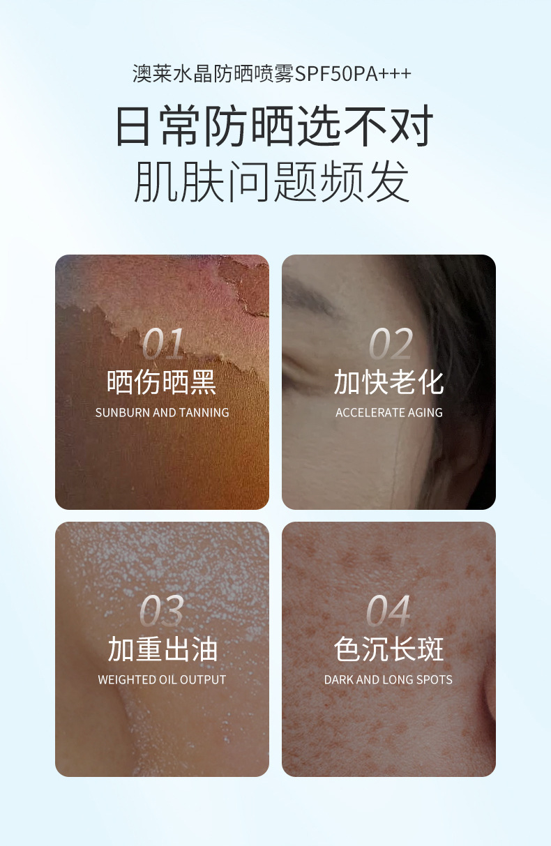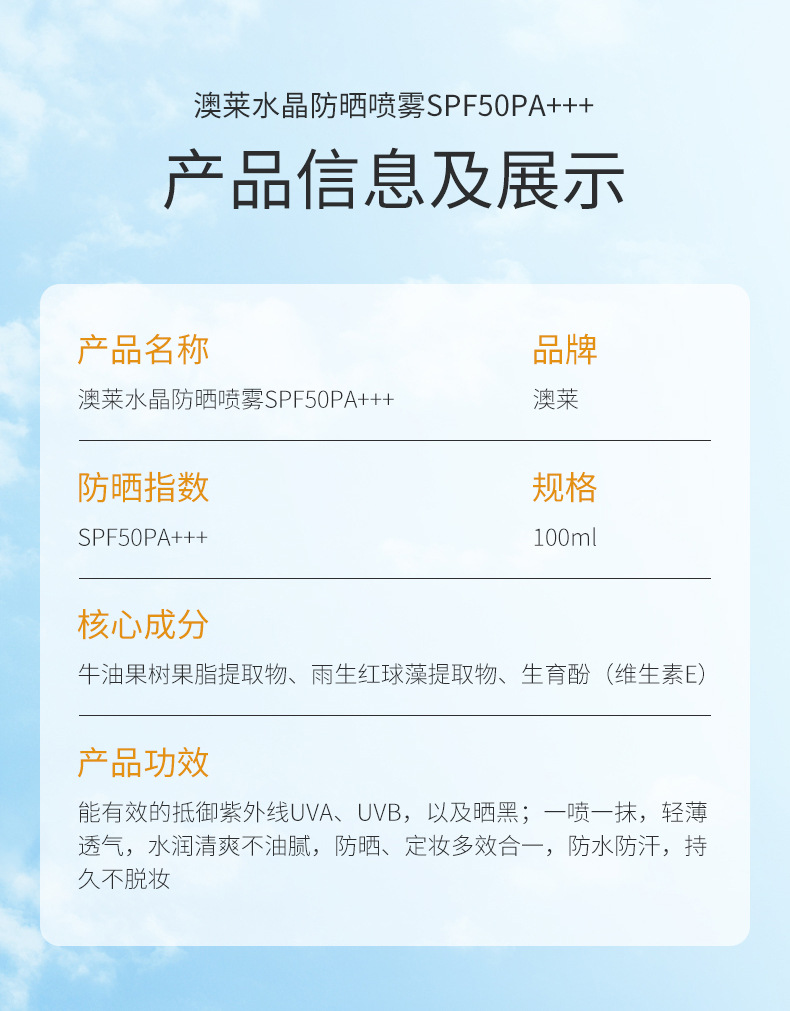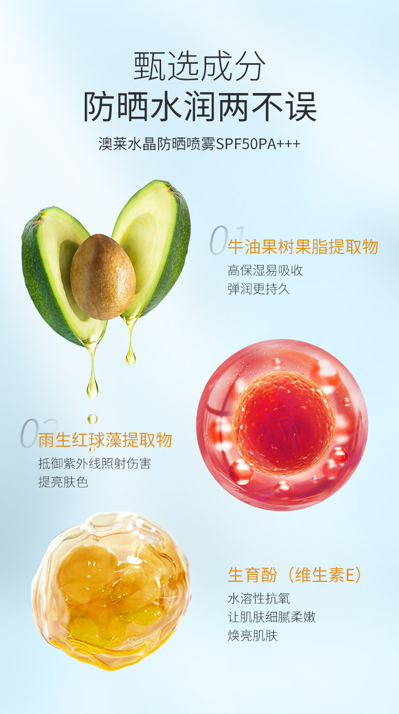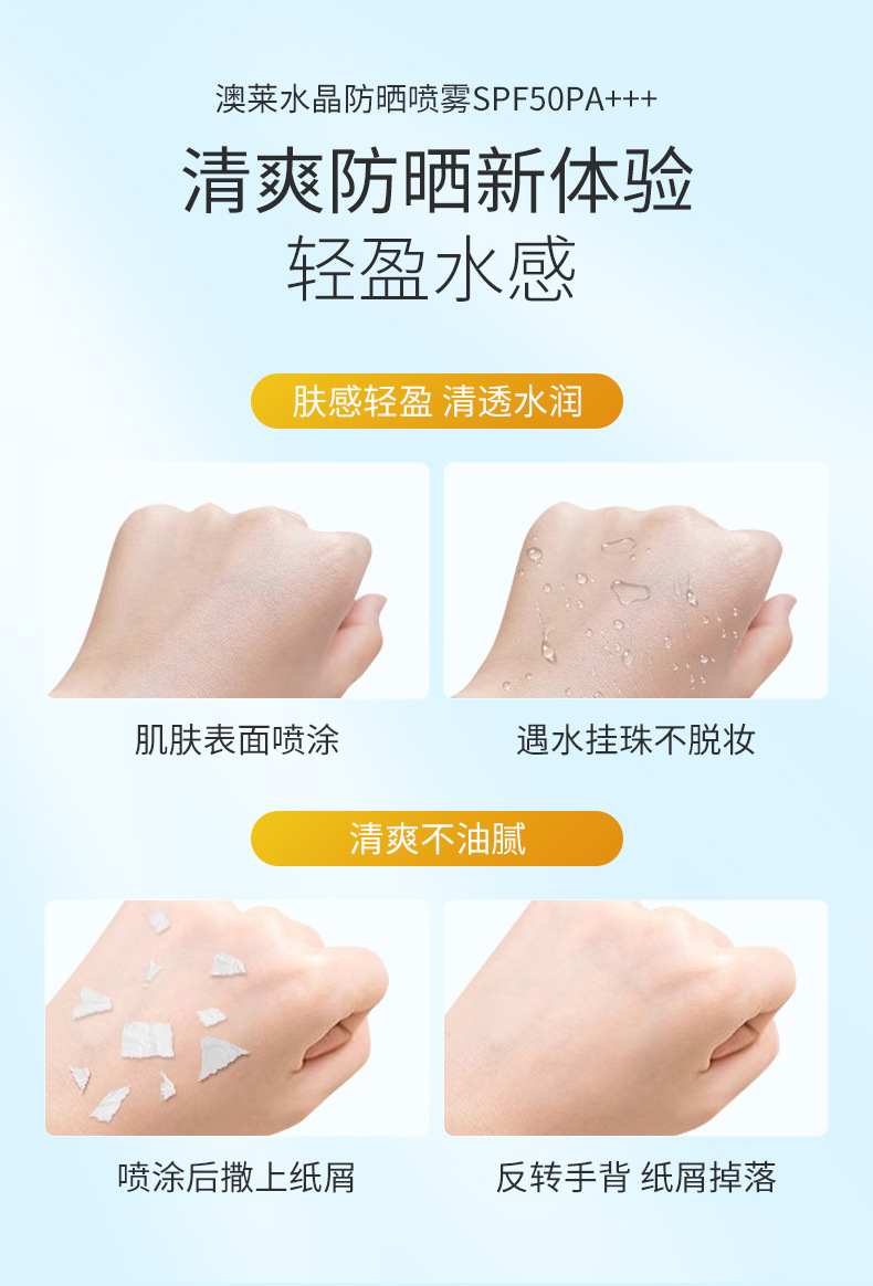 澳莱水晶防晒喷雾SPF50+++隔离高倍户外紫外线面部儿童防晒乳