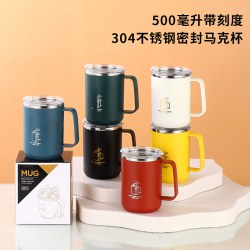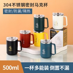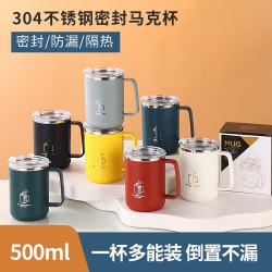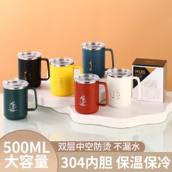 304不锈钢带盖水杯 双层隔热密封防漏办公室茶杯促销礼品学生口杯