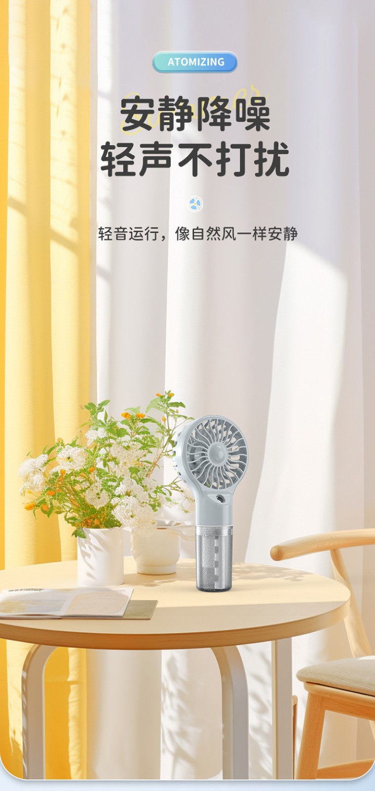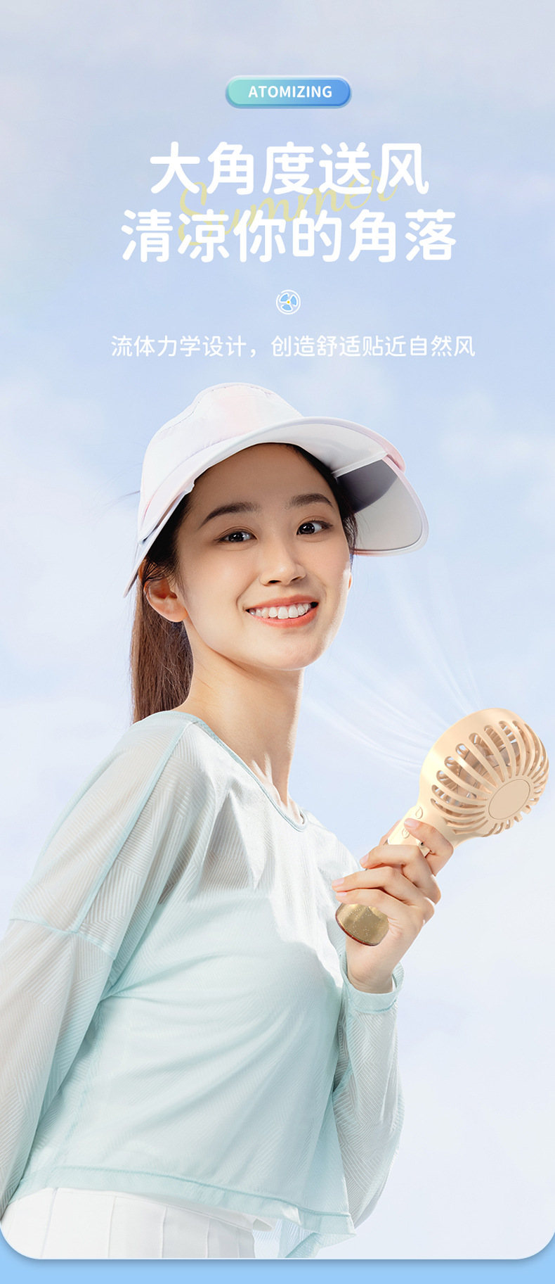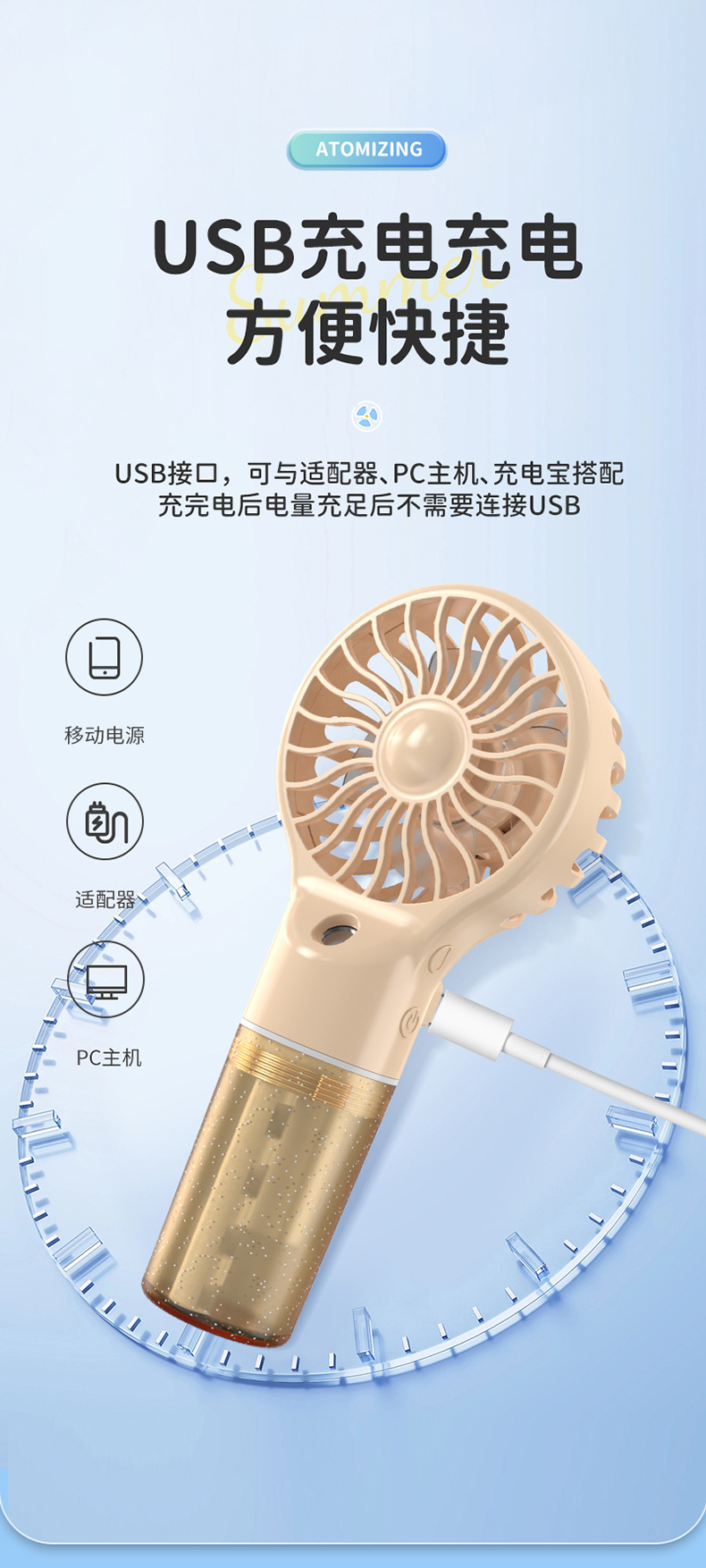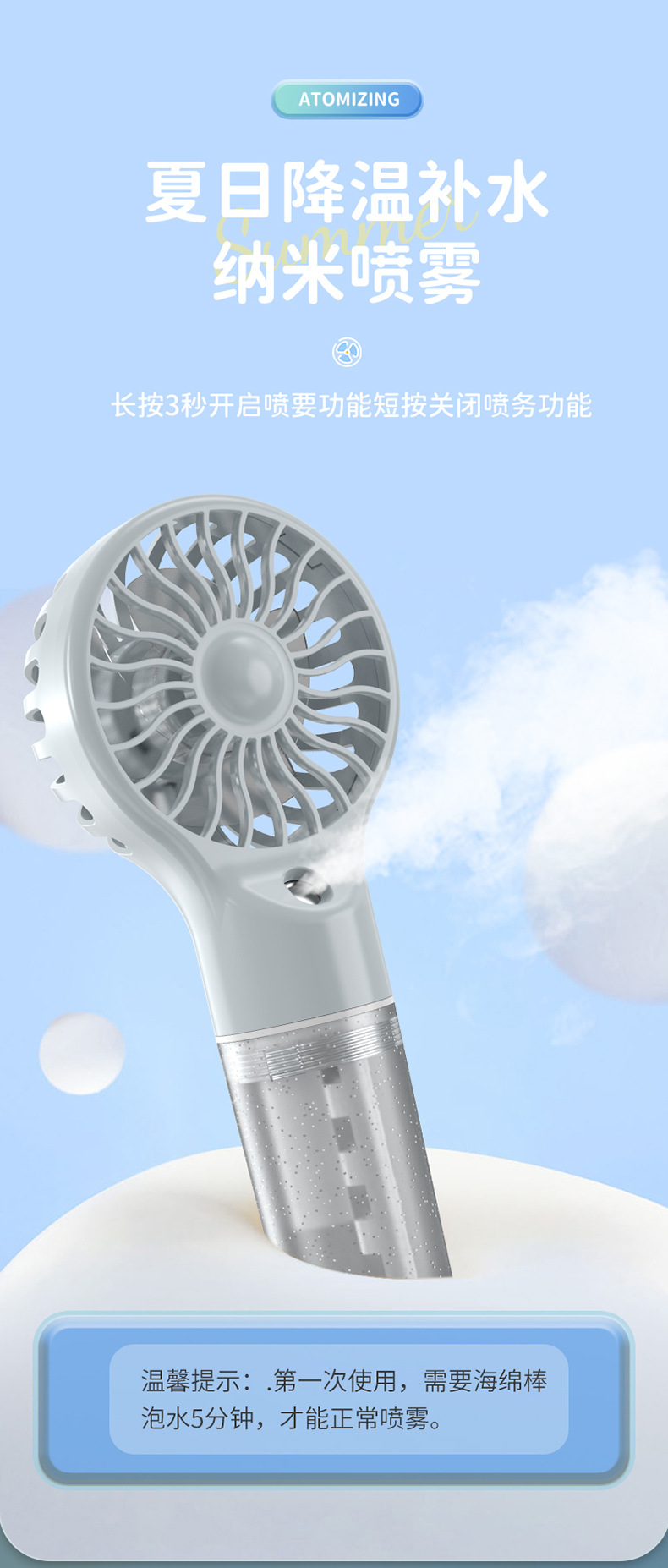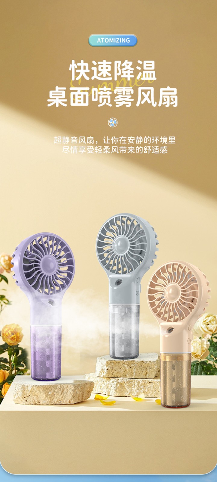 简约喷雾风扇便携式补水电风扇USB充电式手持喷雾小风扇
