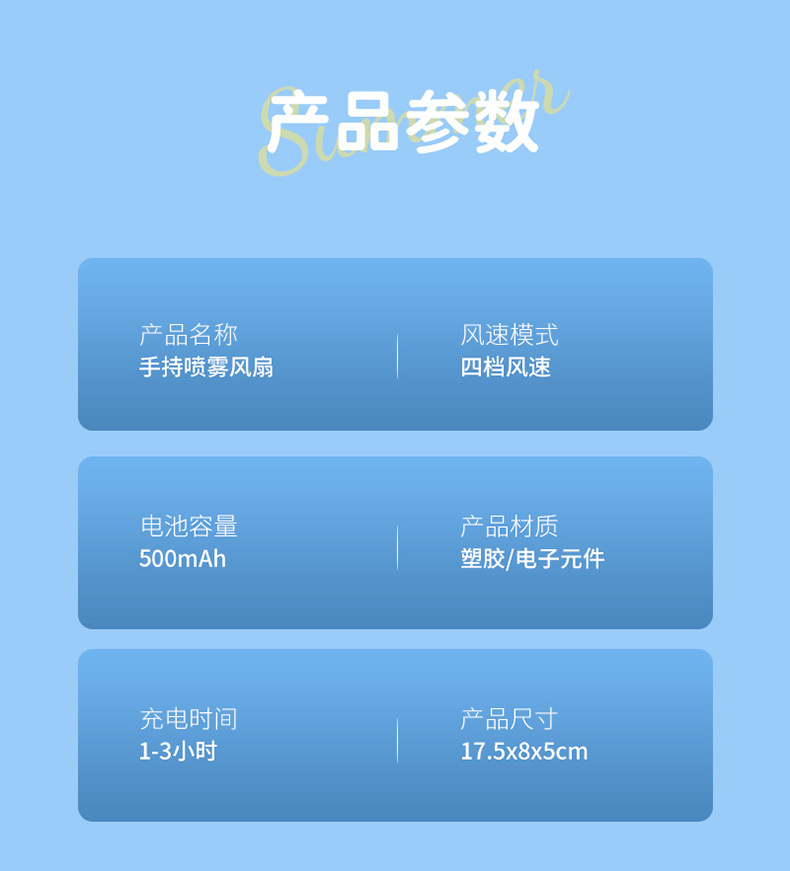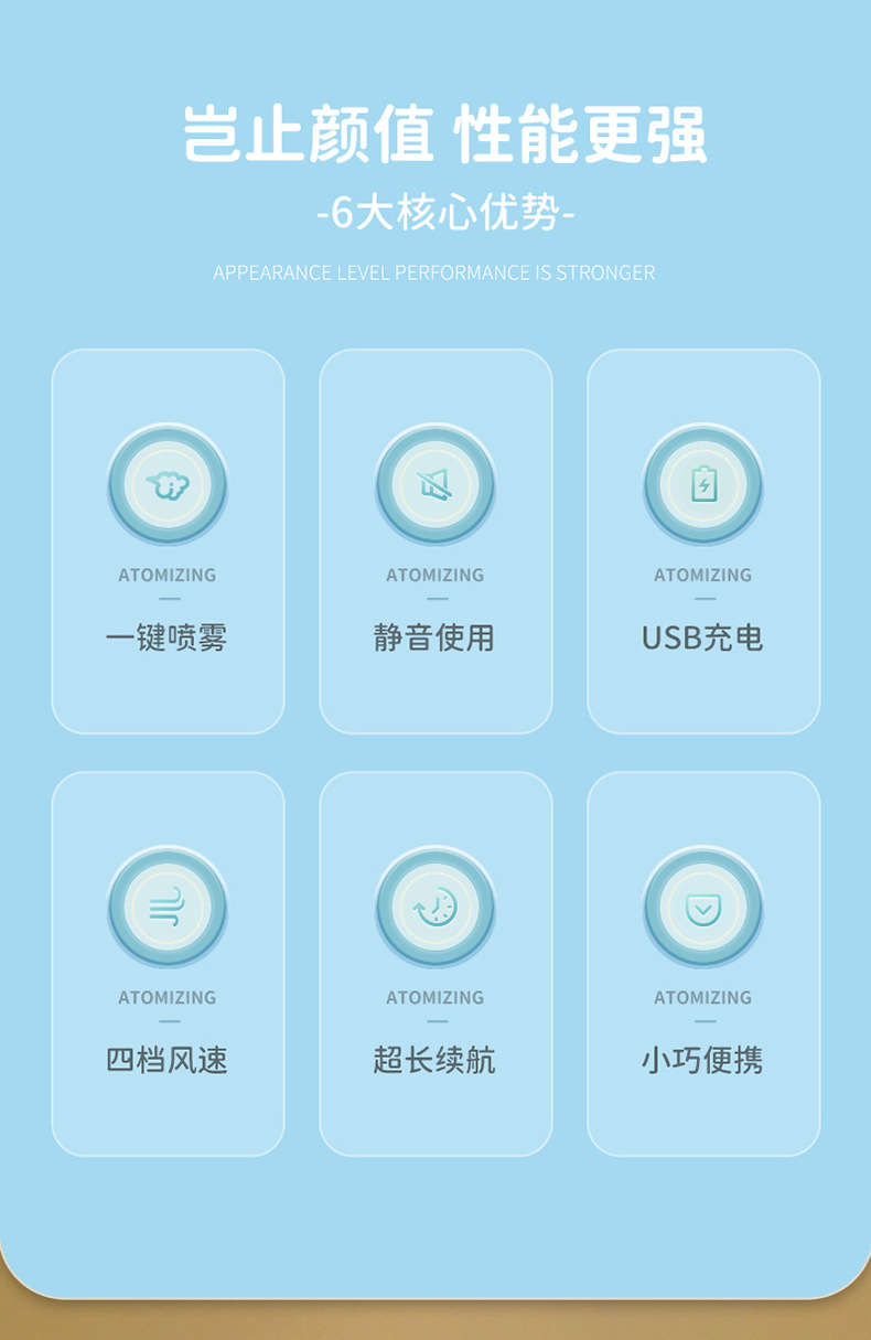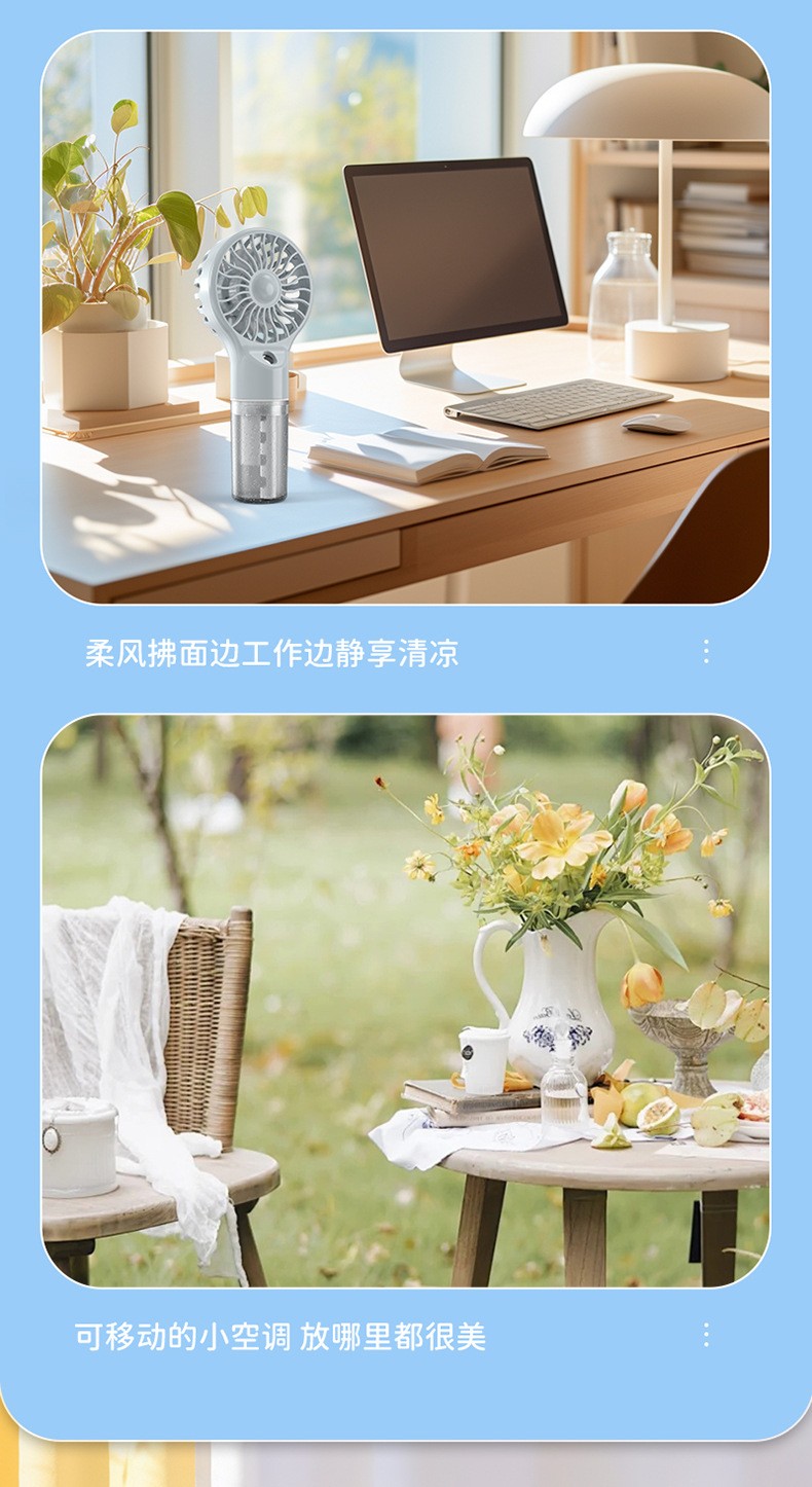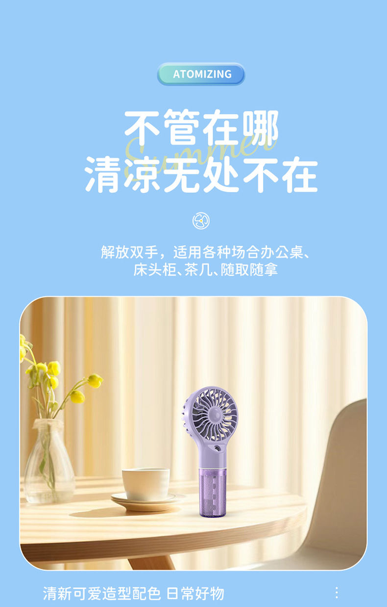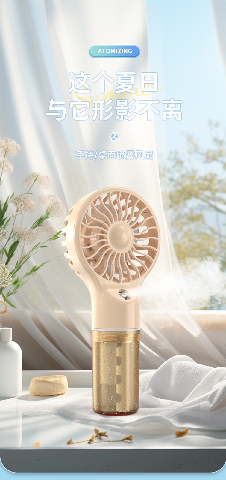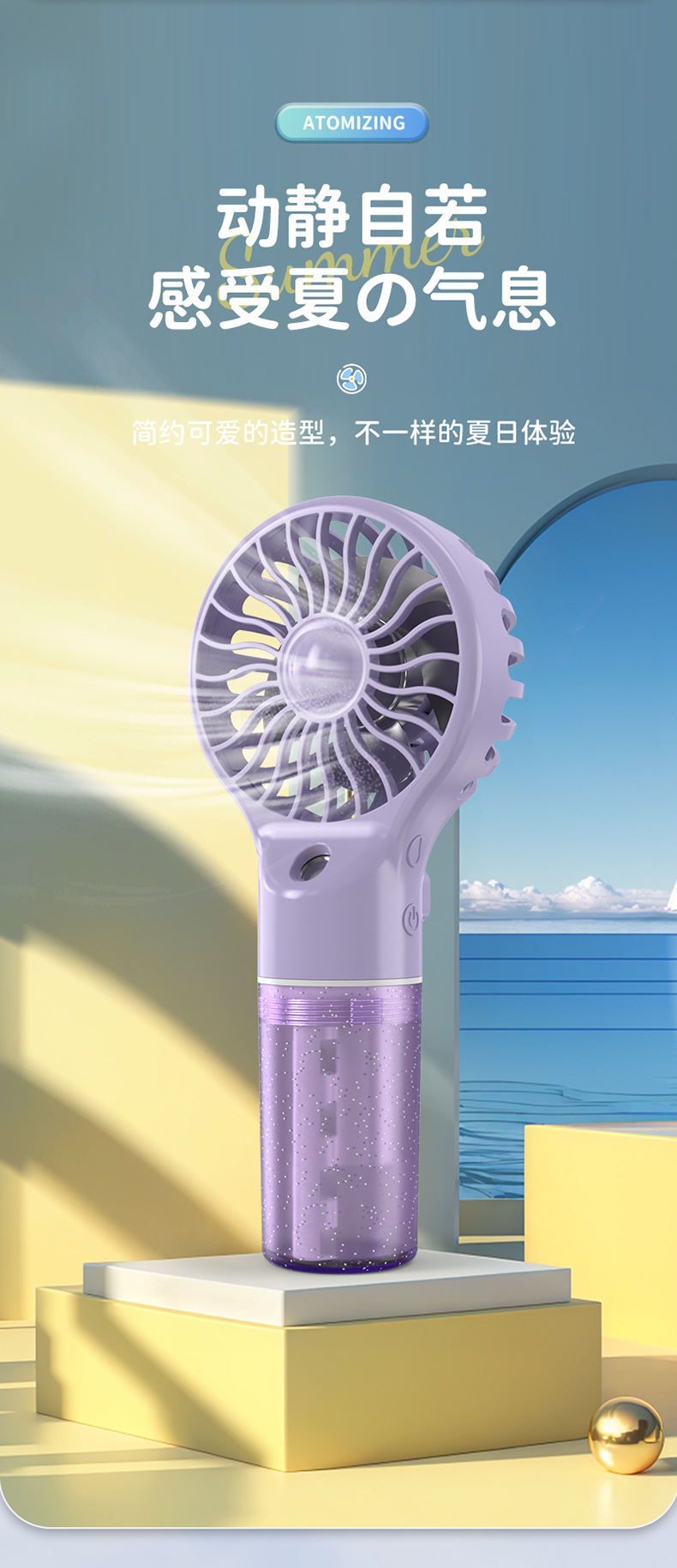 简约喷雾风扇便携式补水电风扇USB充电式手持喷雾小风扇