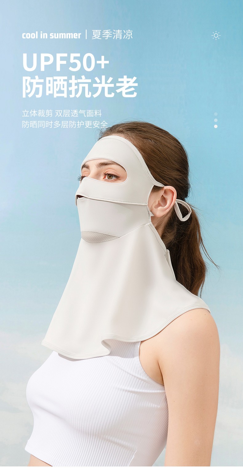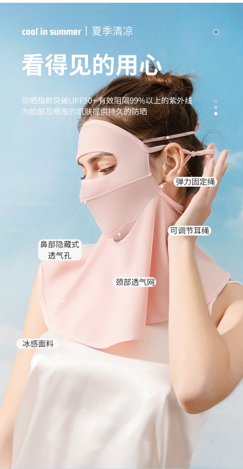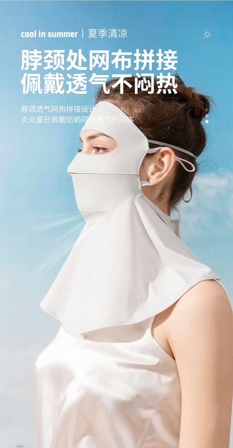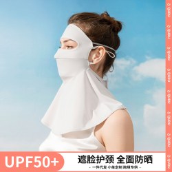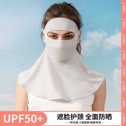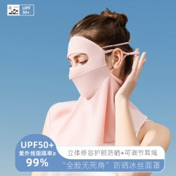 UPF50+防紫外线冰丝遮阳面纱女夏天防晒面罩全脸真丝防晒面纱护颈
