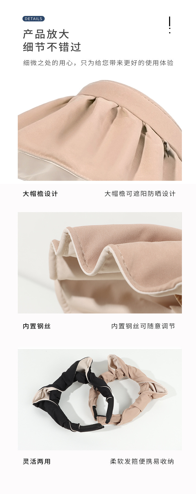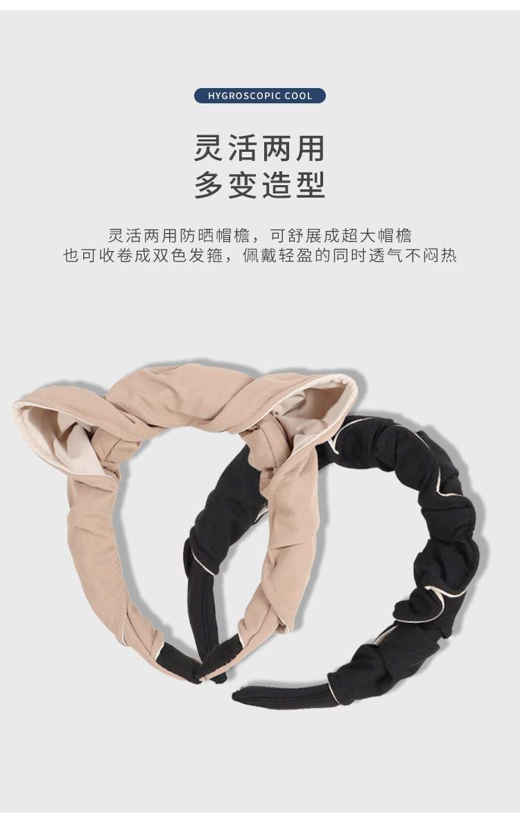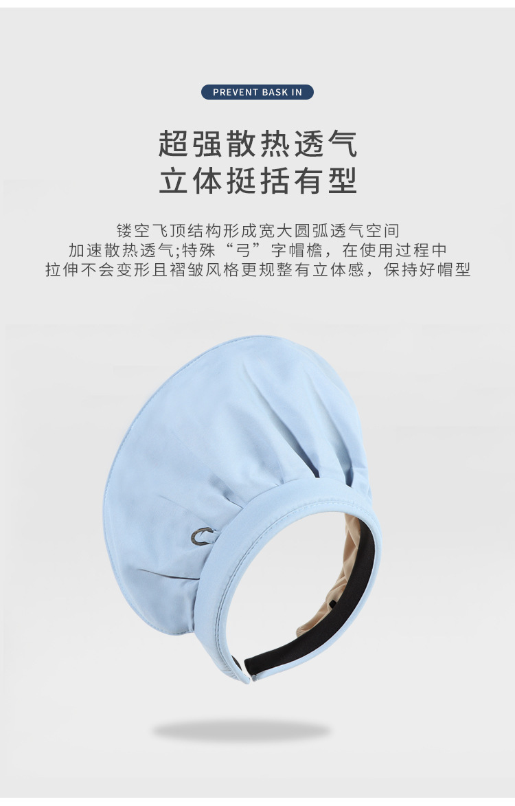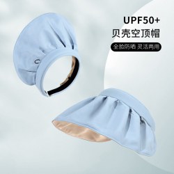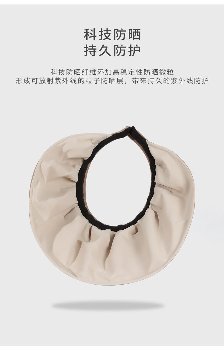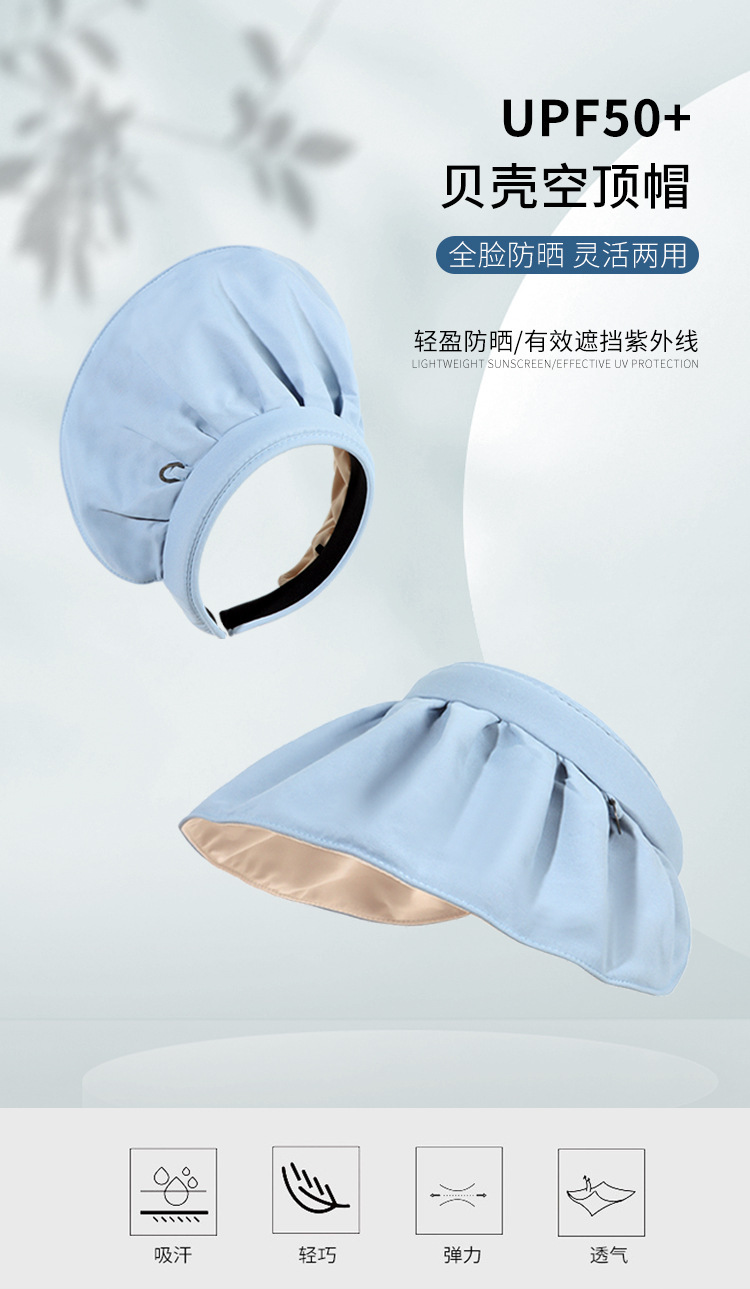 2024新款大檐防晒帽贝壳帽纯色空顶帽发箍两用可卷遮阳帽太阳帽女