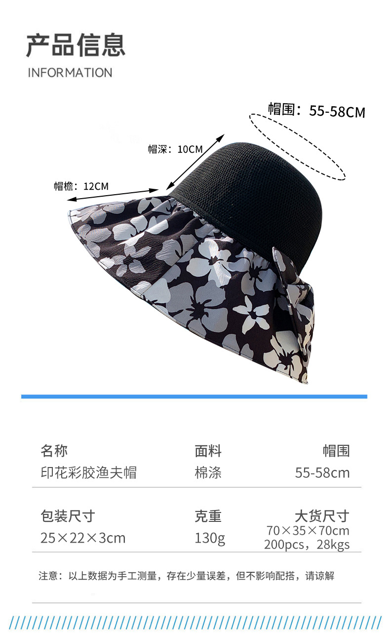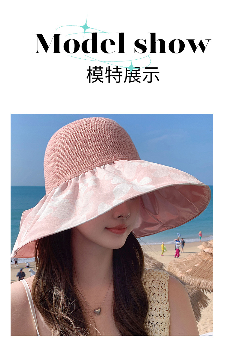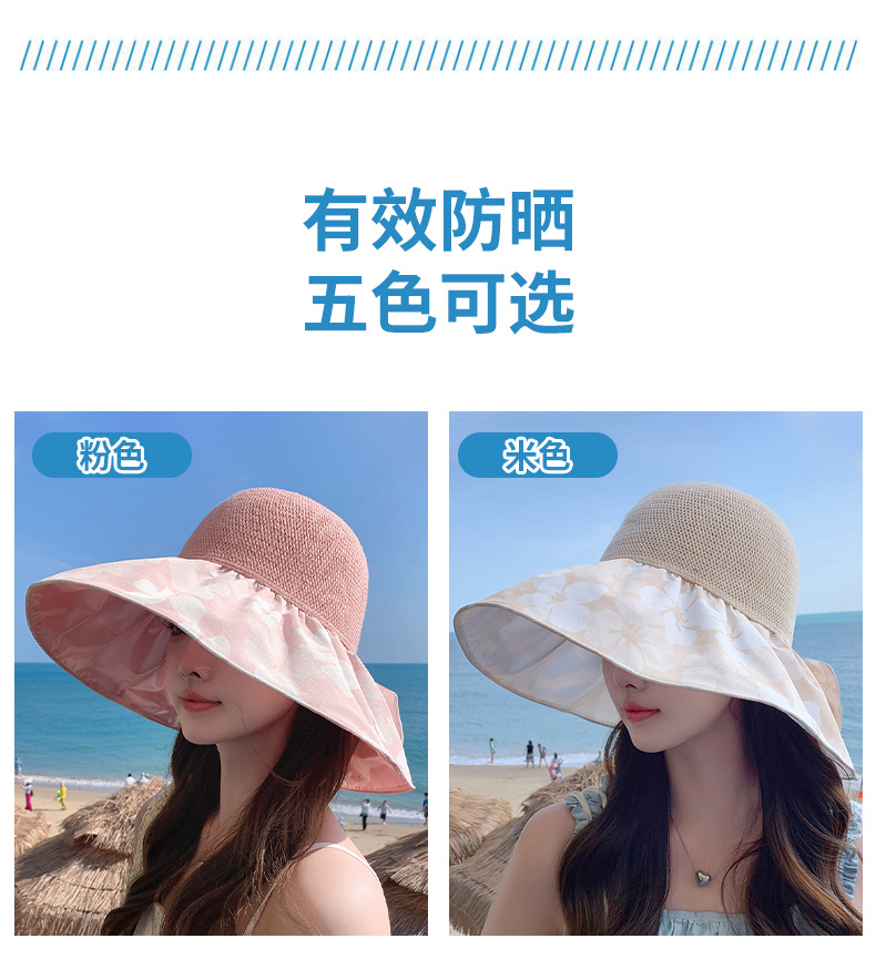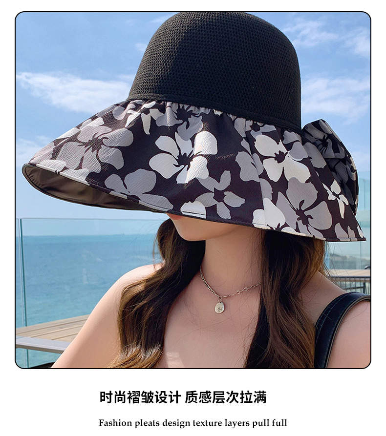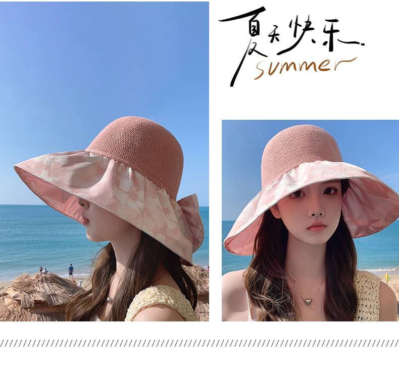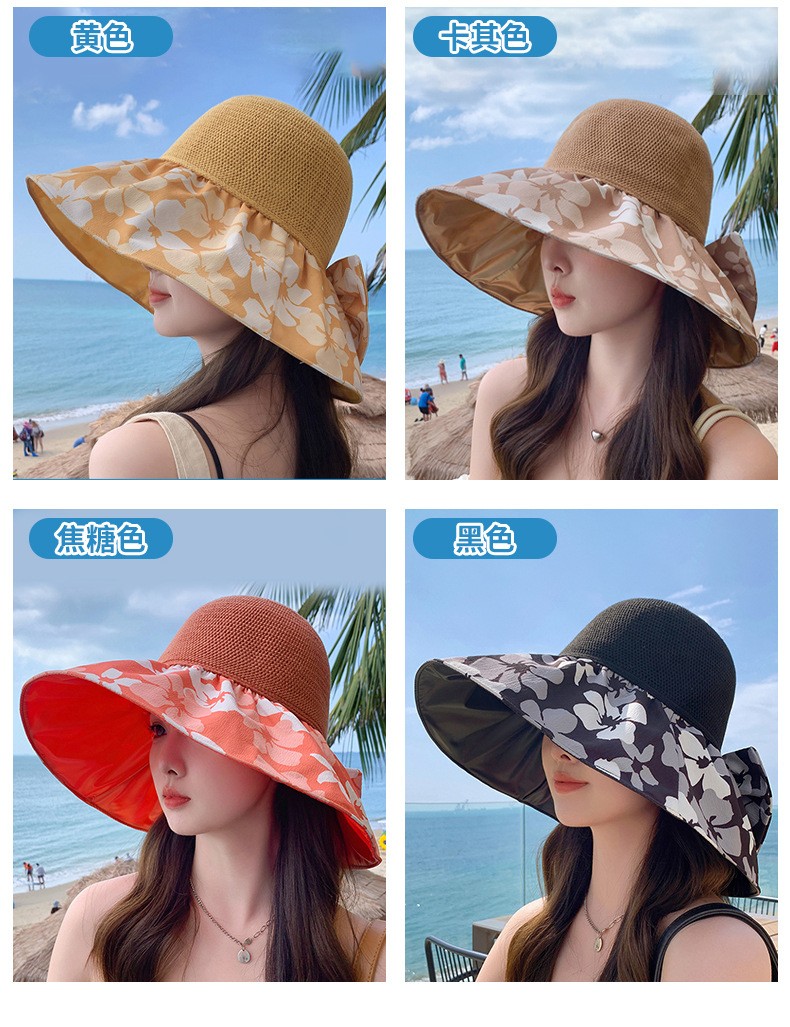 夏季新款彩胶防晒遮阳帽女甜美大帽檐花朵渔夫帽蝴蝶结太 阳帽