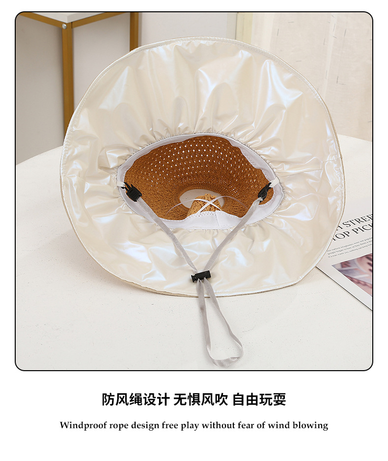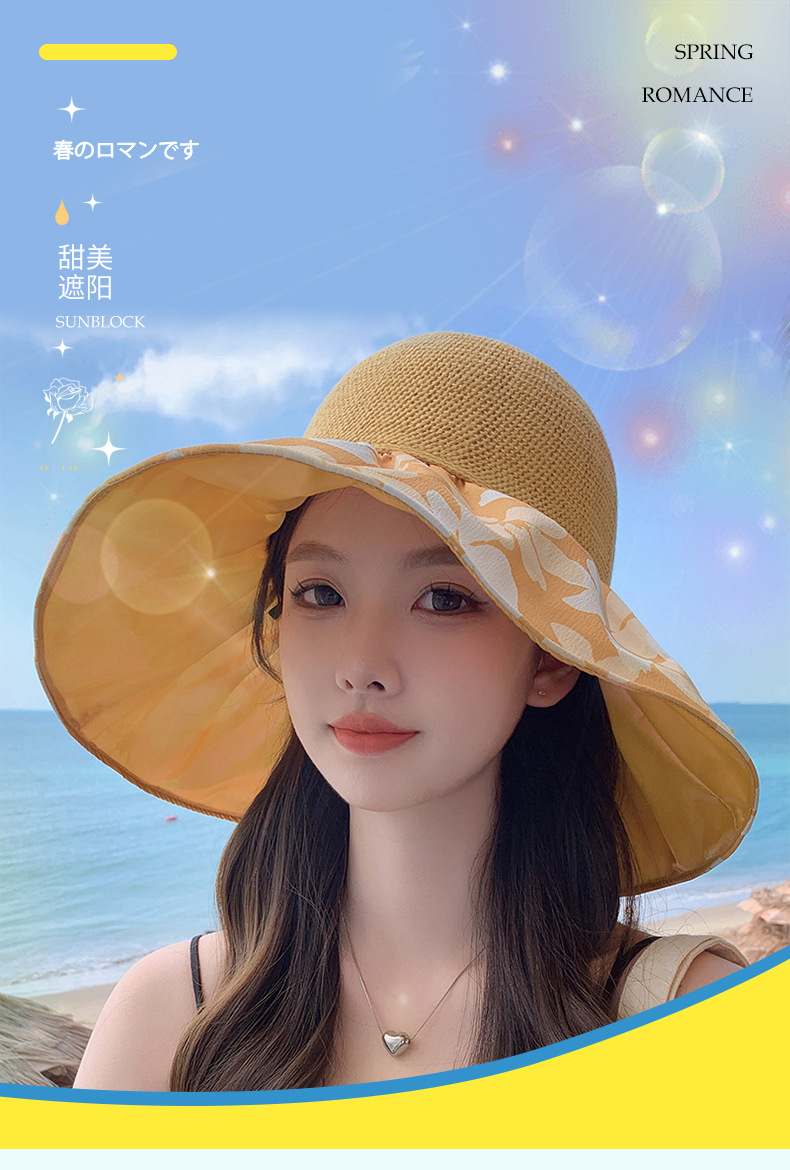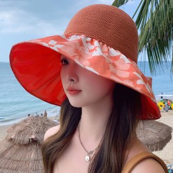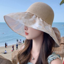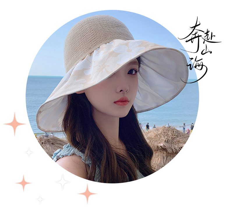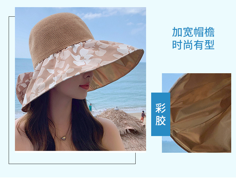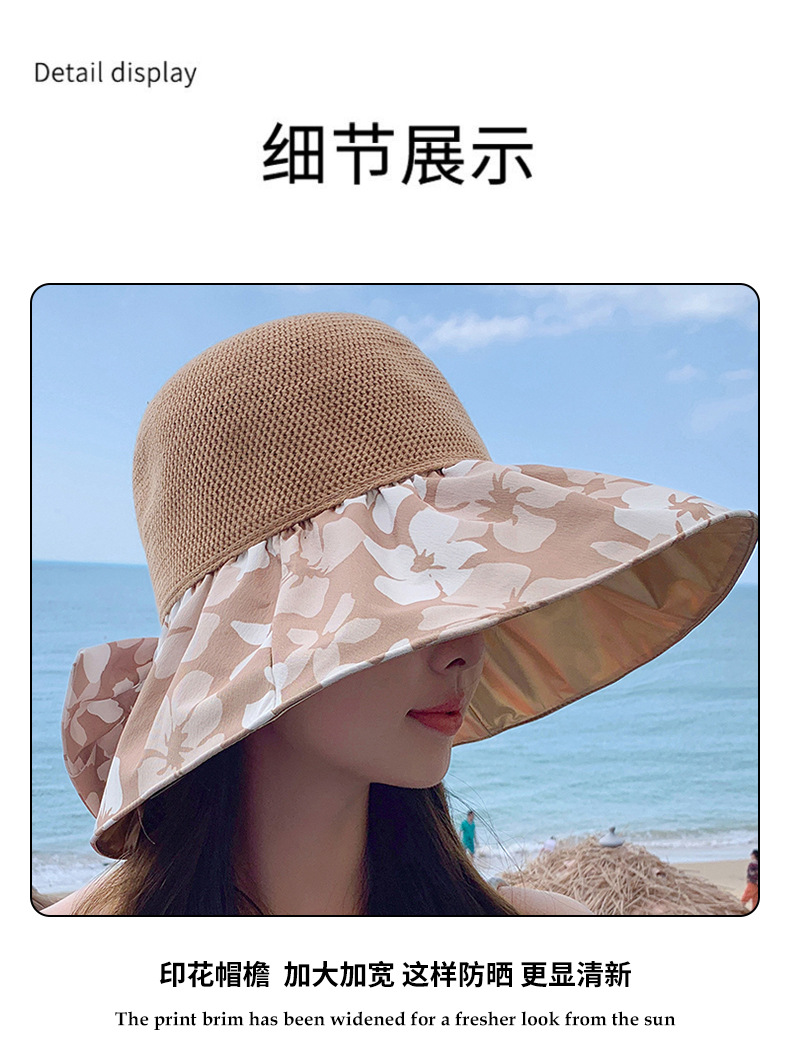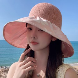 夏季新款彩胶防晒遮阳帽女甜美大帽檐花朵渔夫帽蝴蝶结太 阳帽
